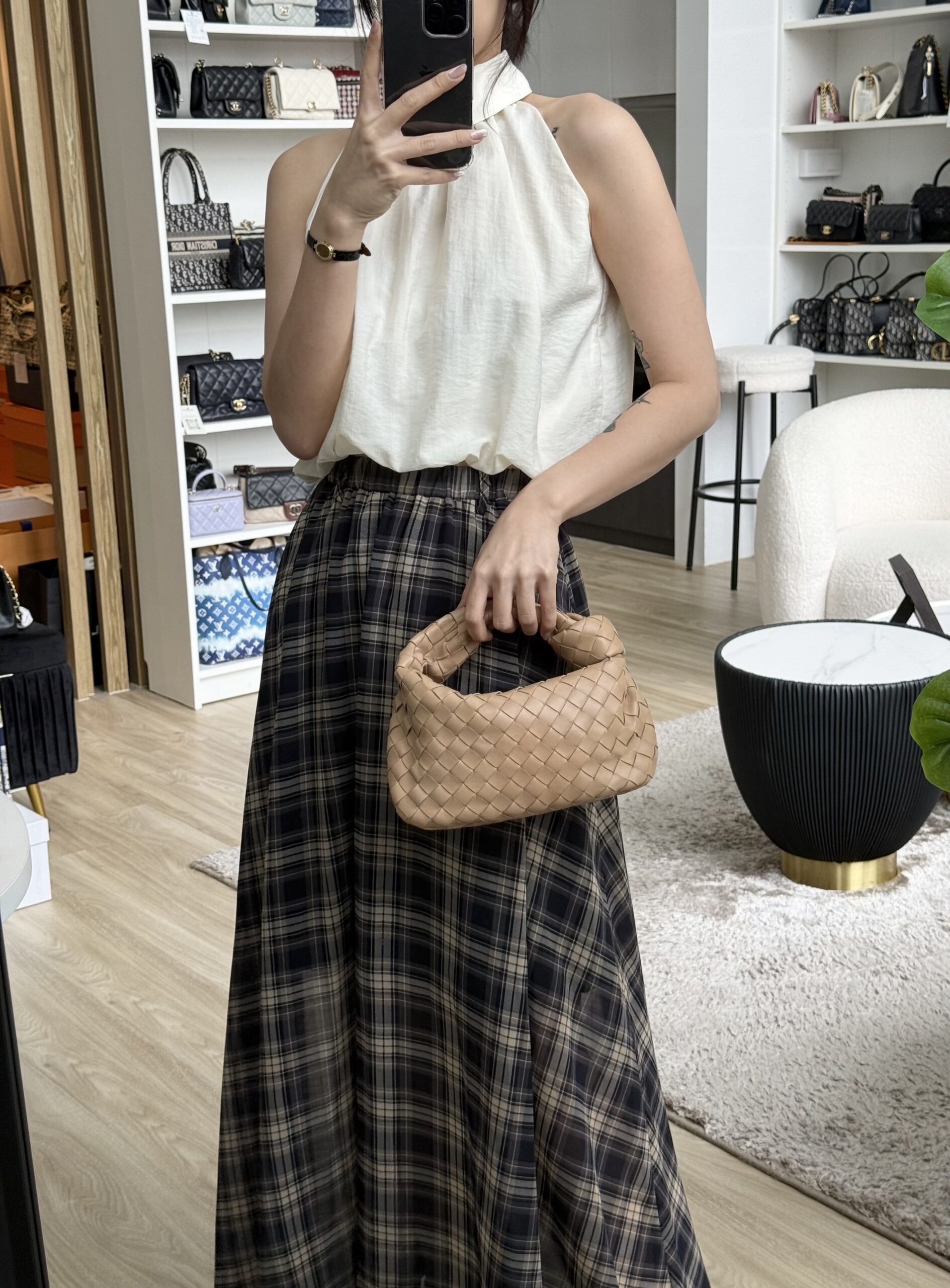 BV Mini Jodie Milk Tea Intrecciato GHW
