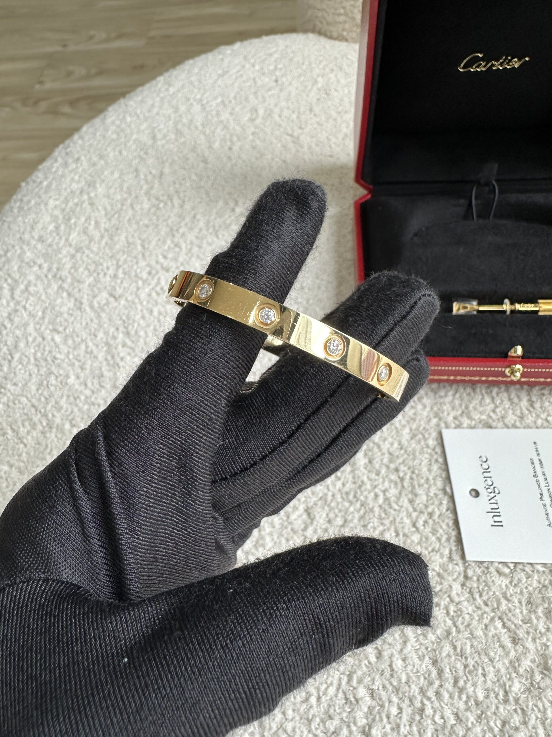 Be loved everyday with this classic love bracelet enjoy not just 1 but 10 diamonds 💎 blinks 😍 Retail 24,600, get this gorgeous set at only 14,990! What a steal. Size 16, if this fits, grab it now 🙂