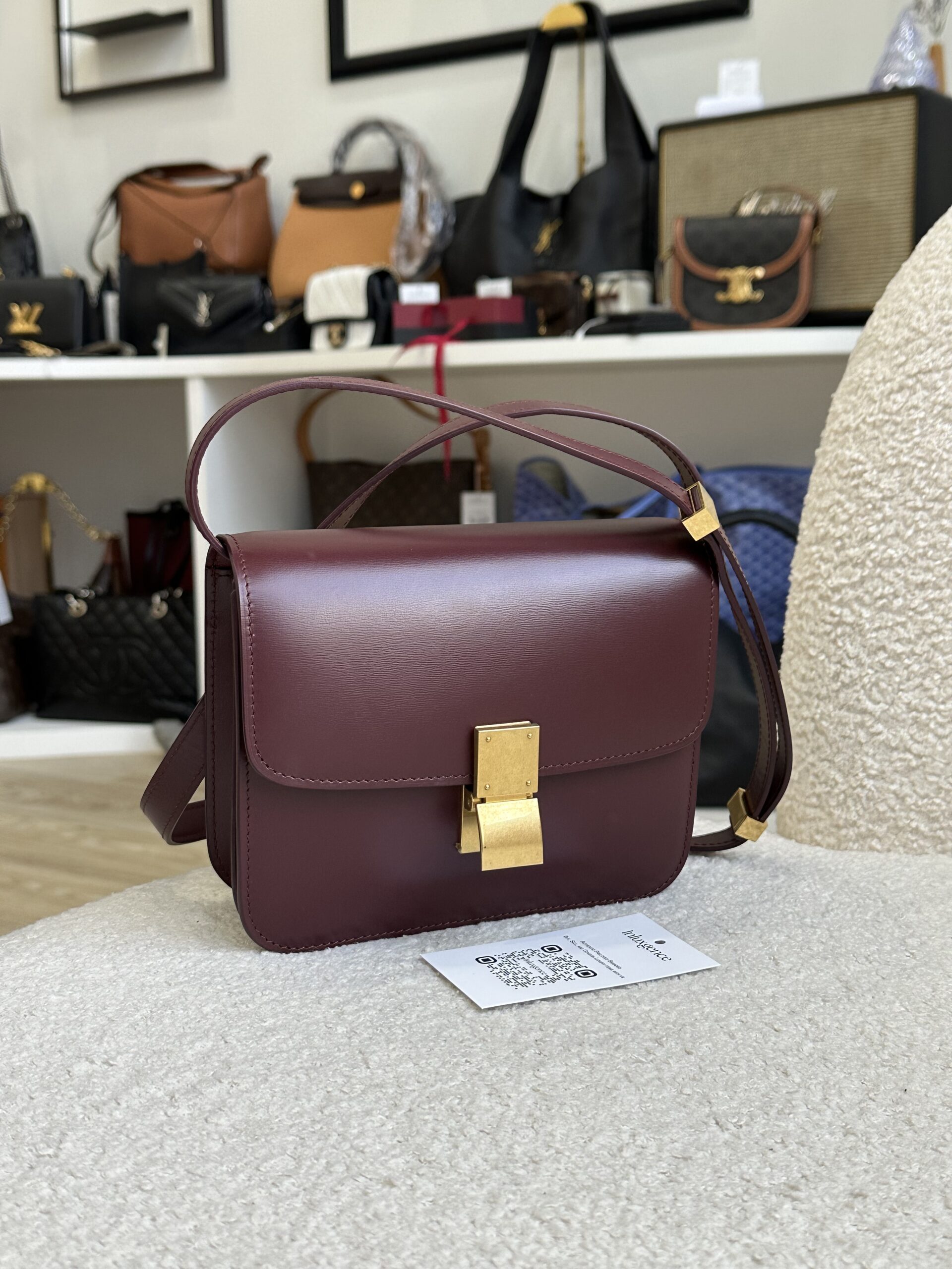 Celine Teen Classic Box Wine Red Calfskin Aged GHW