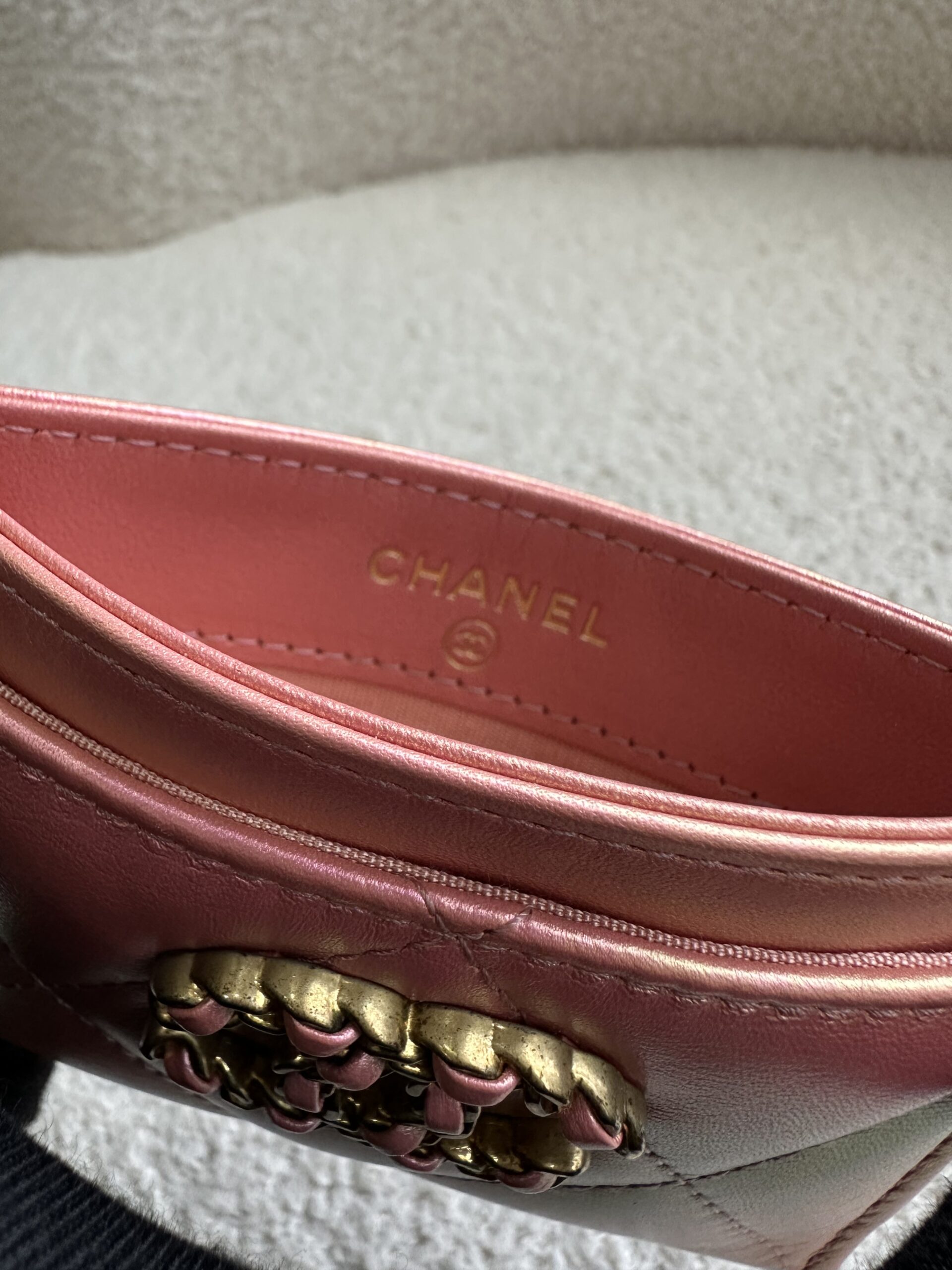 Chanel C19 Card Holder Iridescent Pink Lambskin GHW