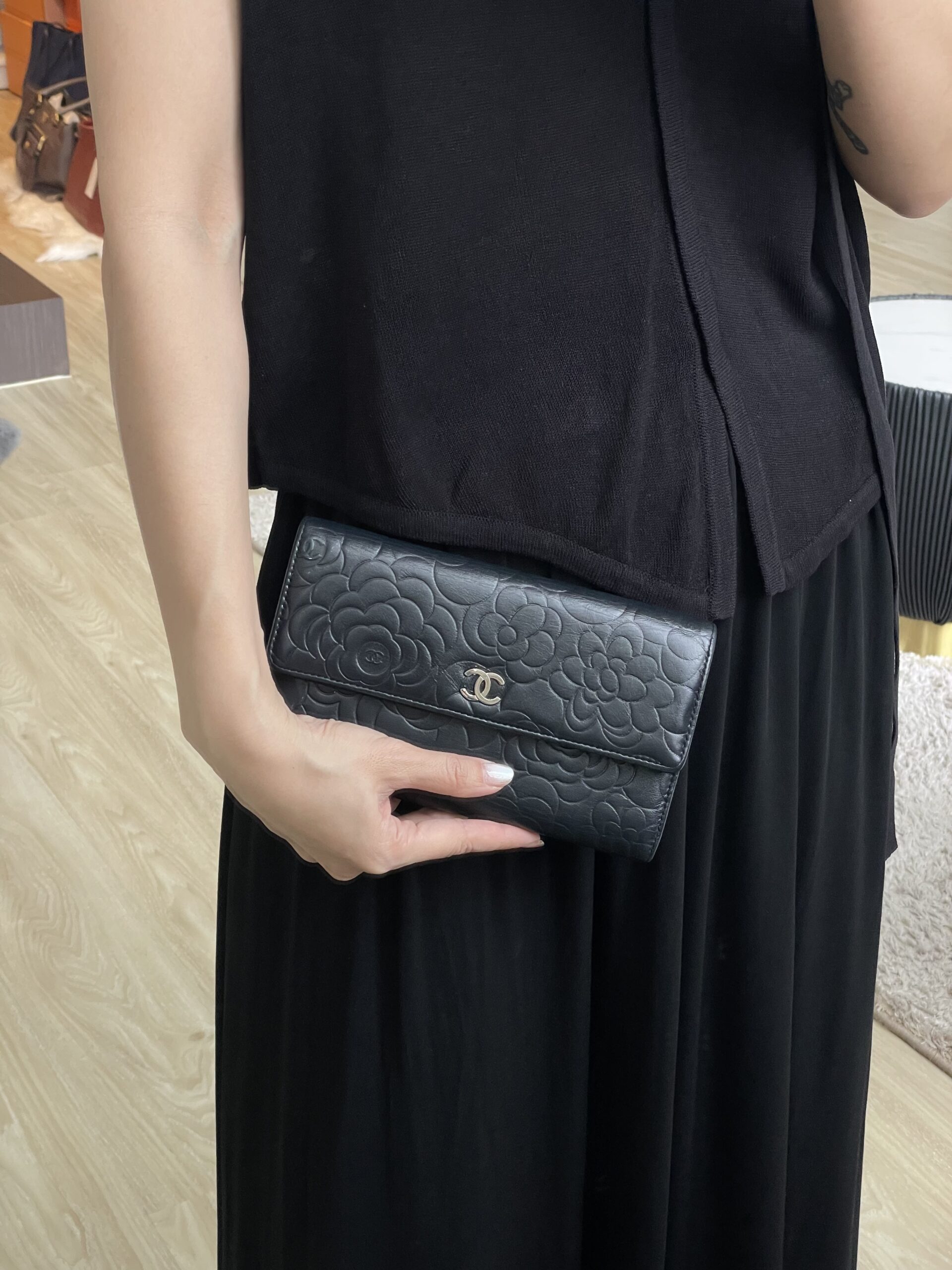 Chanel Camelia Wallet Black Lambskin SHW | ILG3791