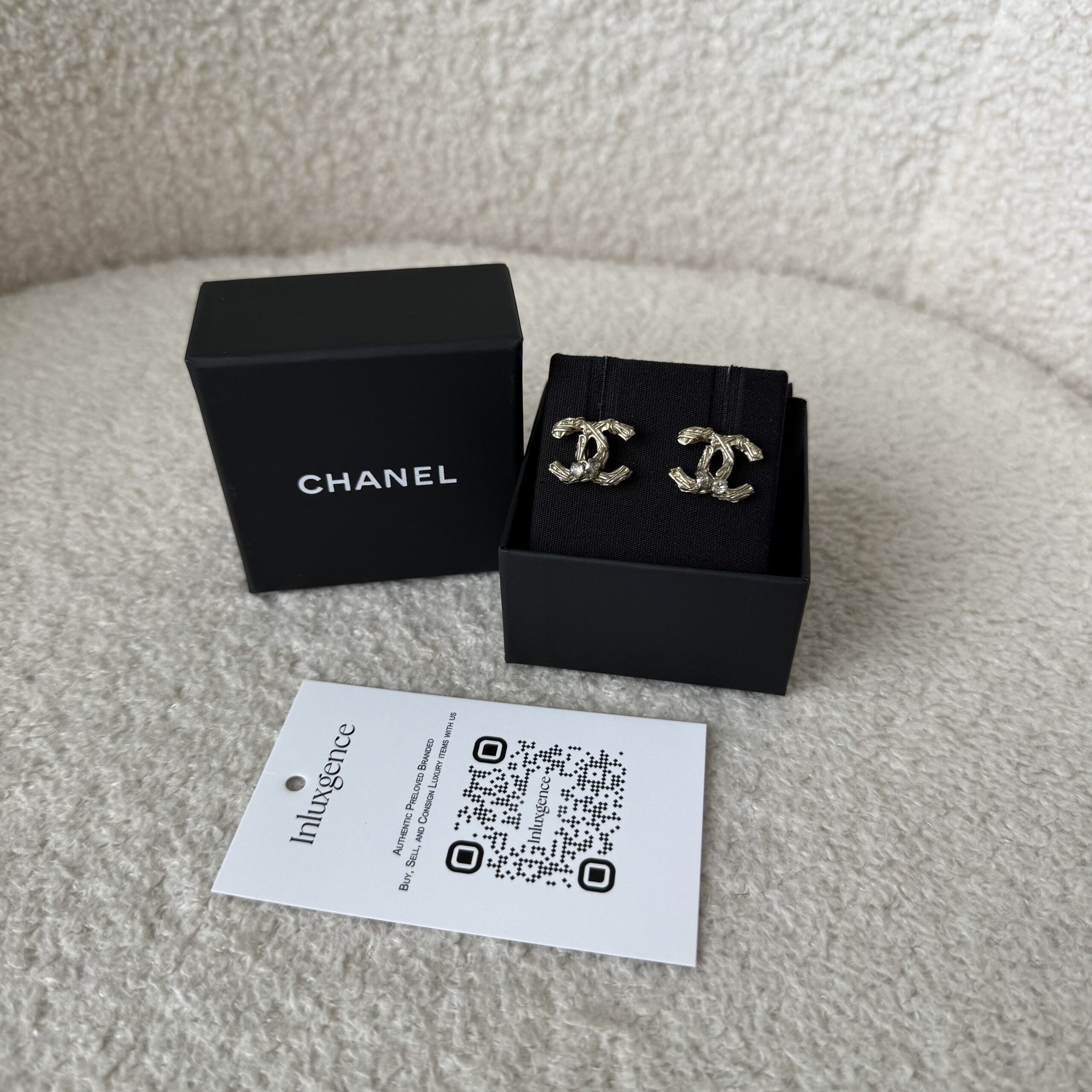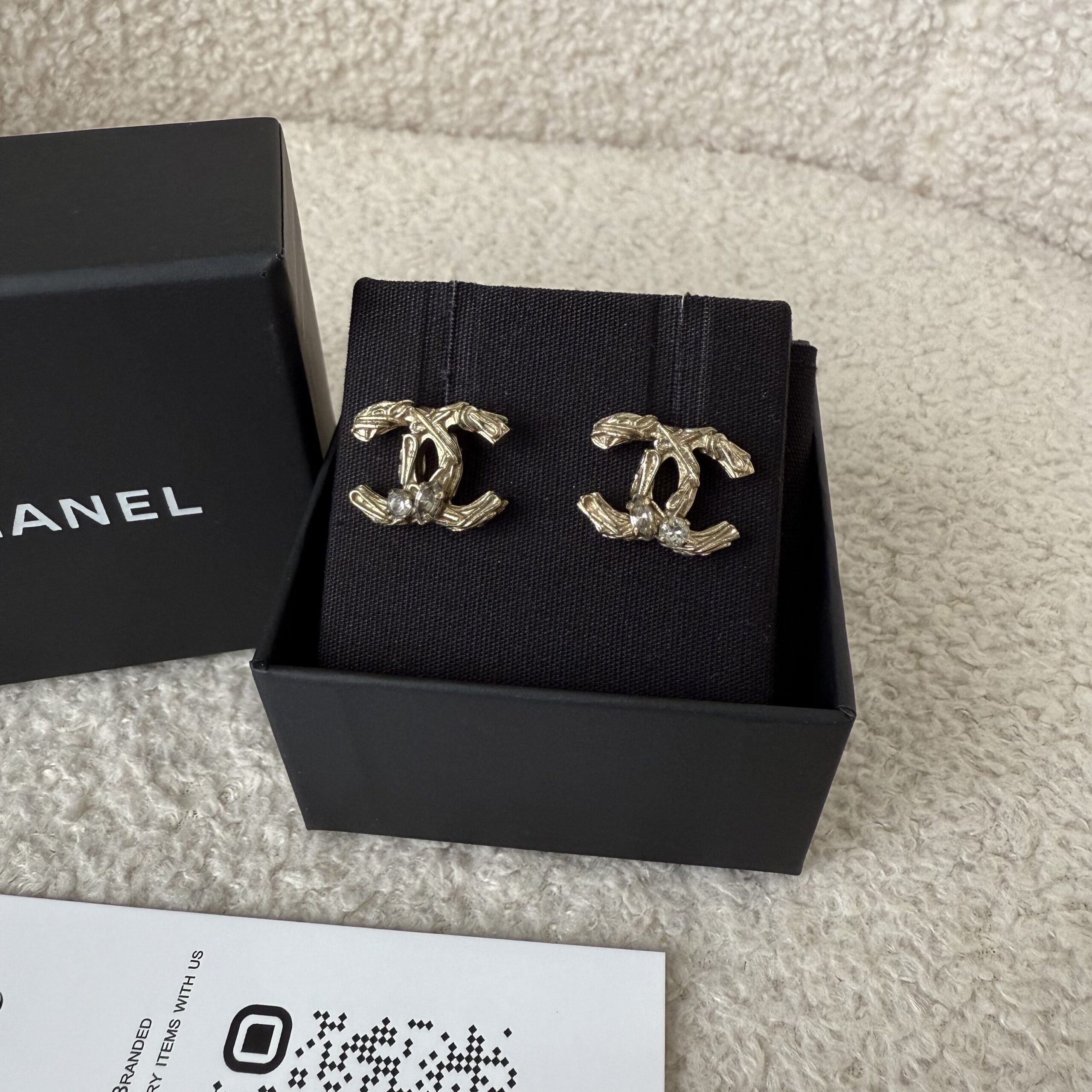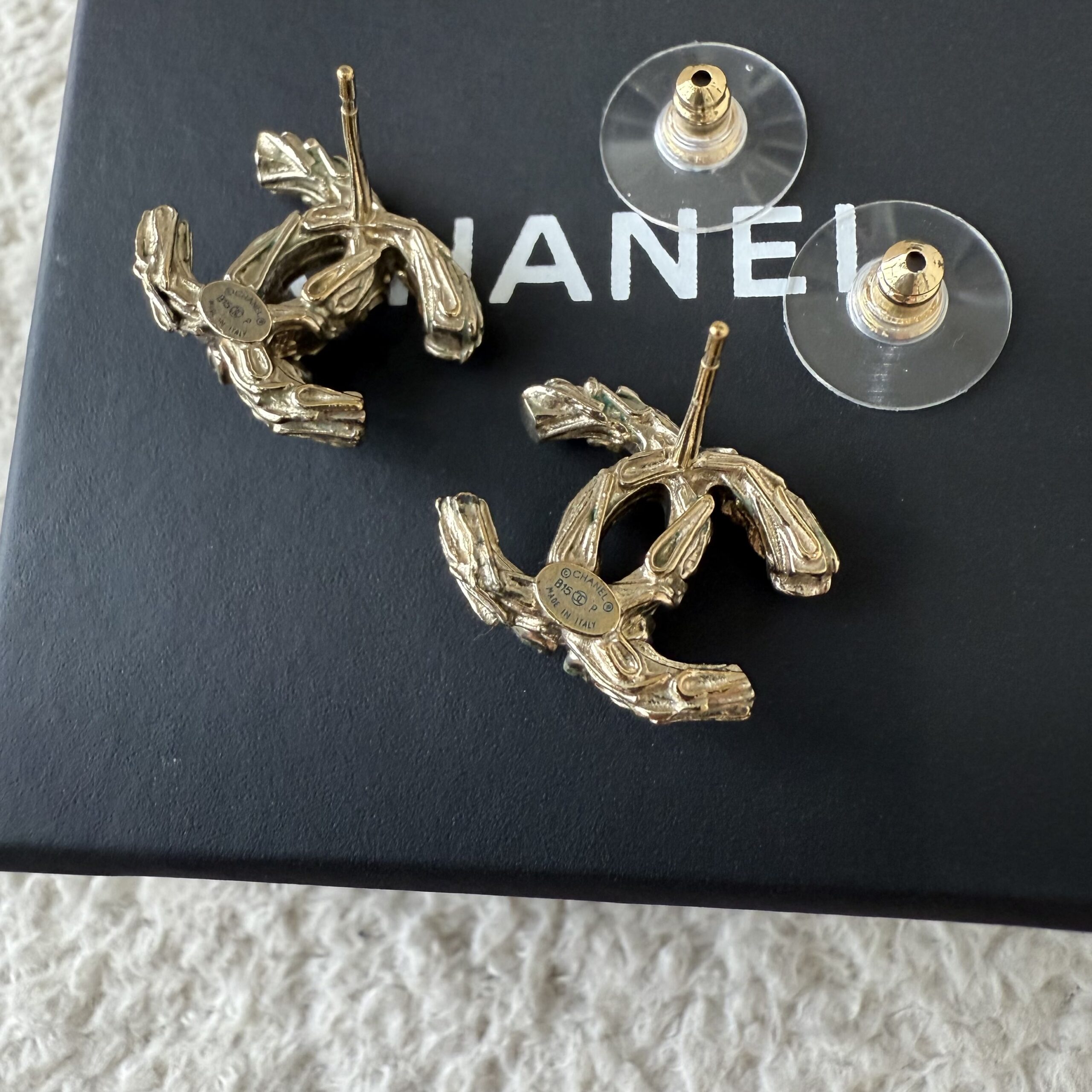 Chanel CC B15 Embellished Vintage Brushed Gold Earrings