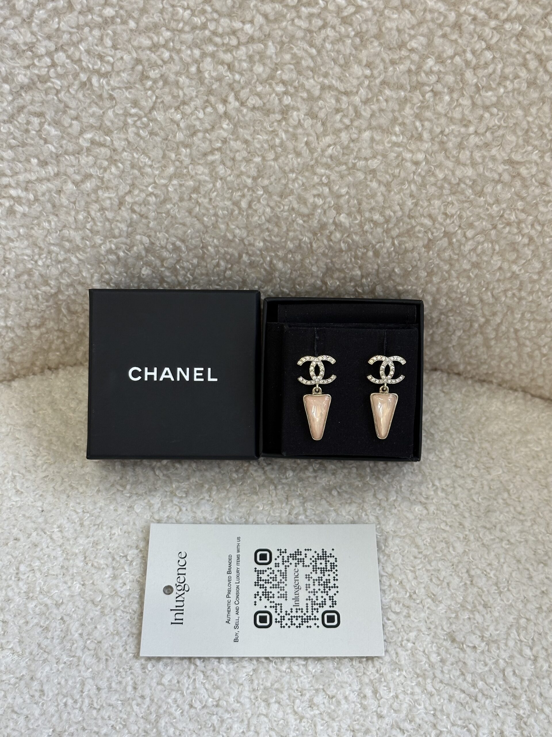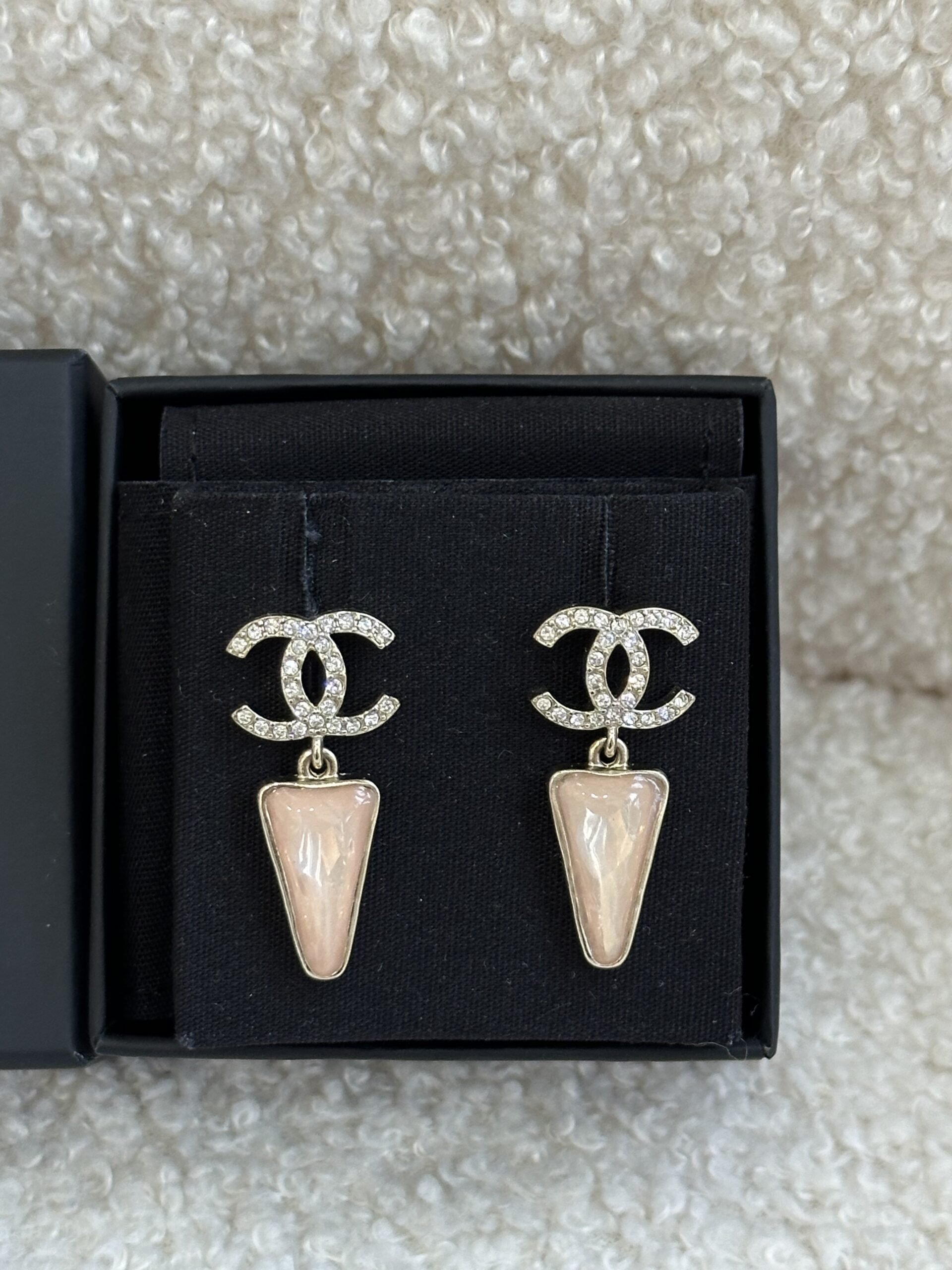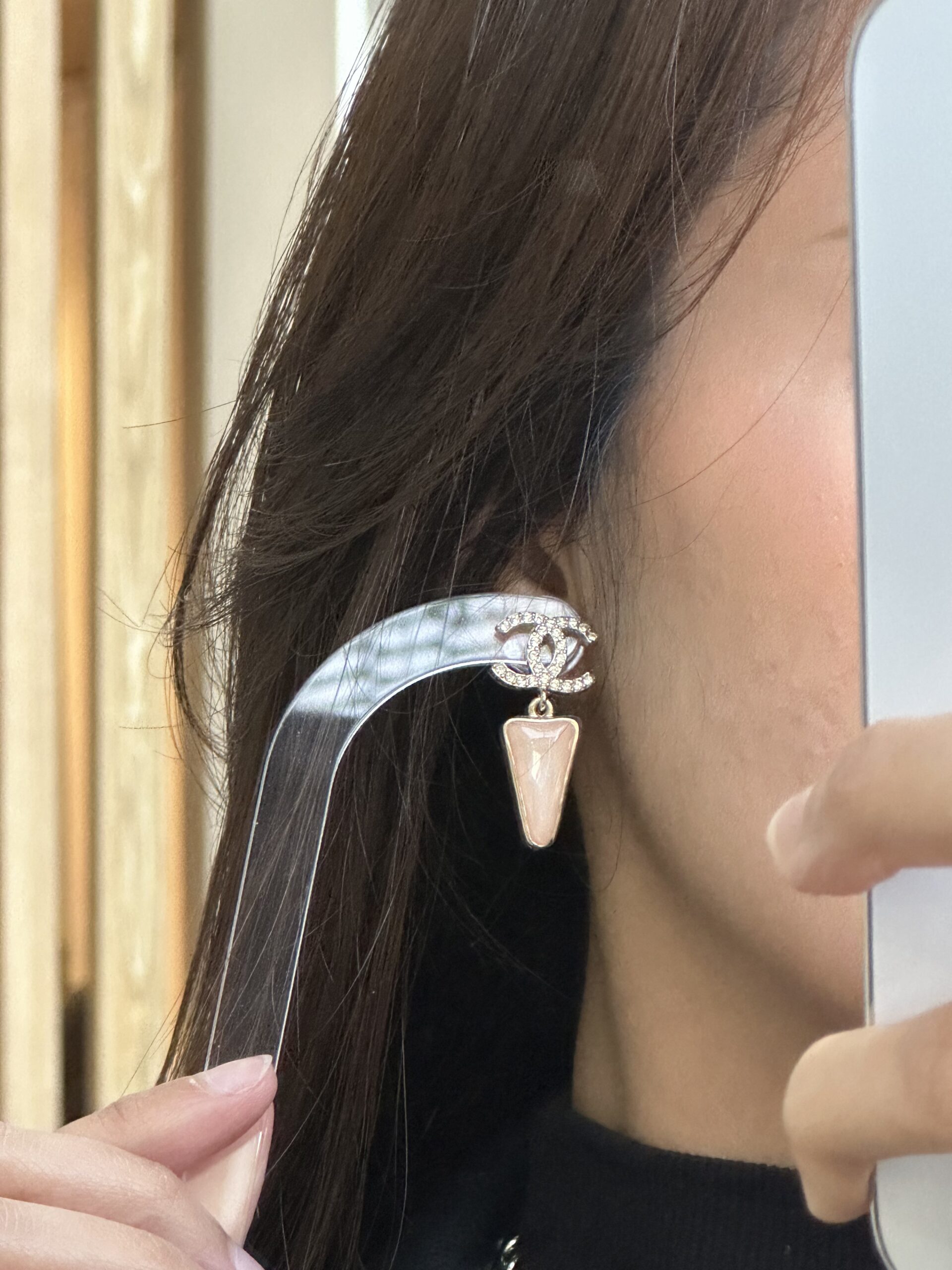 Look extra pretty with this pair 🥰 Classic CC logo with blings and the dangling light pink stud. So elegant 🥰🤩