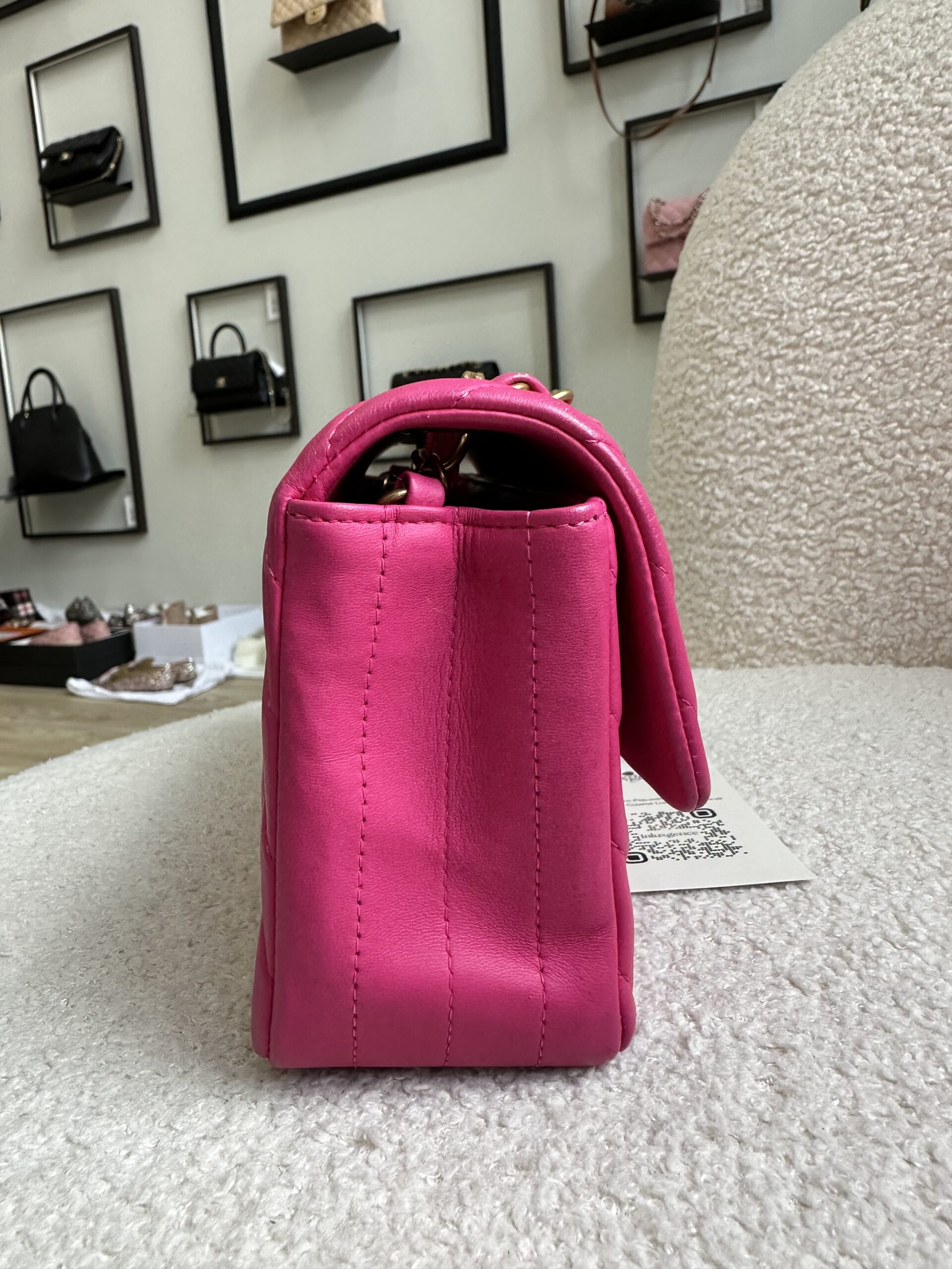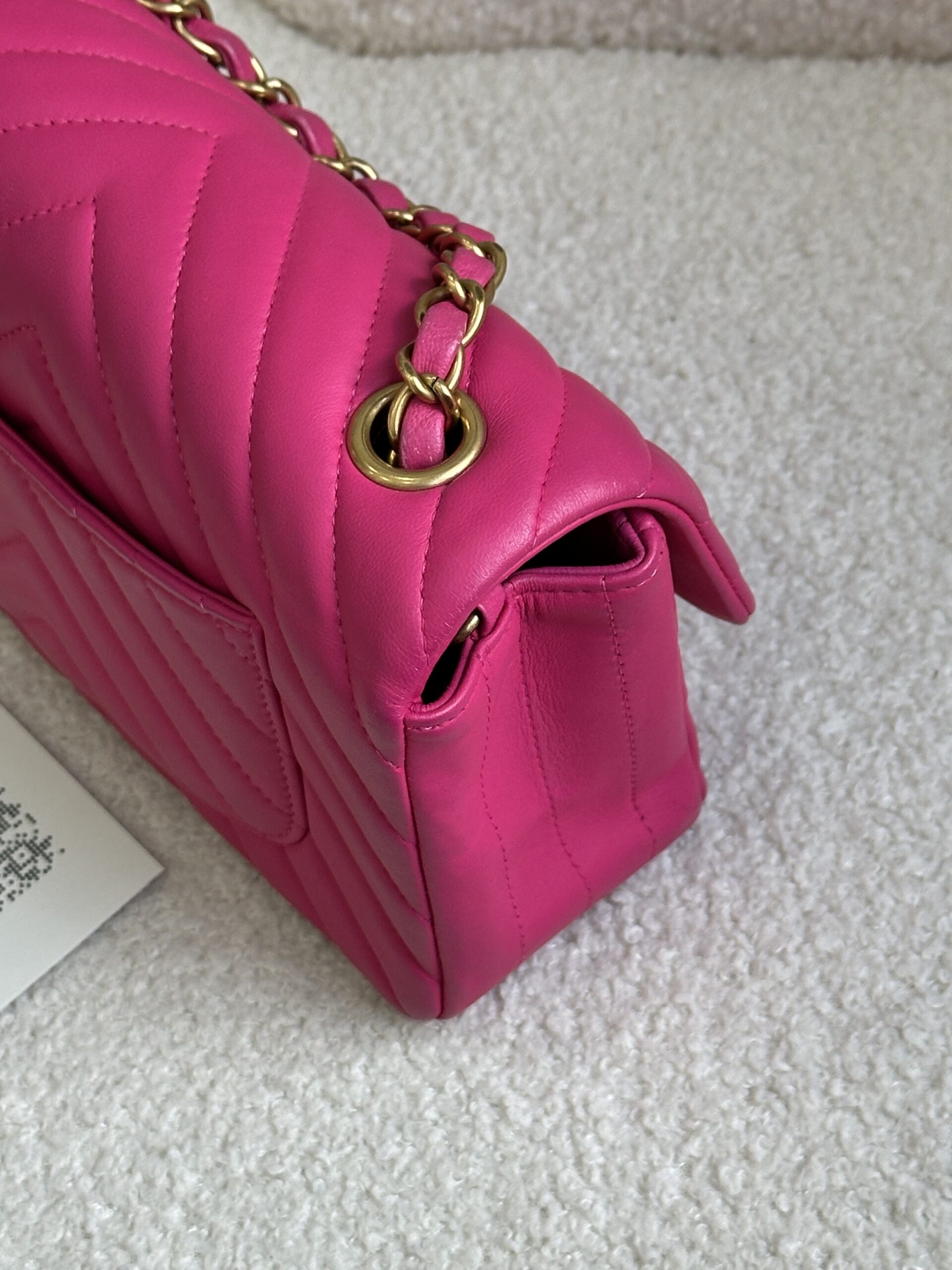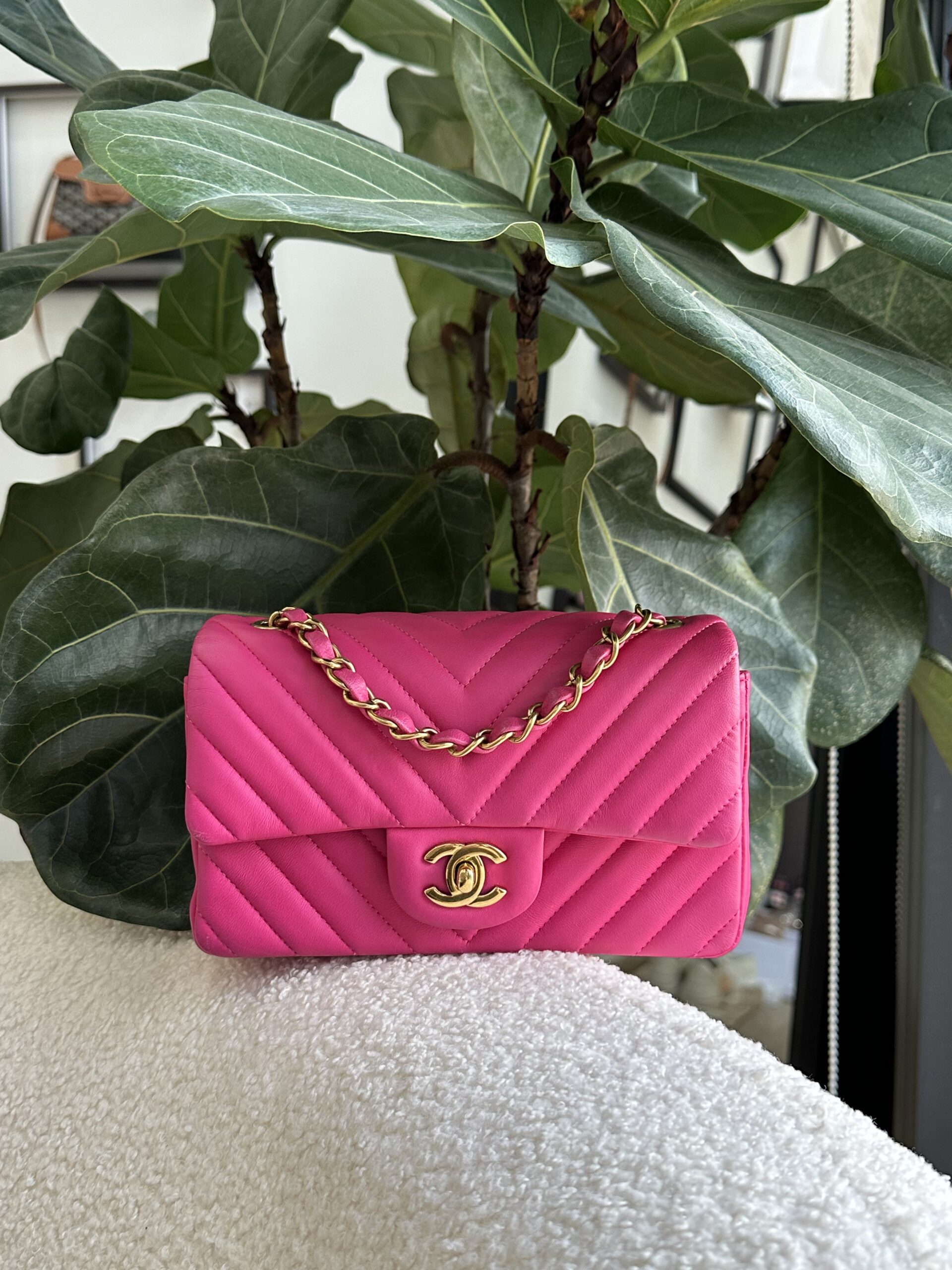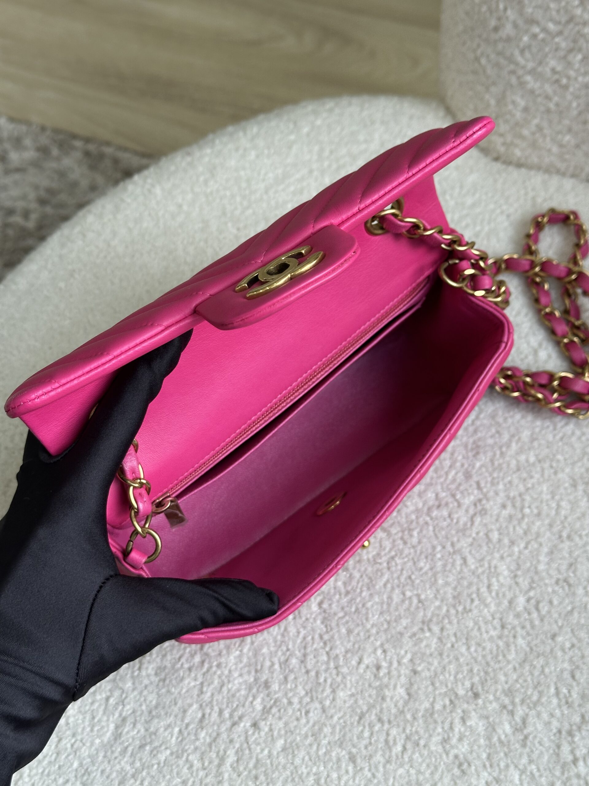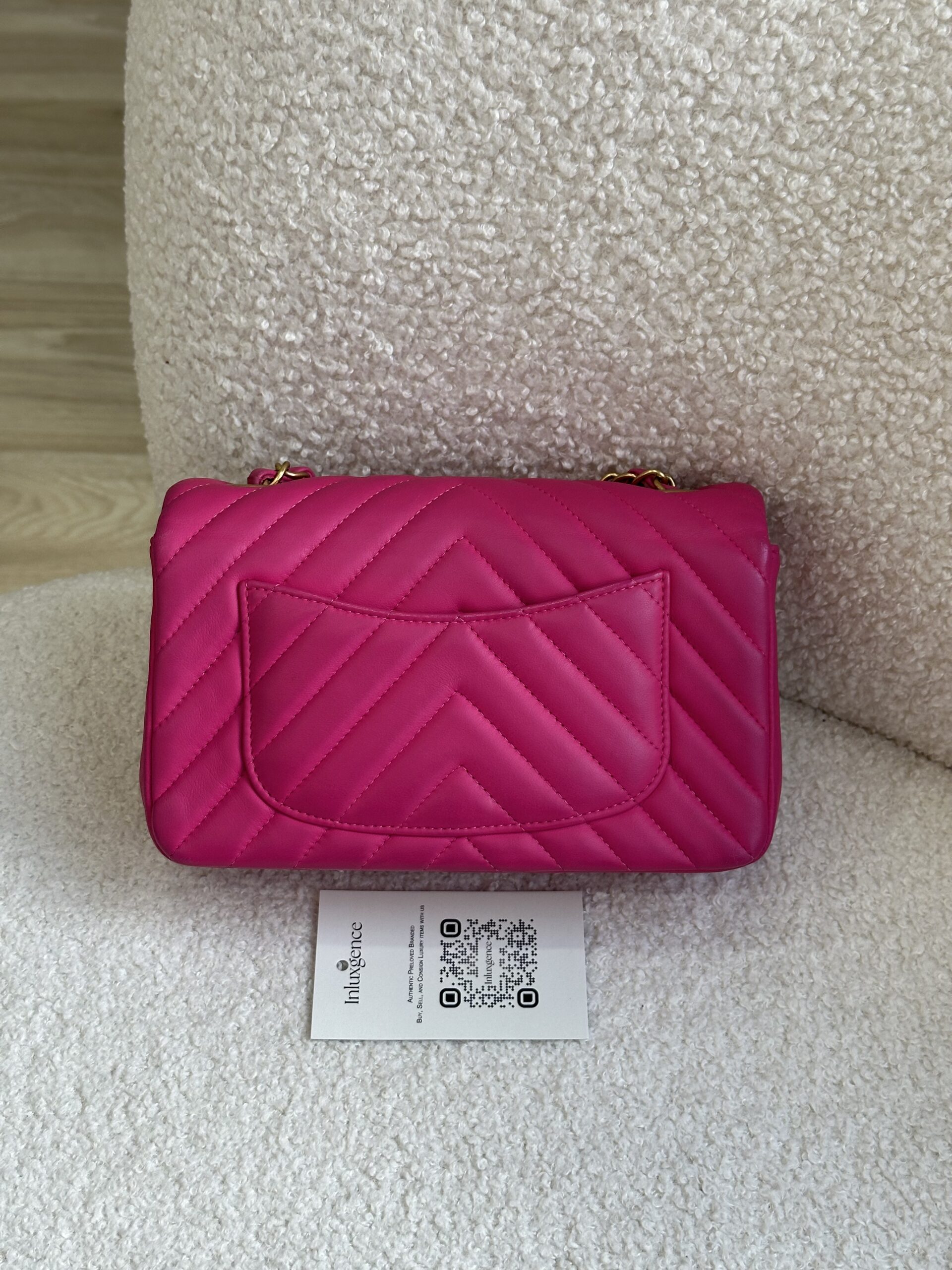 Chanel Chevron Mini Rectangular Hot Pink Lambskin GHW