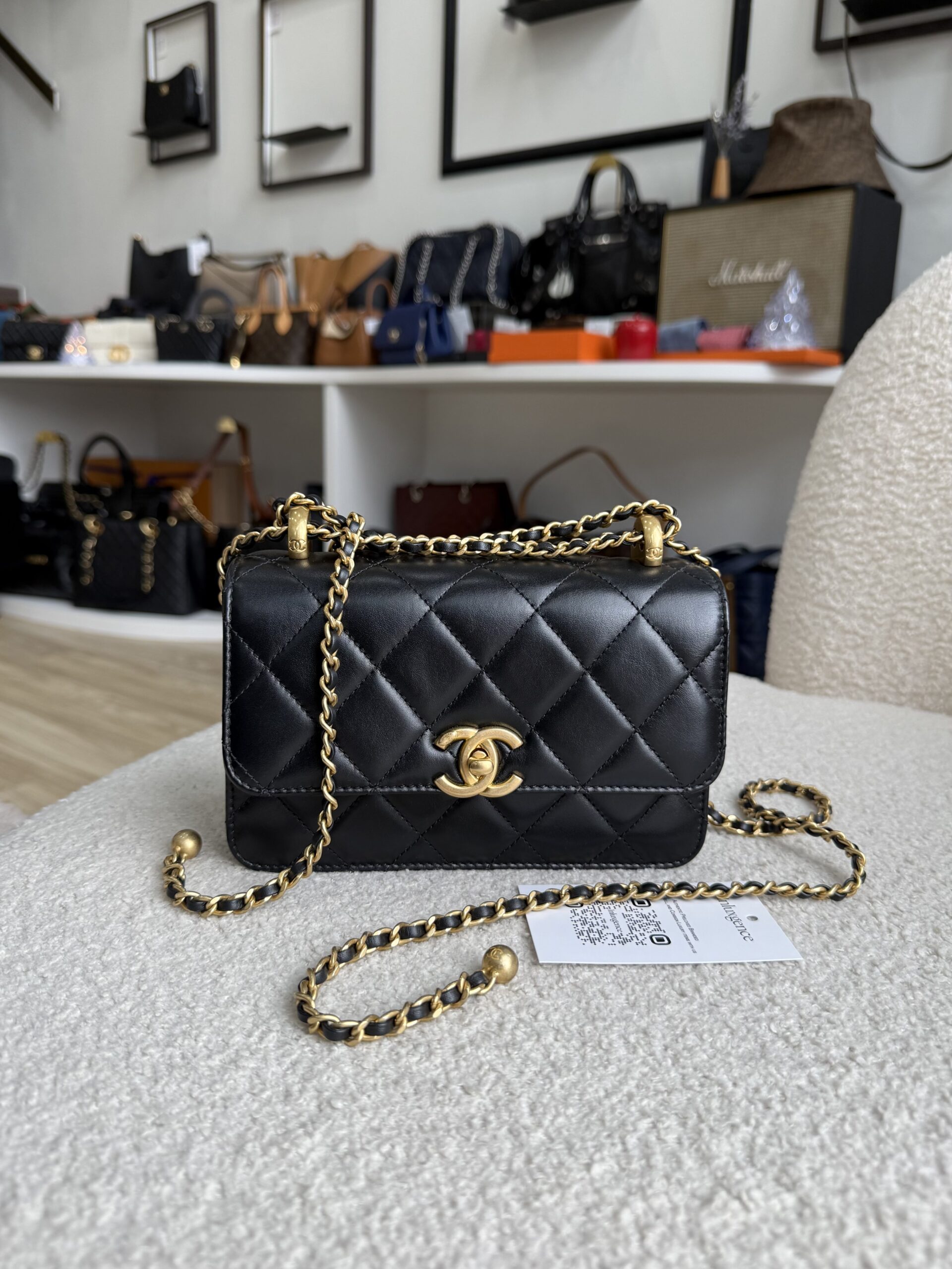 Chanel Double Pearl Crush Flap 19cm Black Lambskin GHW | ILG4698