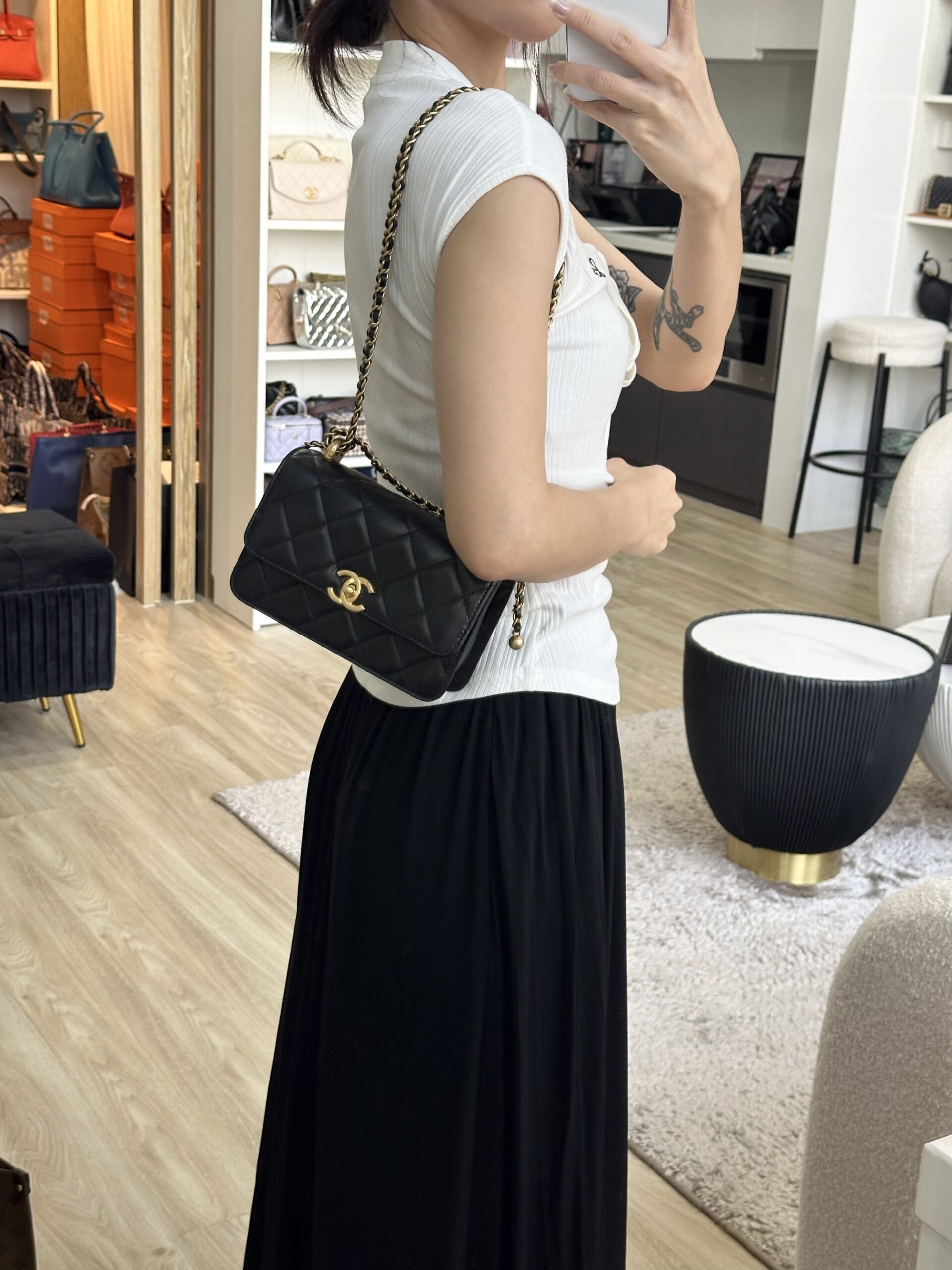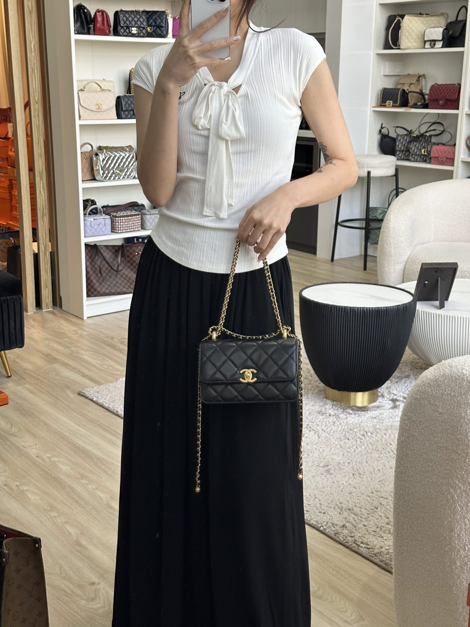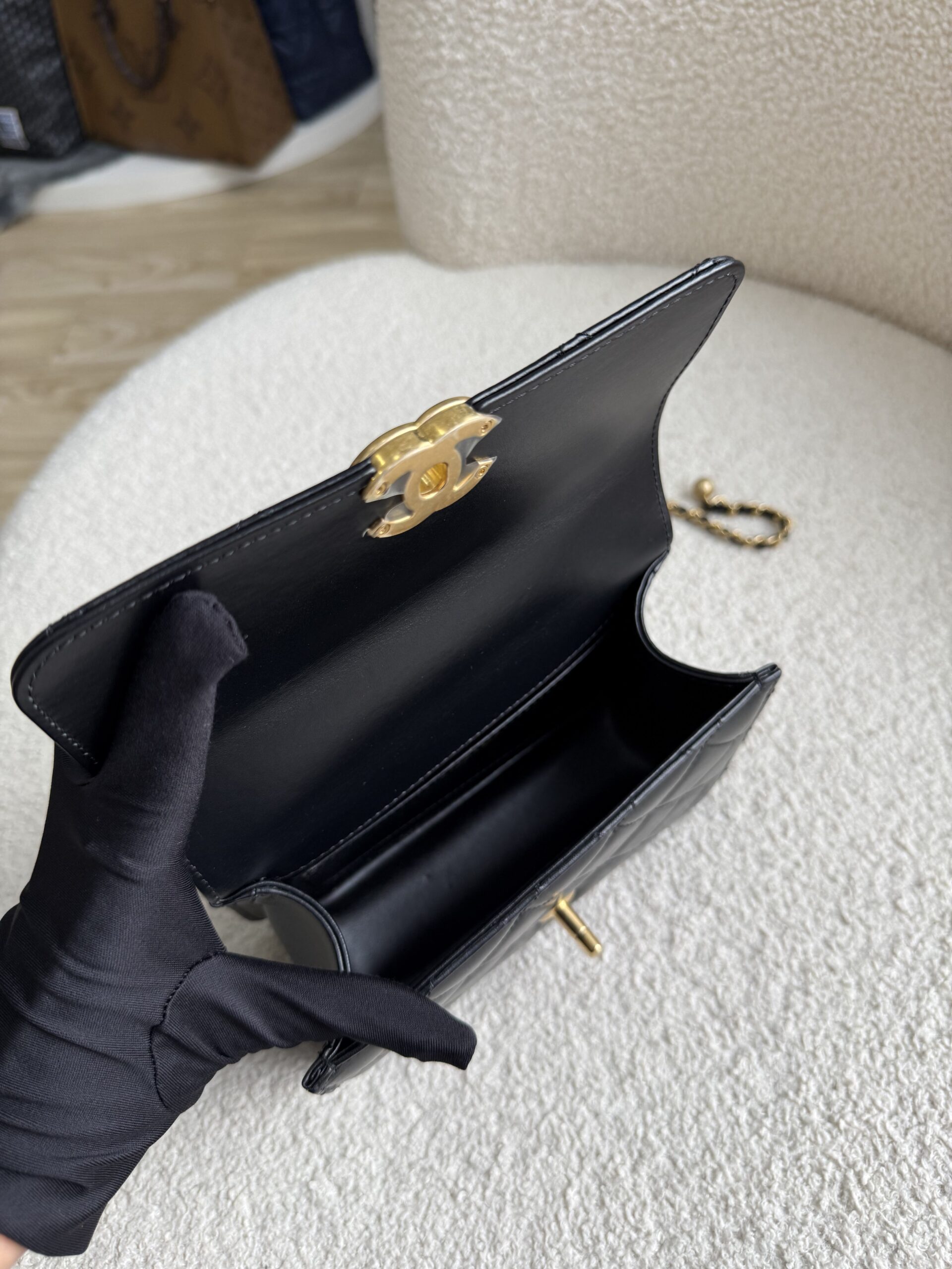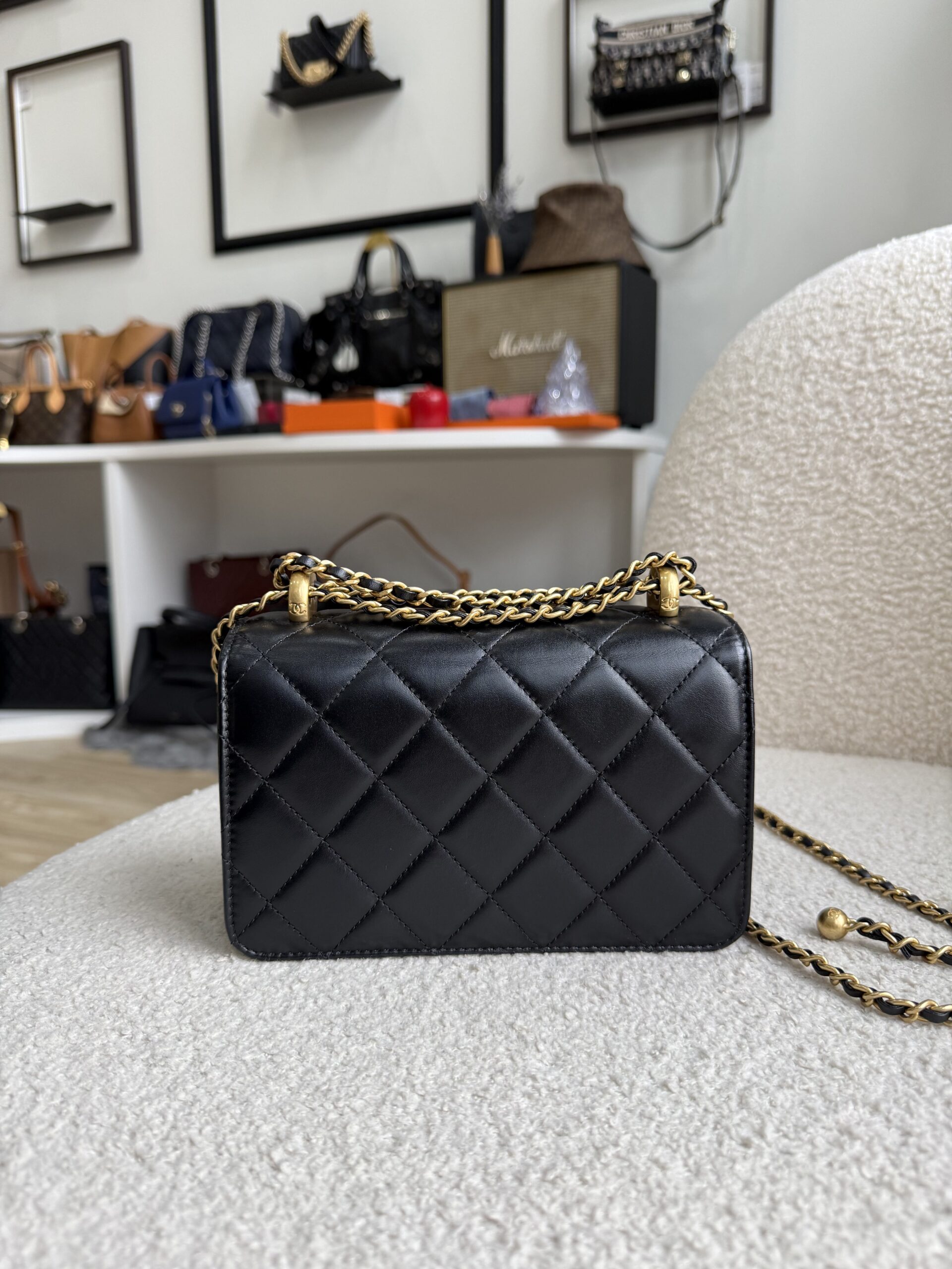 Chanel Double Pearl Crush Flap 19cm Black Lambskin GHW