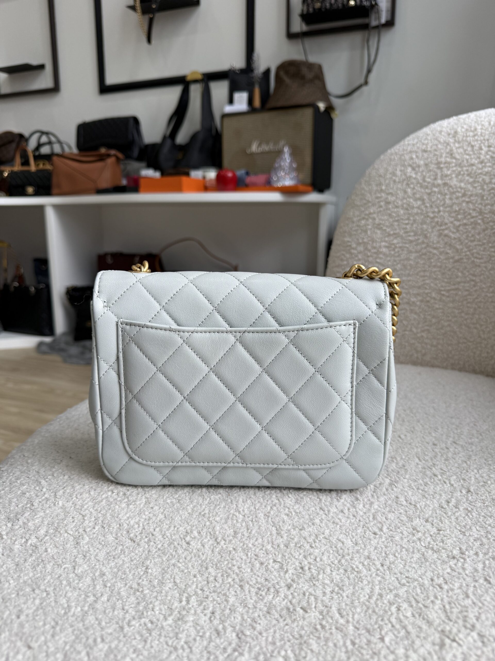 Chanel Flap Chain Bag 20cm in Soft Blue Calfskin Brushed GHW