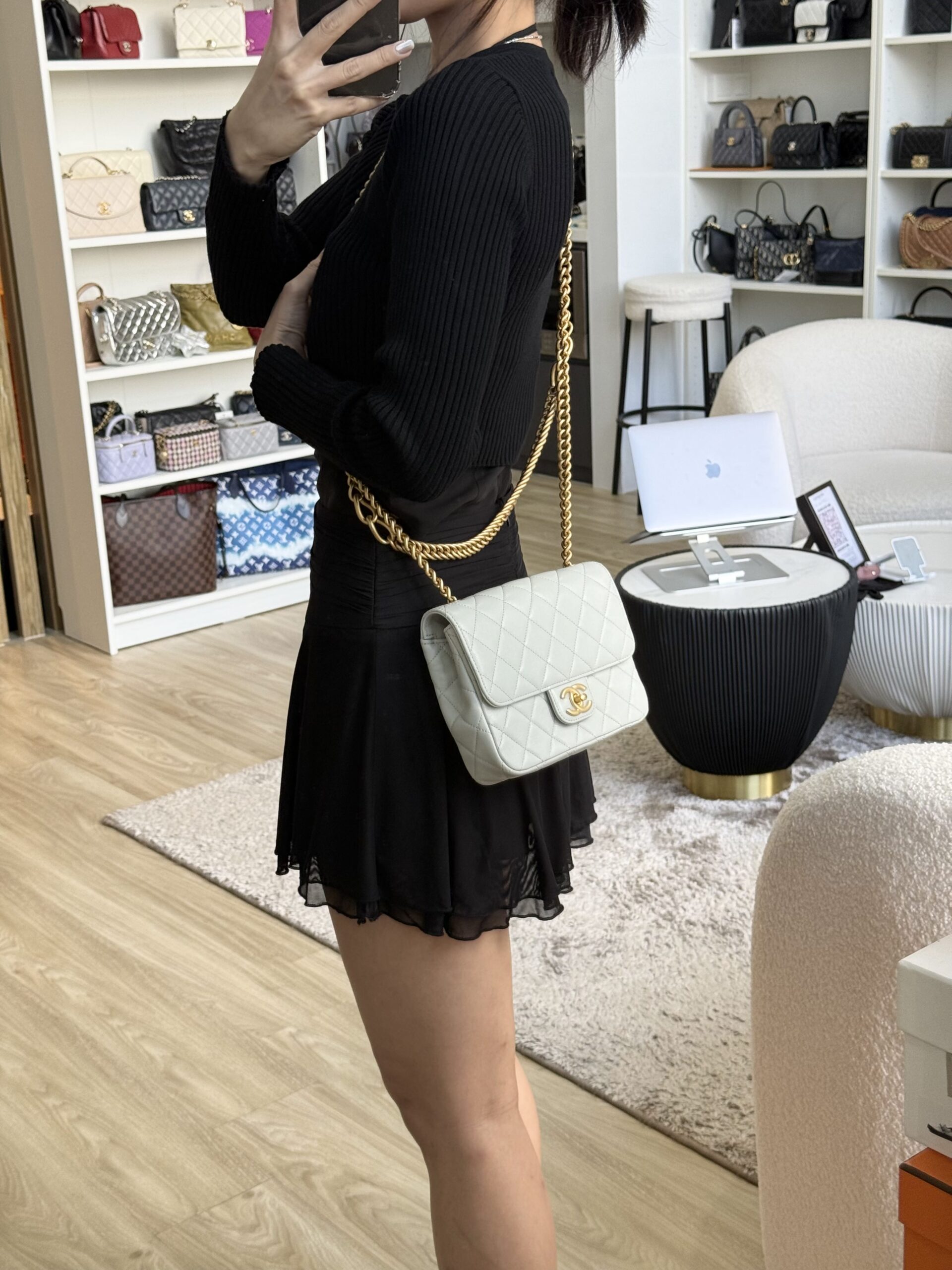 Most of our curated items are in preloved condition unless stated brand new. 100% authentic with life time money guarantee on authenticity. Follow us and stay tuned for latest deals – https://linktr.ee/inluxgence