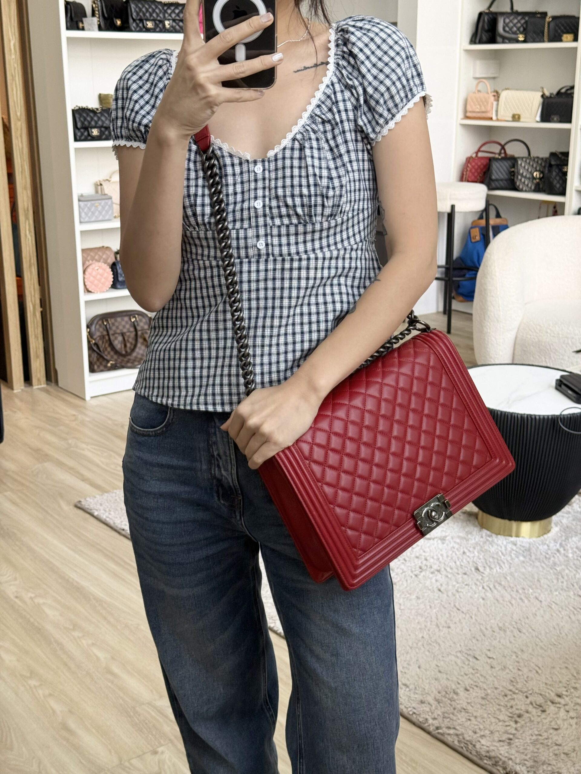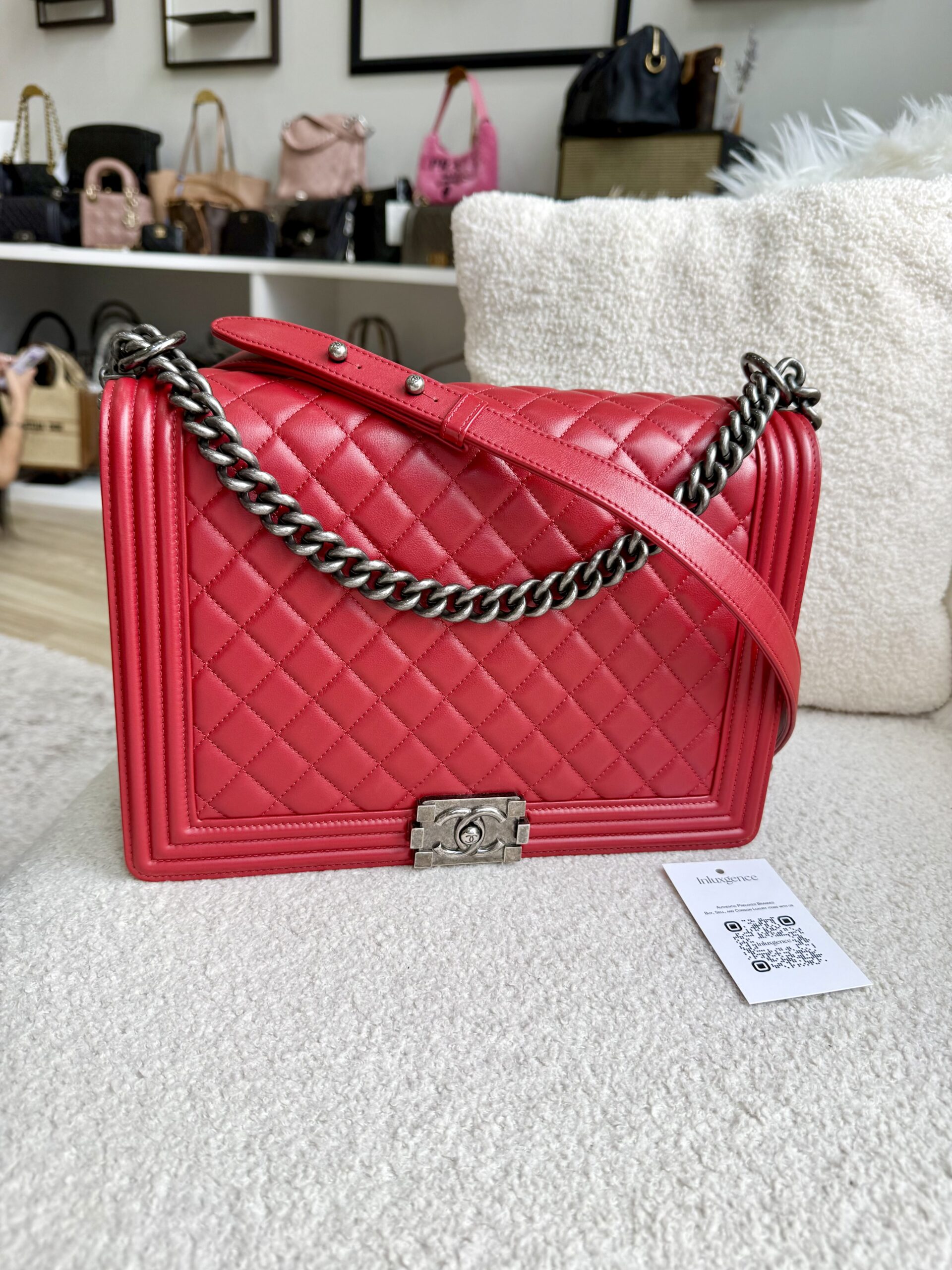 Chanel Large Boy Flap Red Lambskin RHW | ILG5055