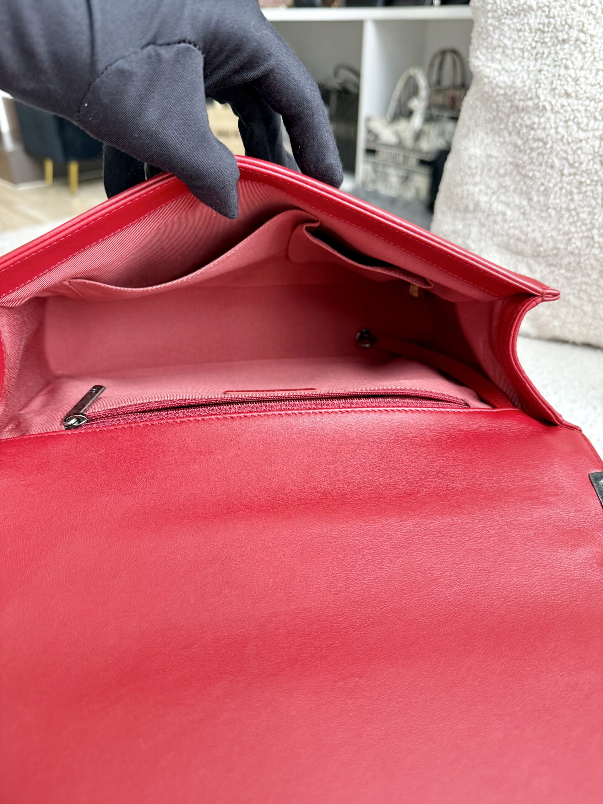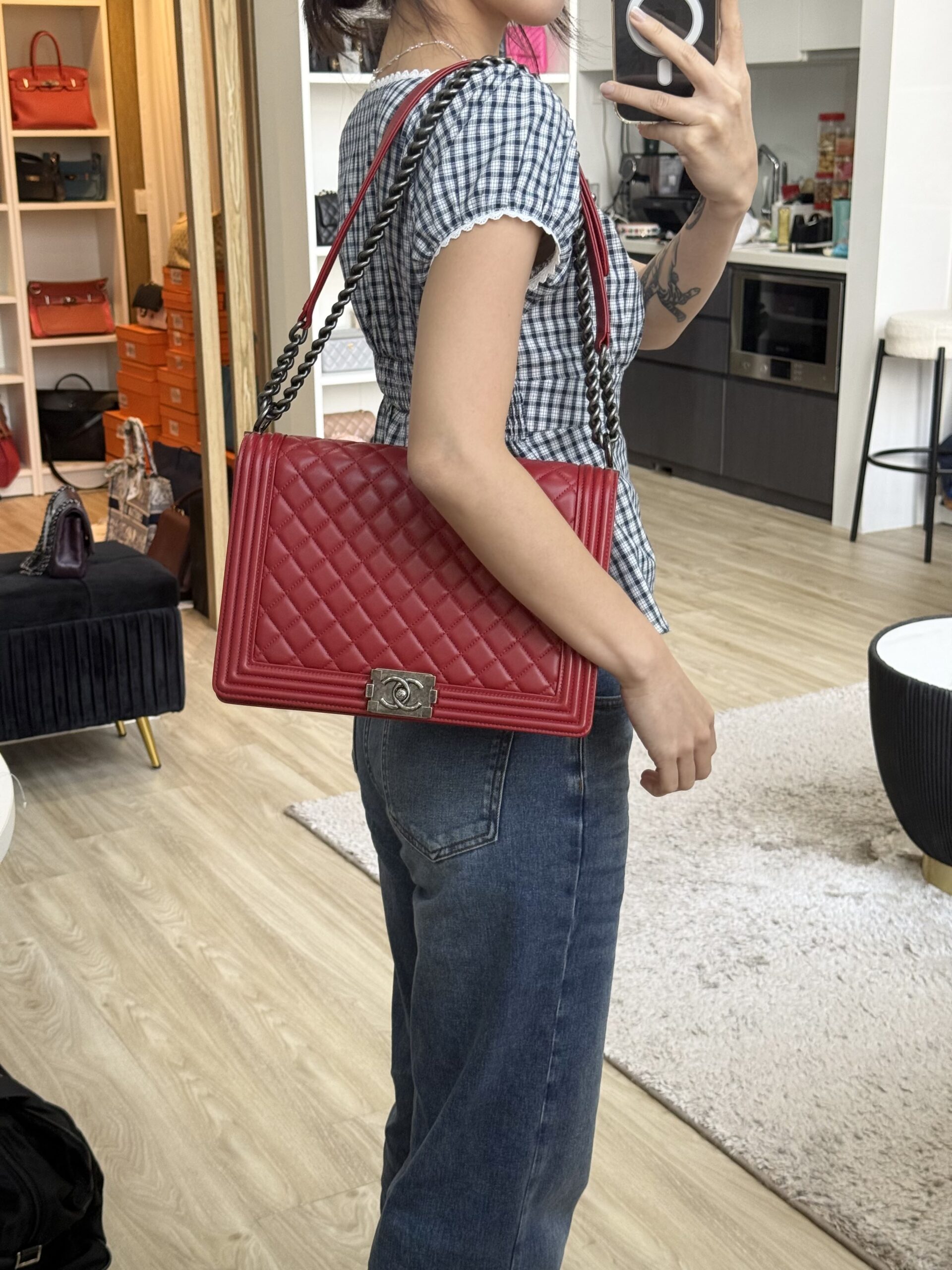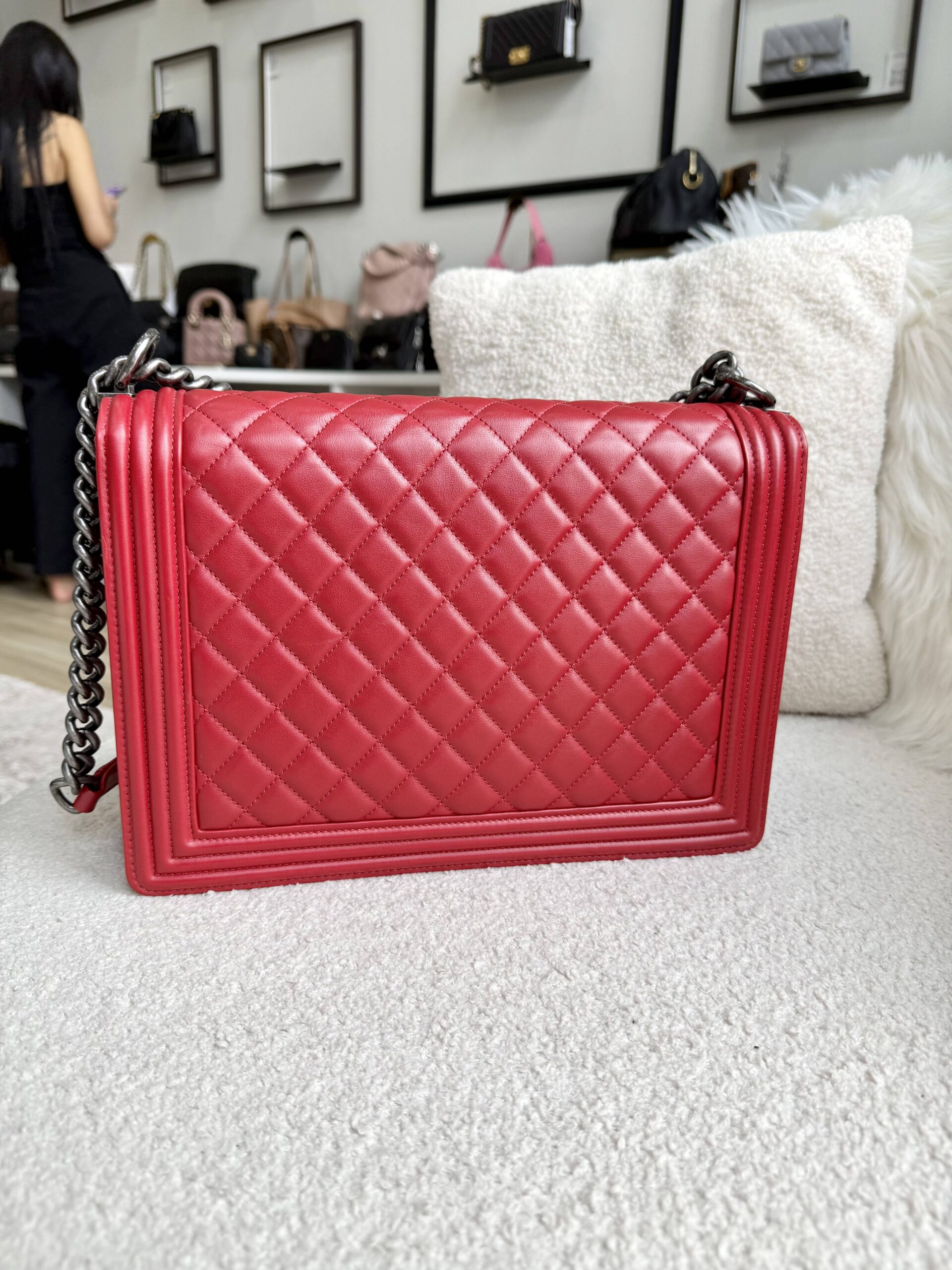 Chanel Large Boy Flap Red Lambskin RHW