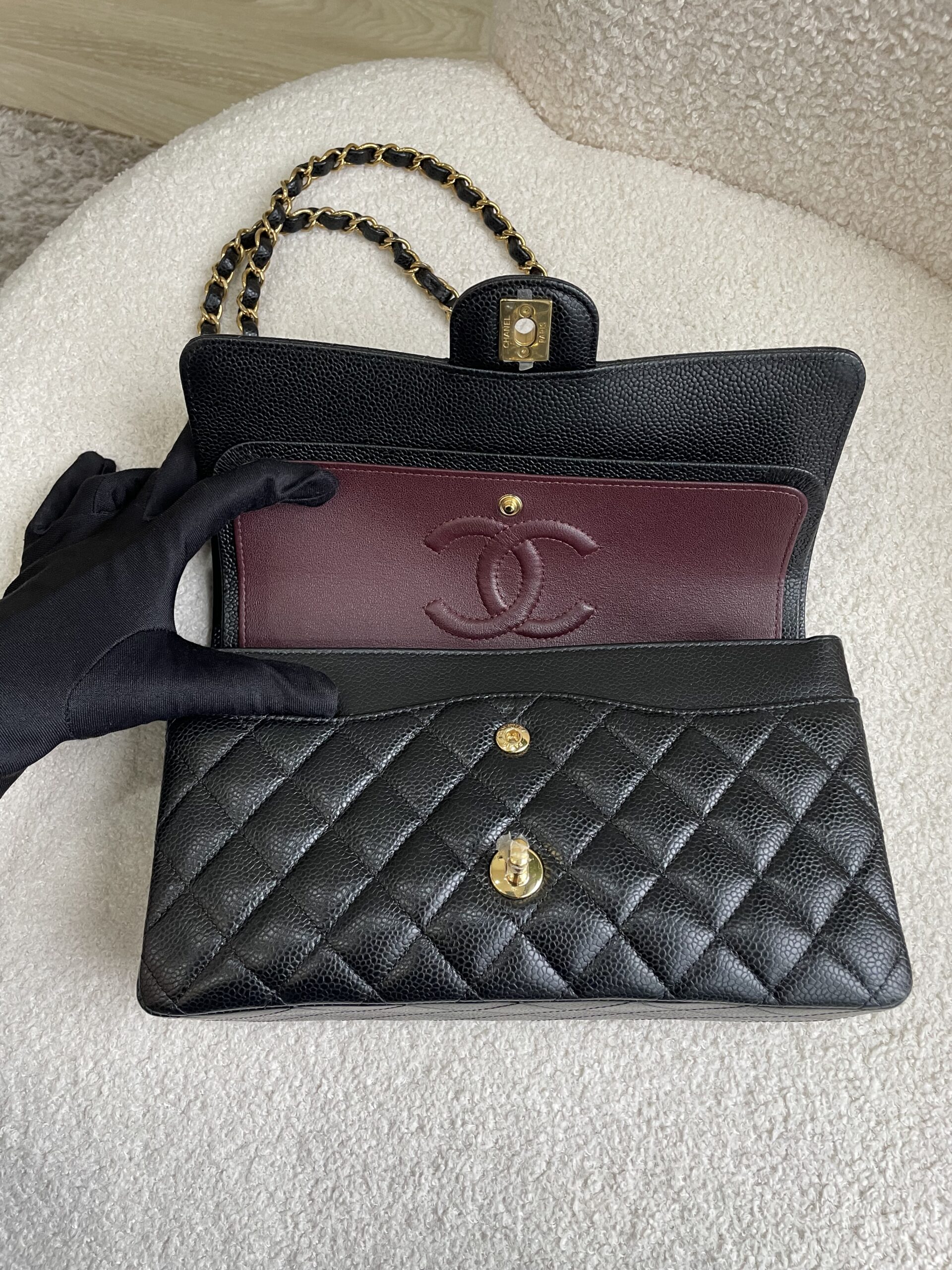 Save 3k plus from retail! The masterpiece – medium classic flap in black caviar and gold hardware ☺️😍 So classy and elegant 😌 Brand new unused – bring home only at 12,290 🎉🍾