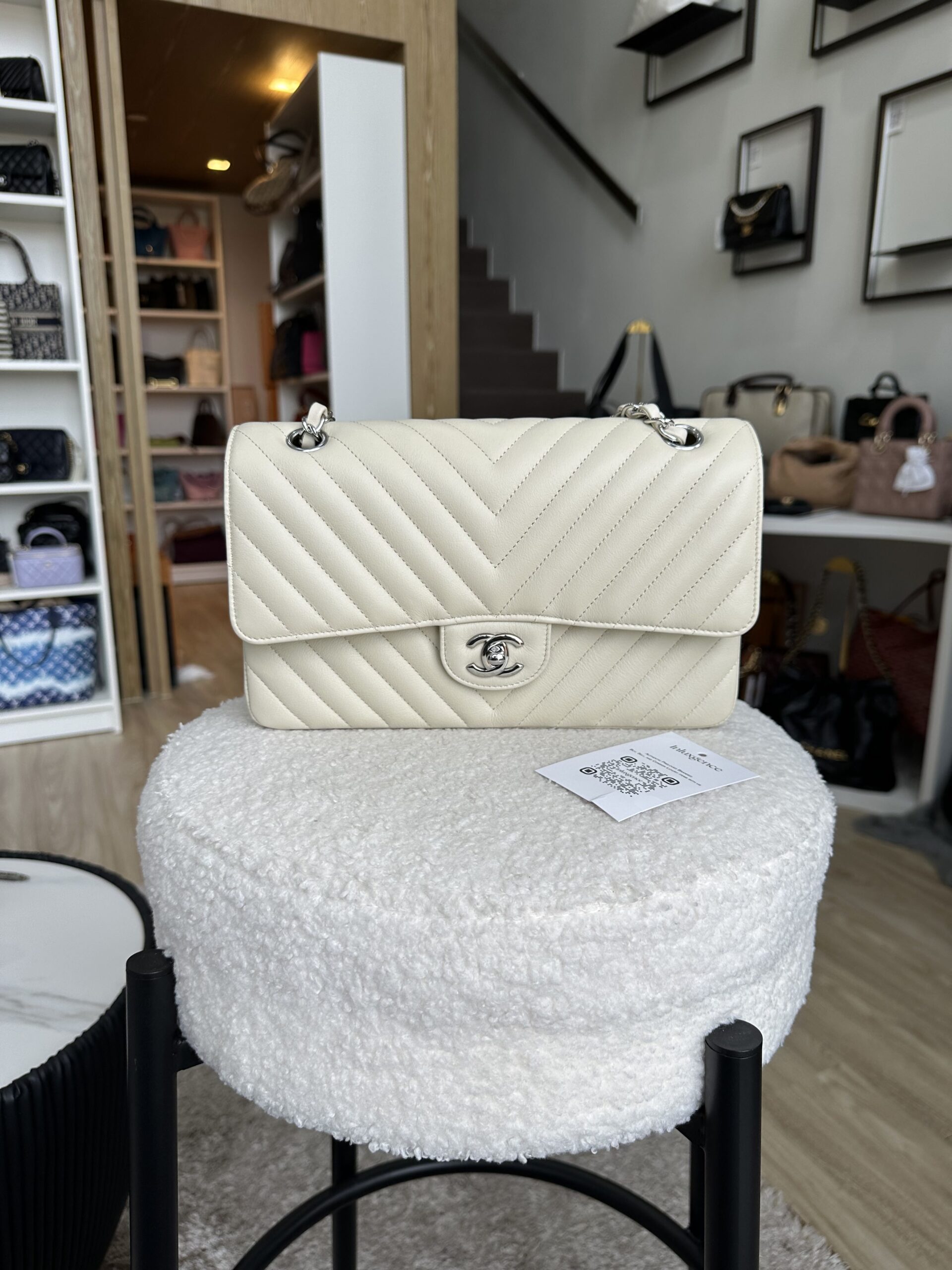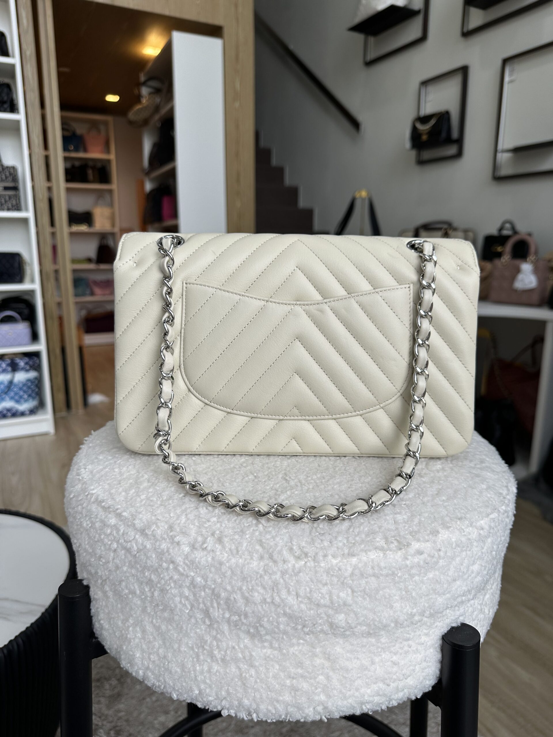 Chanel Medium CF Chevron Cream Lambskin SHW