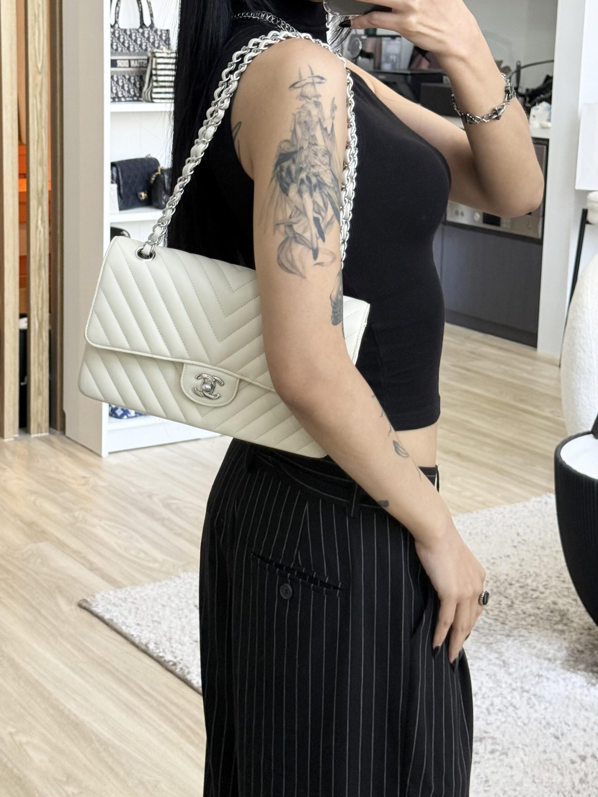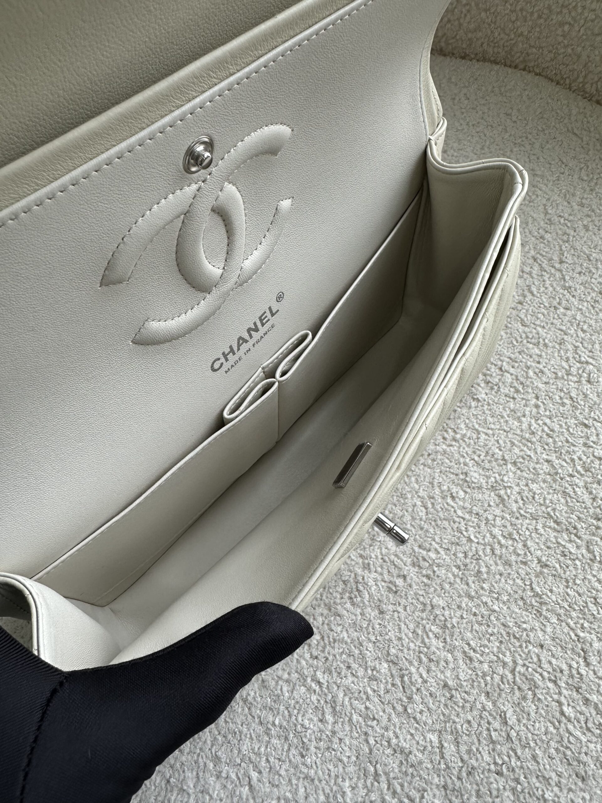 Chanel Medium CF Chevron Cream Lambskin SHW | ILG4323