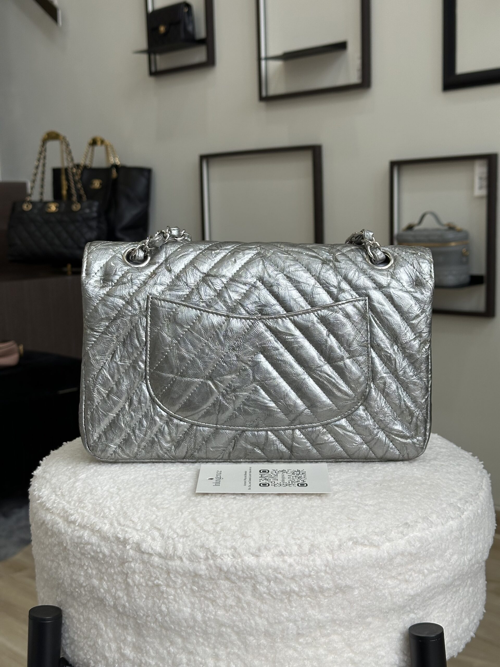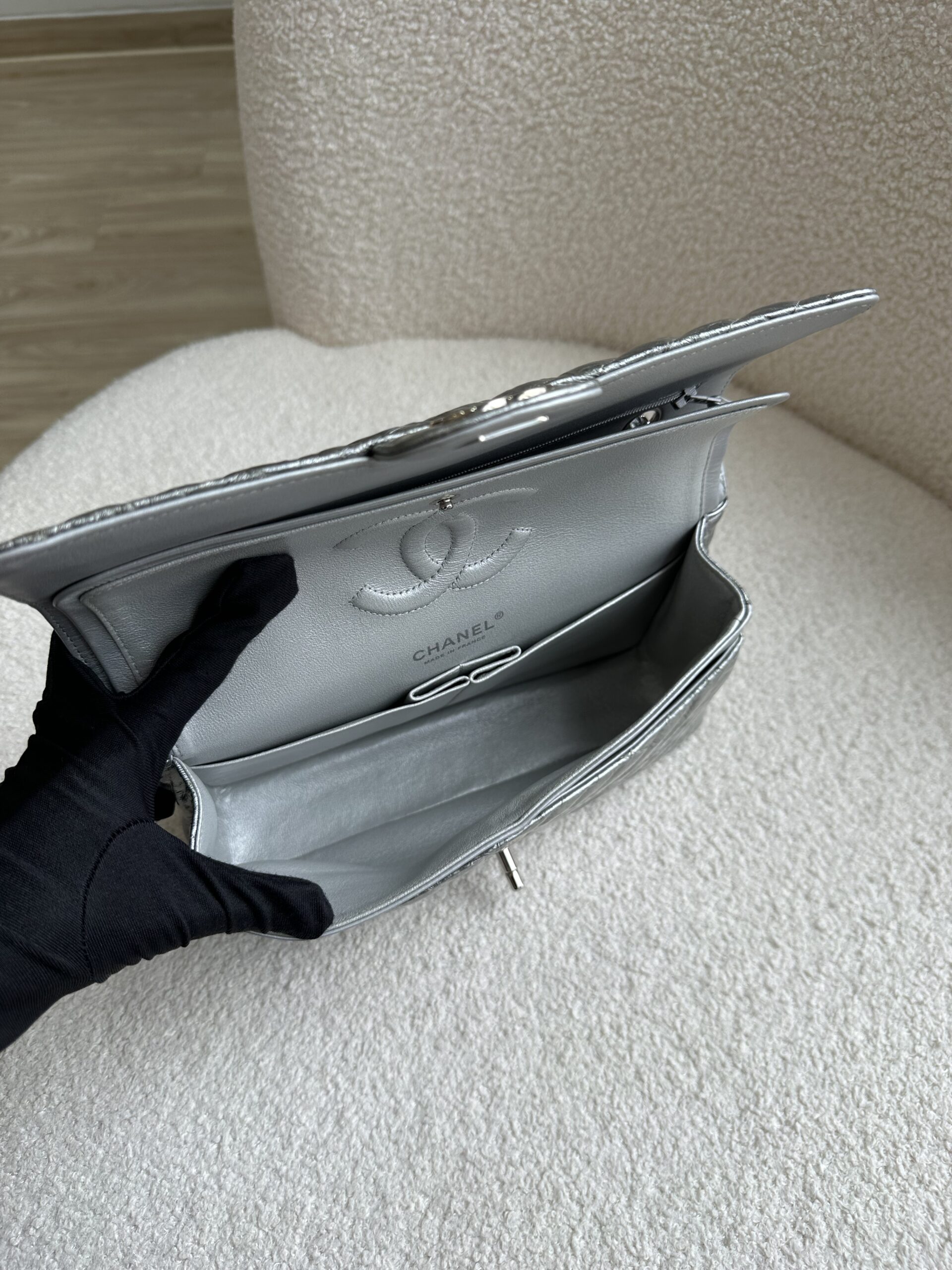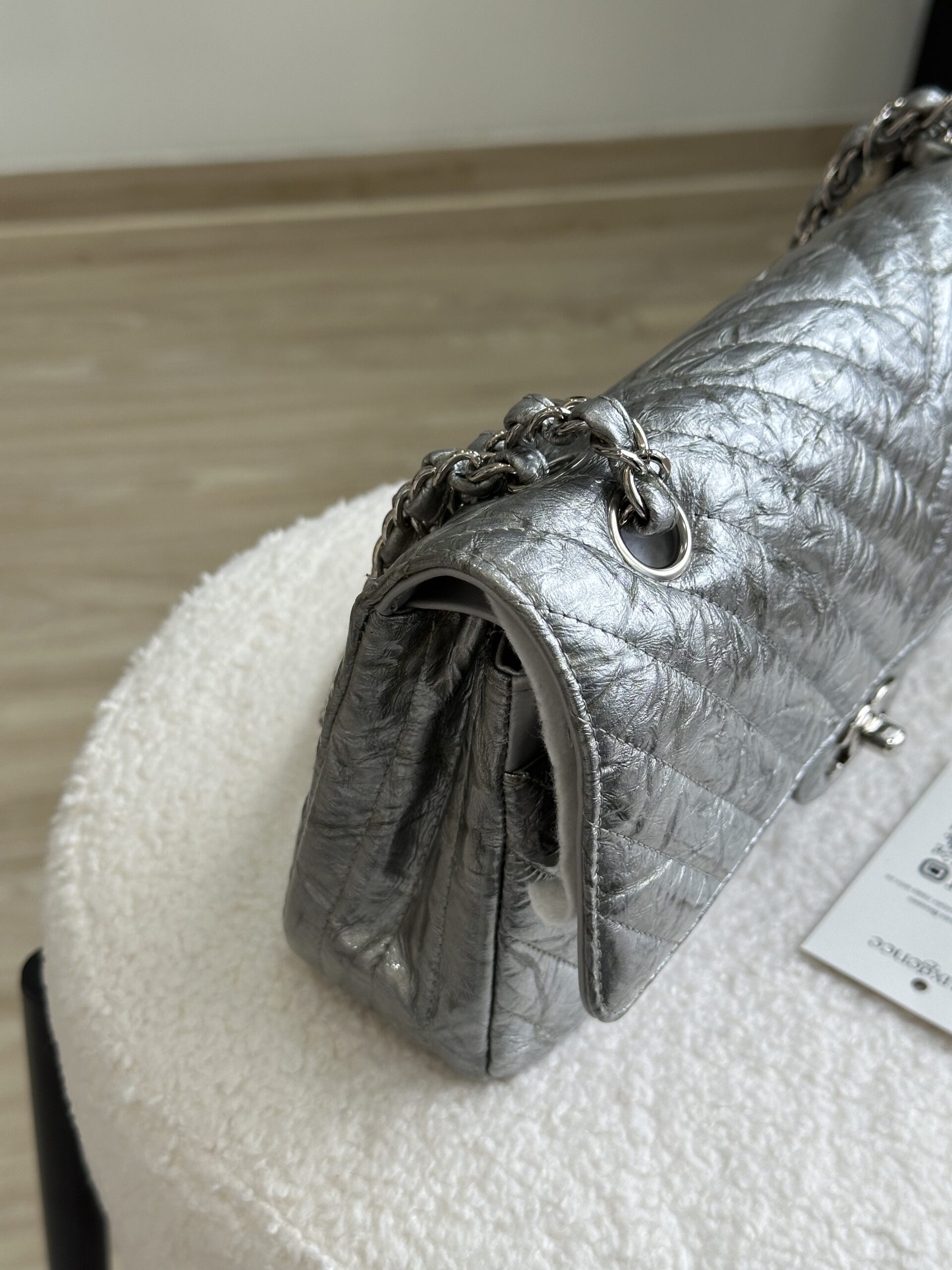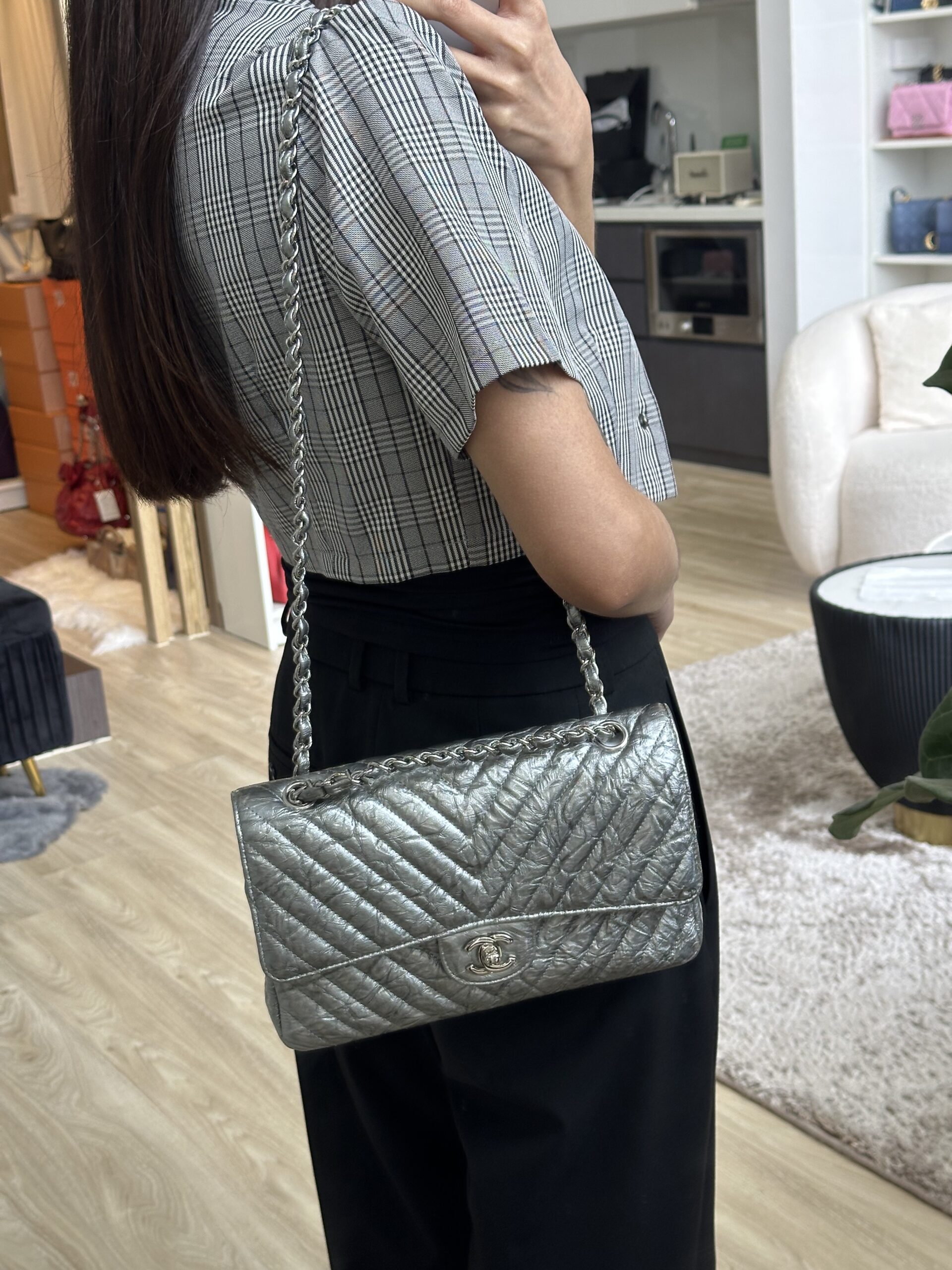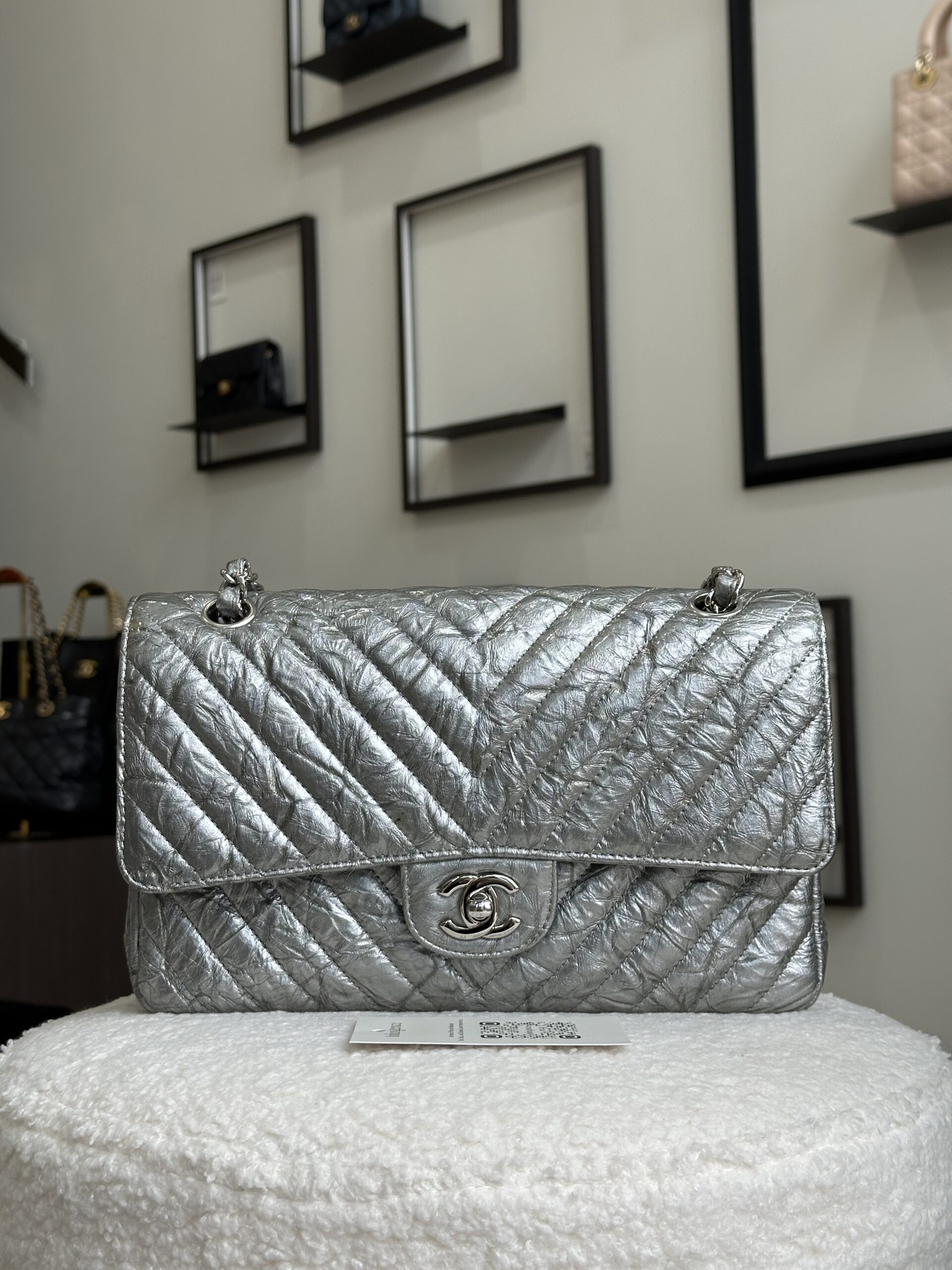 Chanel Medium Chevron CF Silver Patented Aged Wrinkled Calfskin SHW | ILG2967