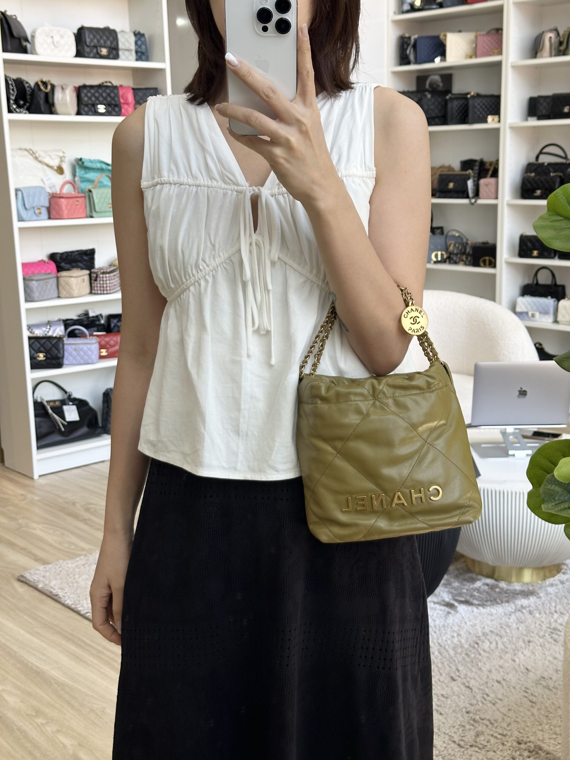 Chanel Mini 22 Olive Calfskin GHW