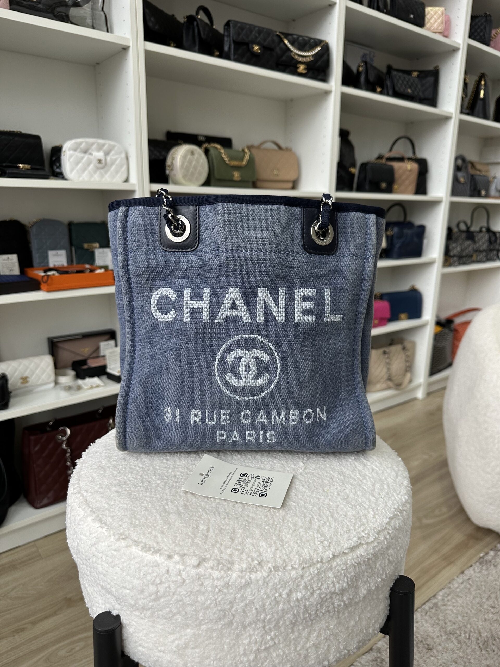 Chanel Mini Deauville Shopping Tote Blue SHW