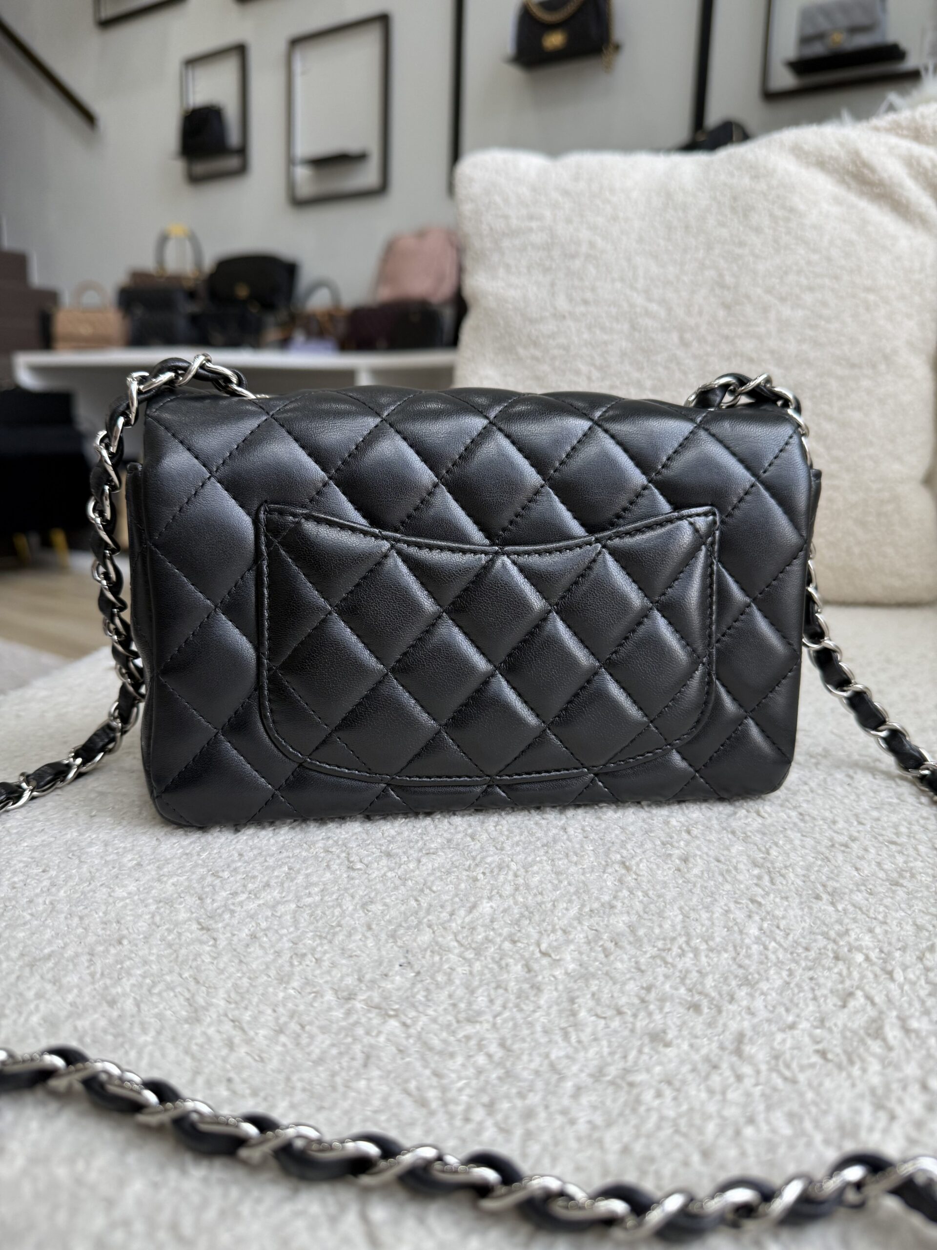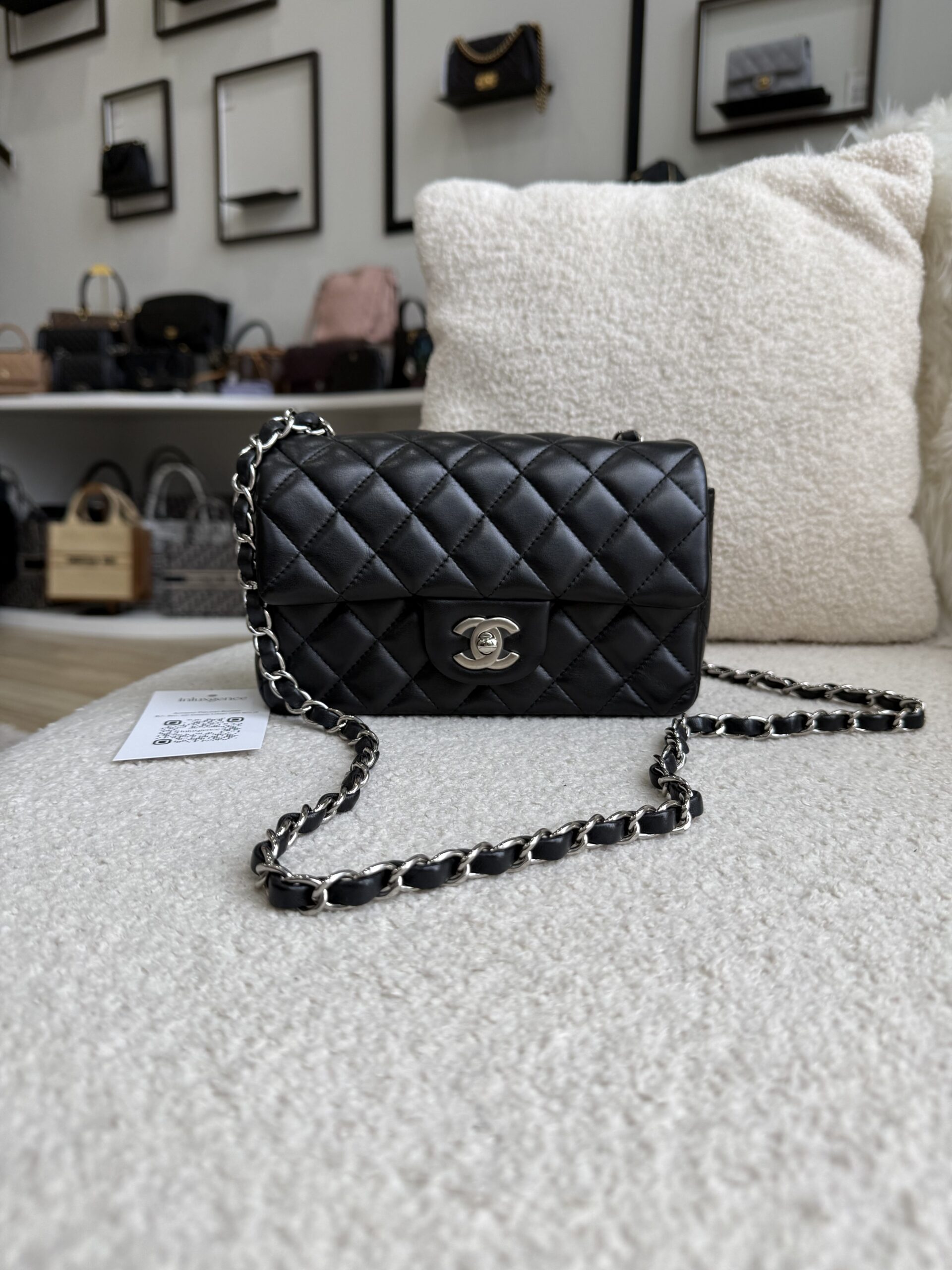 Chanel Mini Rectangular Black Lambskin SHW | ILG5073