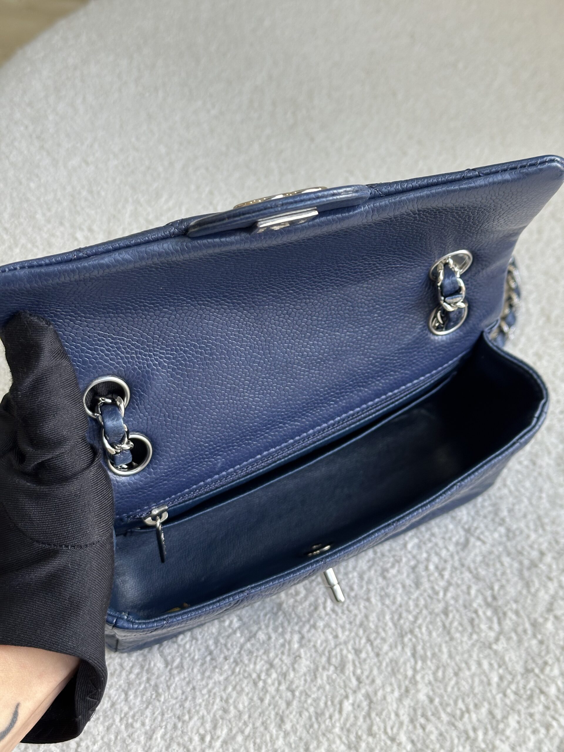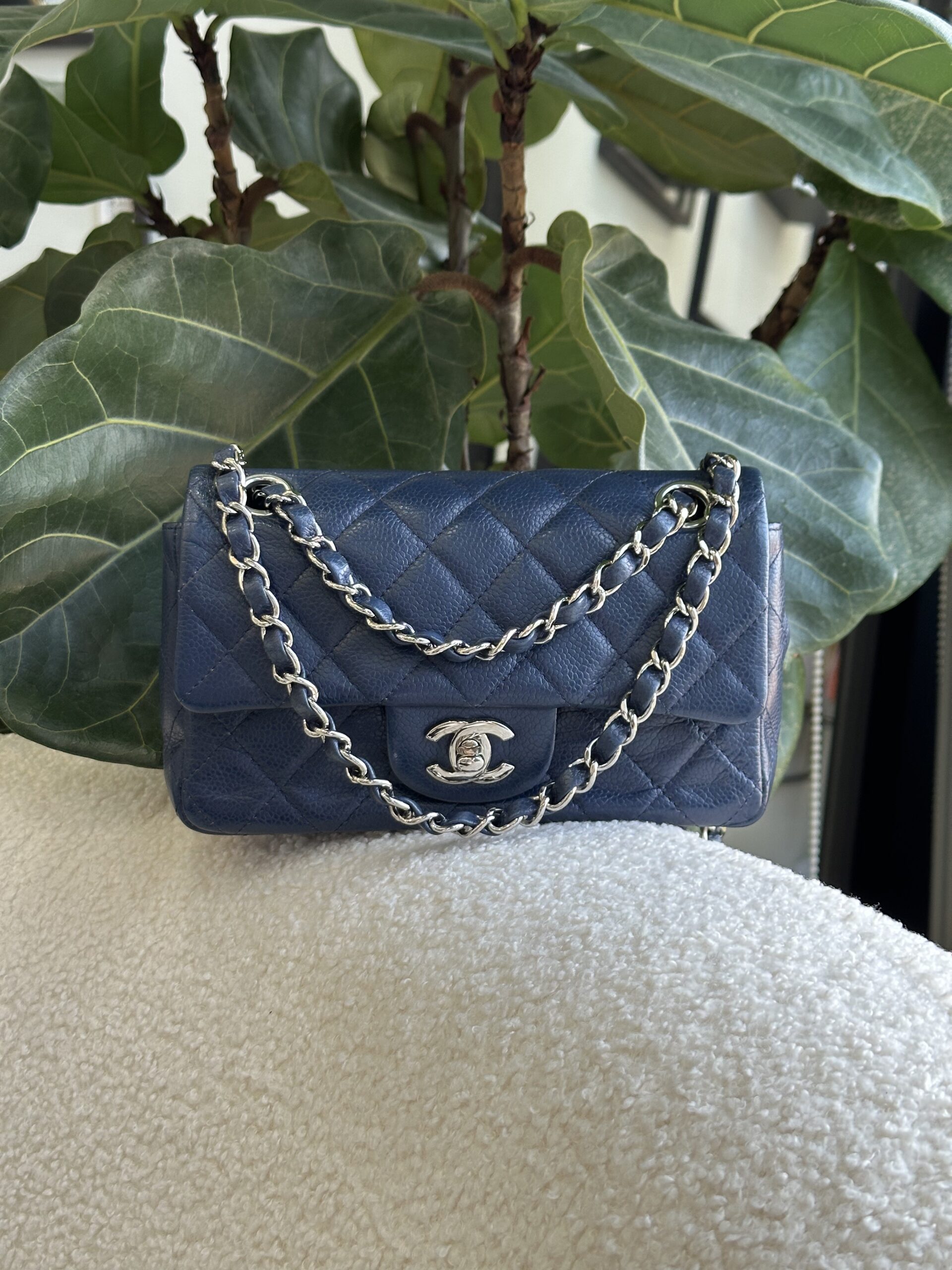 A rare caviar mini Rect in blue 💙🩵 The unique 4 grommets allow you to do shoulder carry and crossbody depending on your mood and events 😎