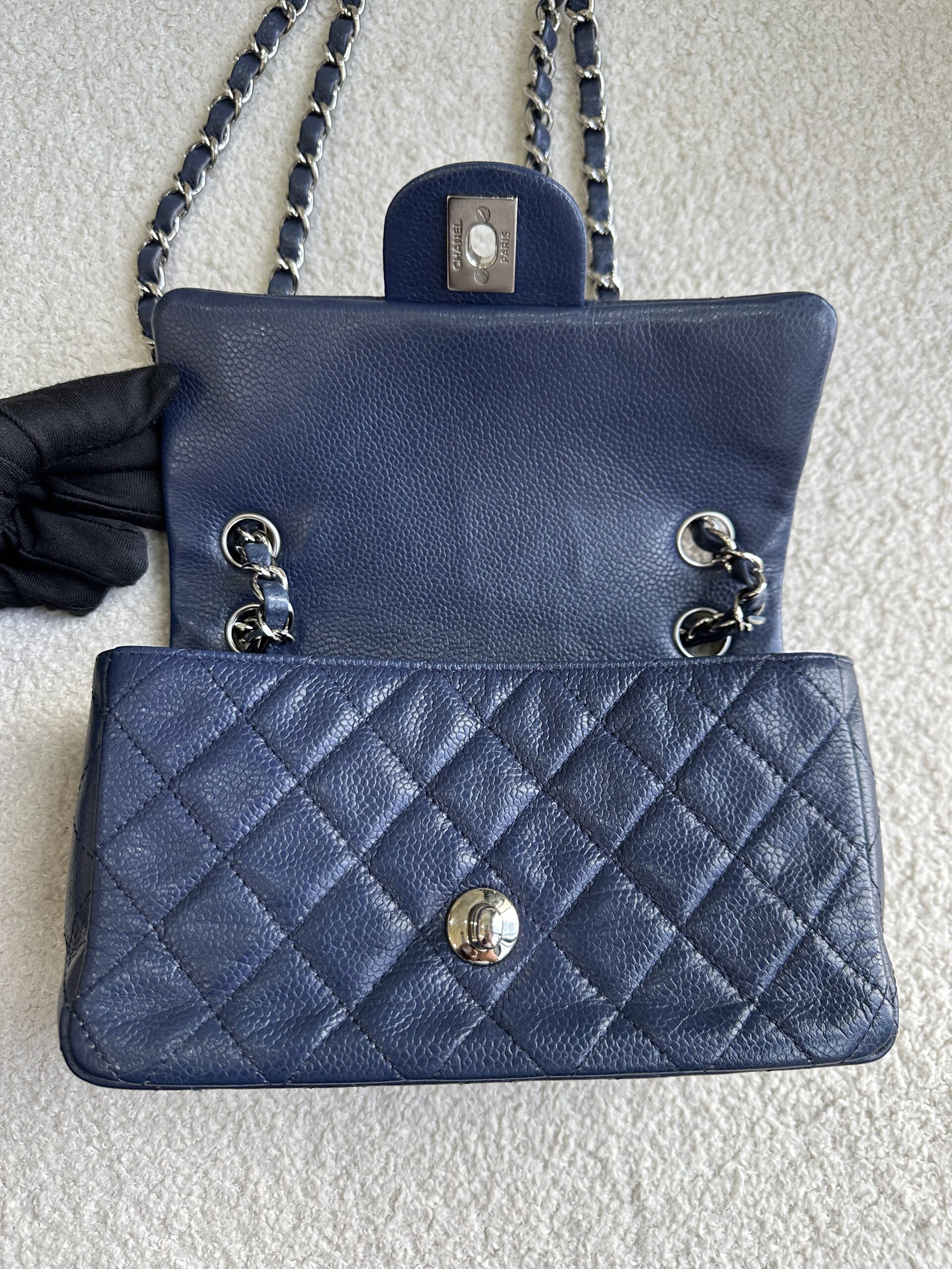 Chanel Mini Rectangular Blue Caviar SHW