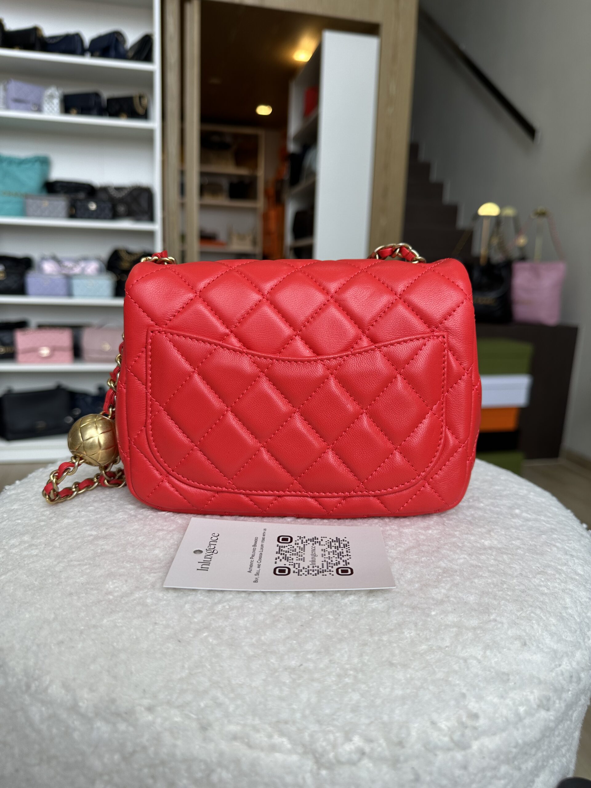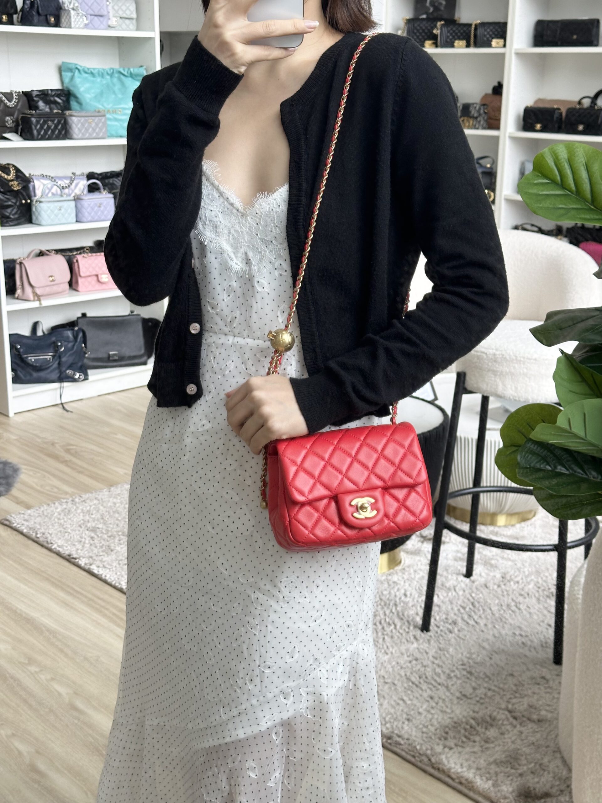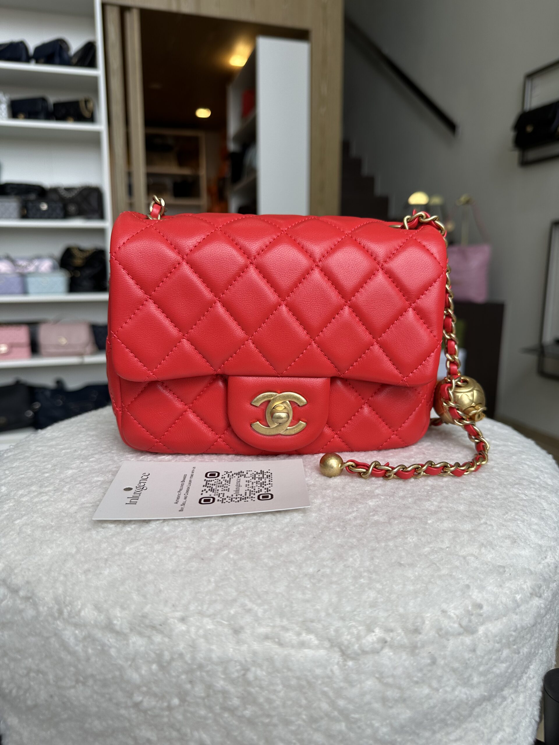 Chanel Pearl Crush Mini Square Red Lambskin GHW | ILG3345