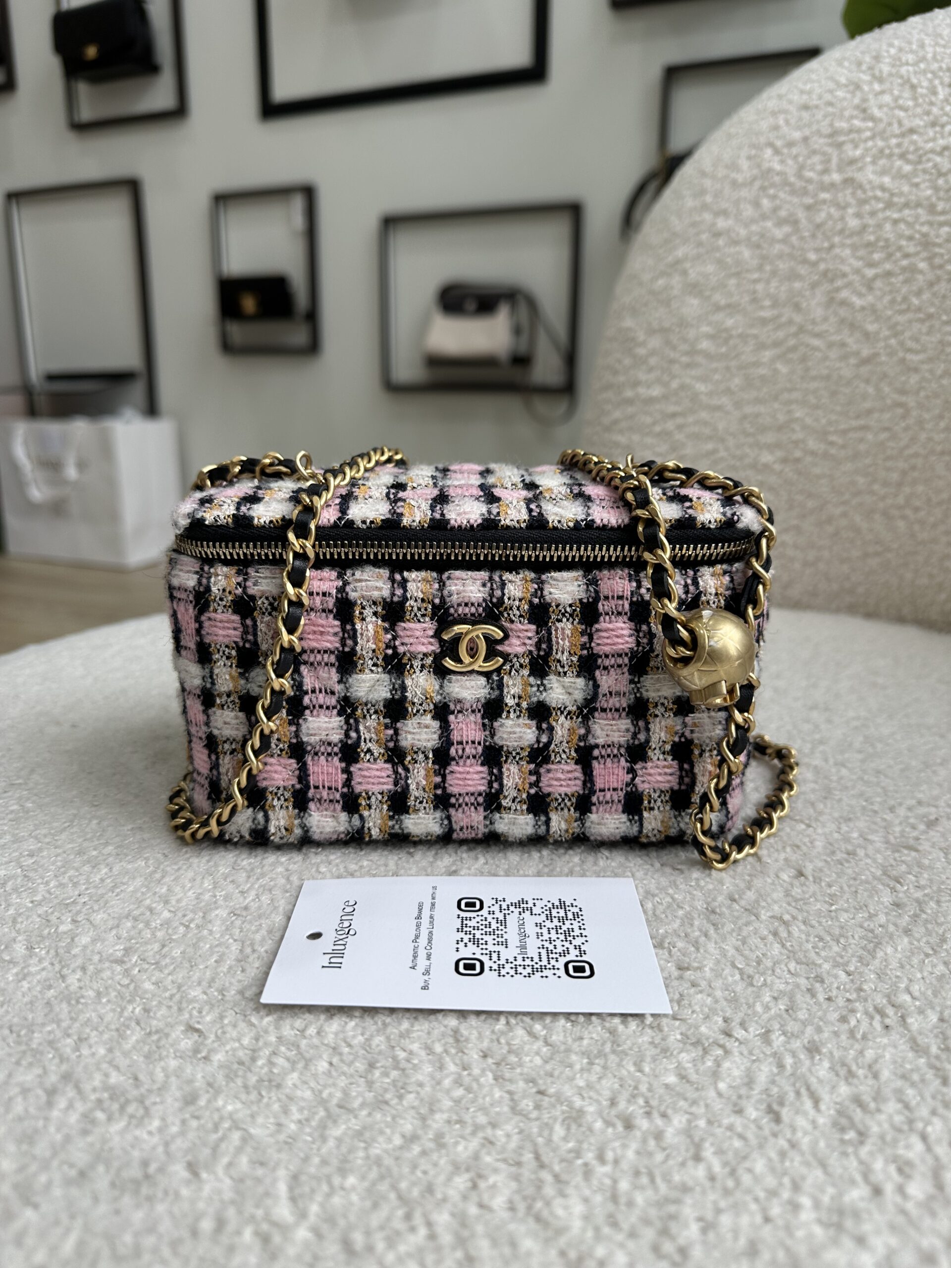 Chanel Pearl Crush Vanity Multicolor/Pink Tweed GHW | ILG3694
