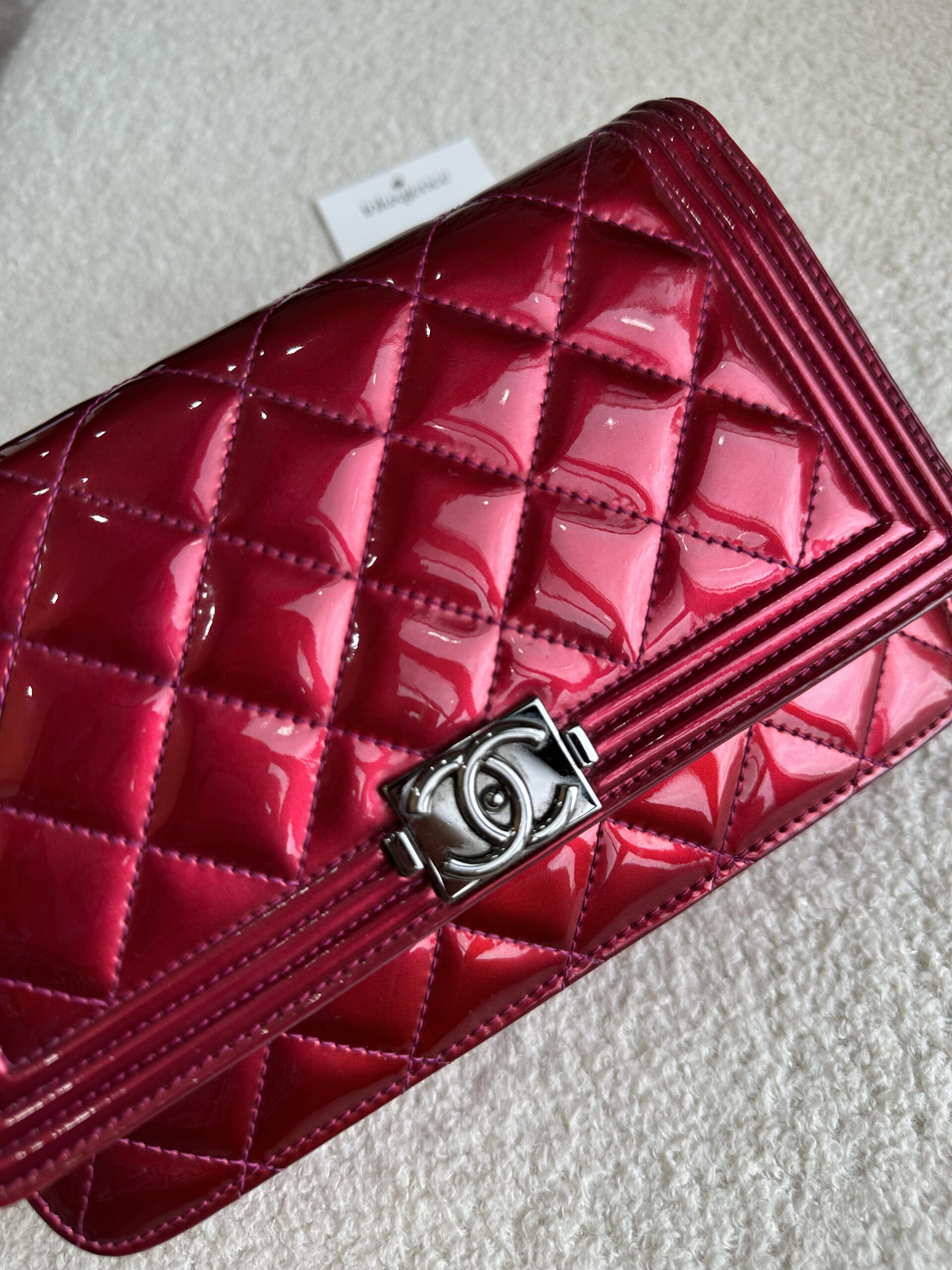 Chanel Red Patent Leather Boy WOC SHW