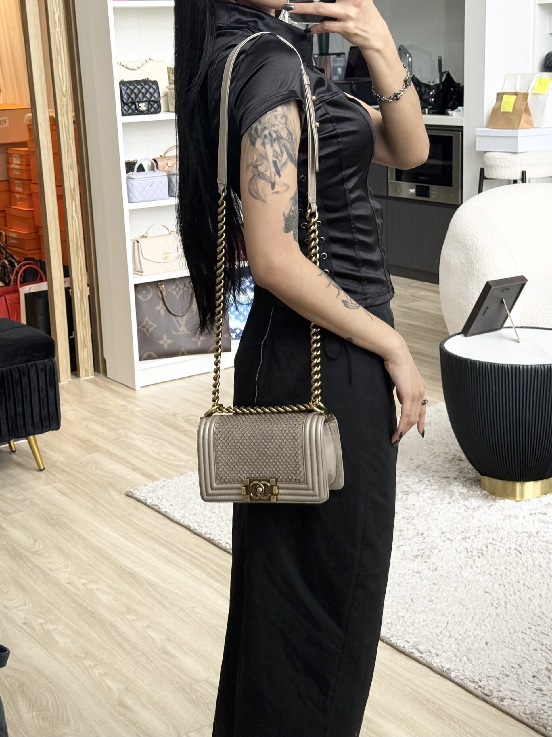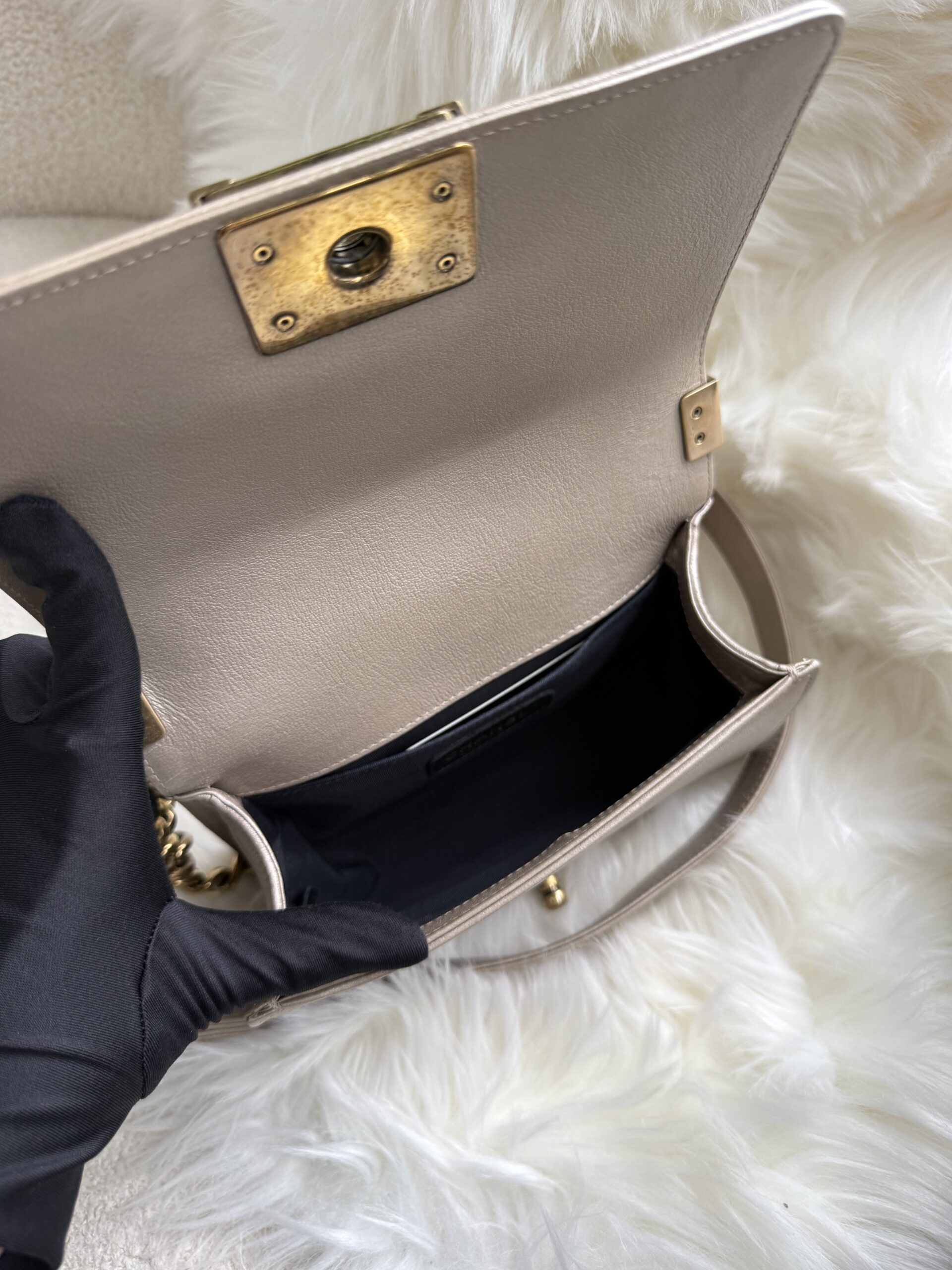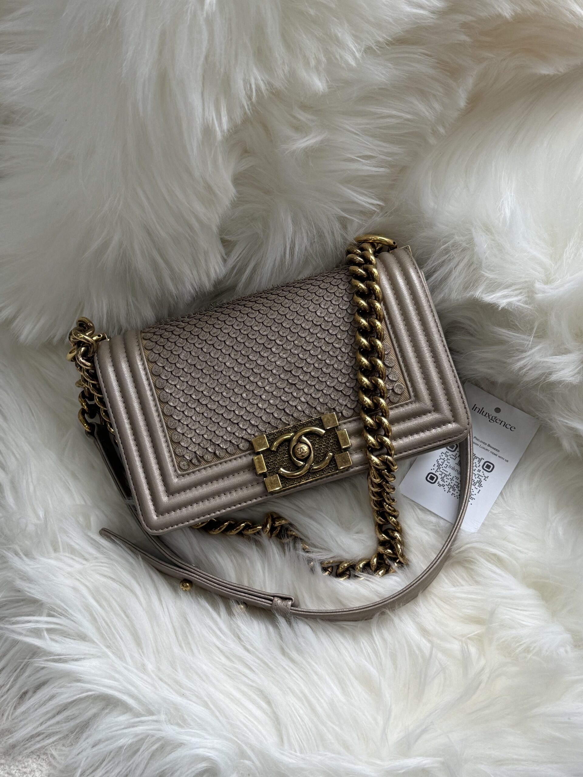 Chanel Small Boy Scaled Light Gold Lambskin Aged GHW