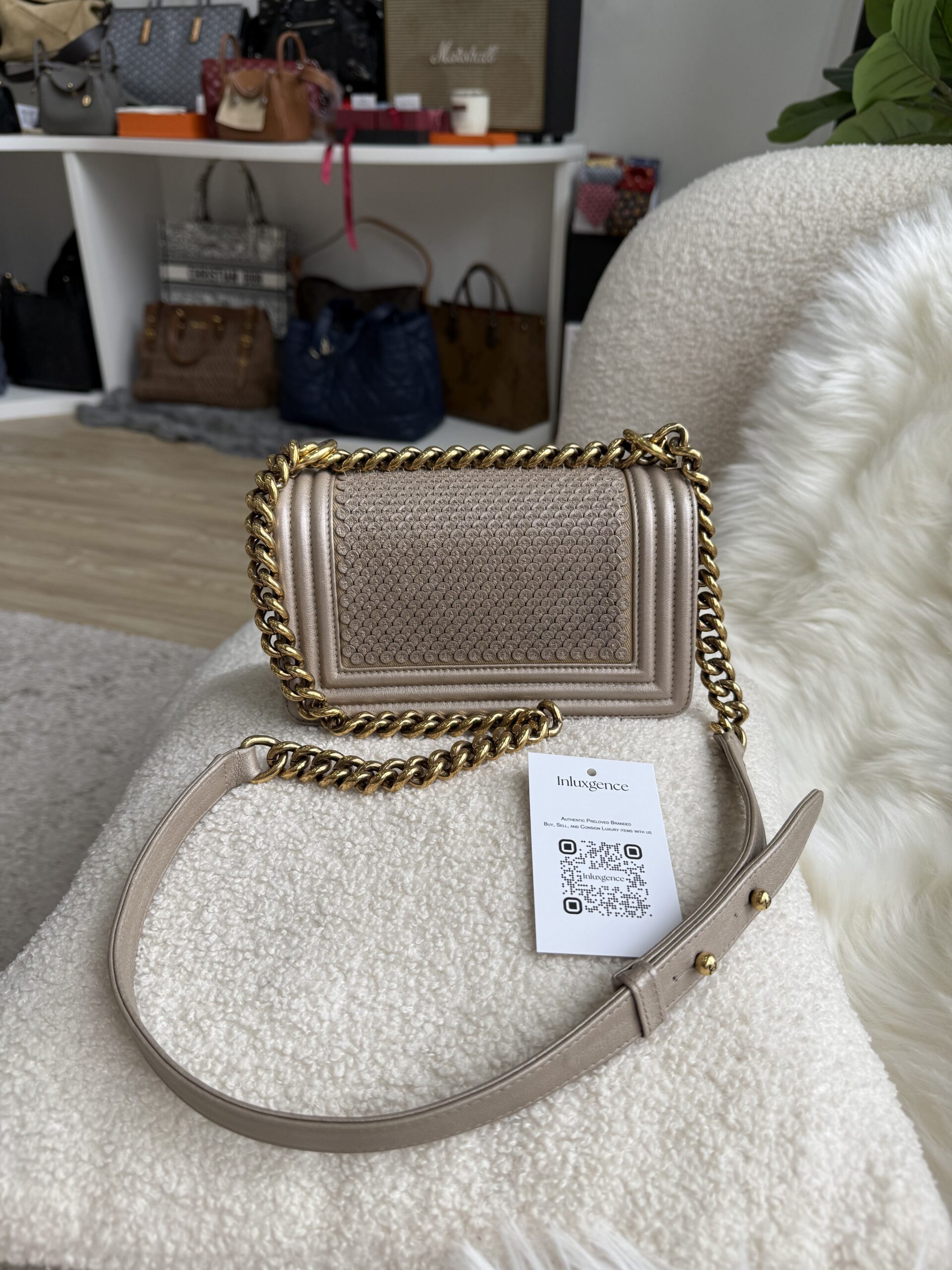 Most of our curated items are in preloved condition unless stated brand new. 100% authentic with life time money guarantee on authenticity. Follow us and stay tuned for latest deals – https://linktr.ee/inluxgence