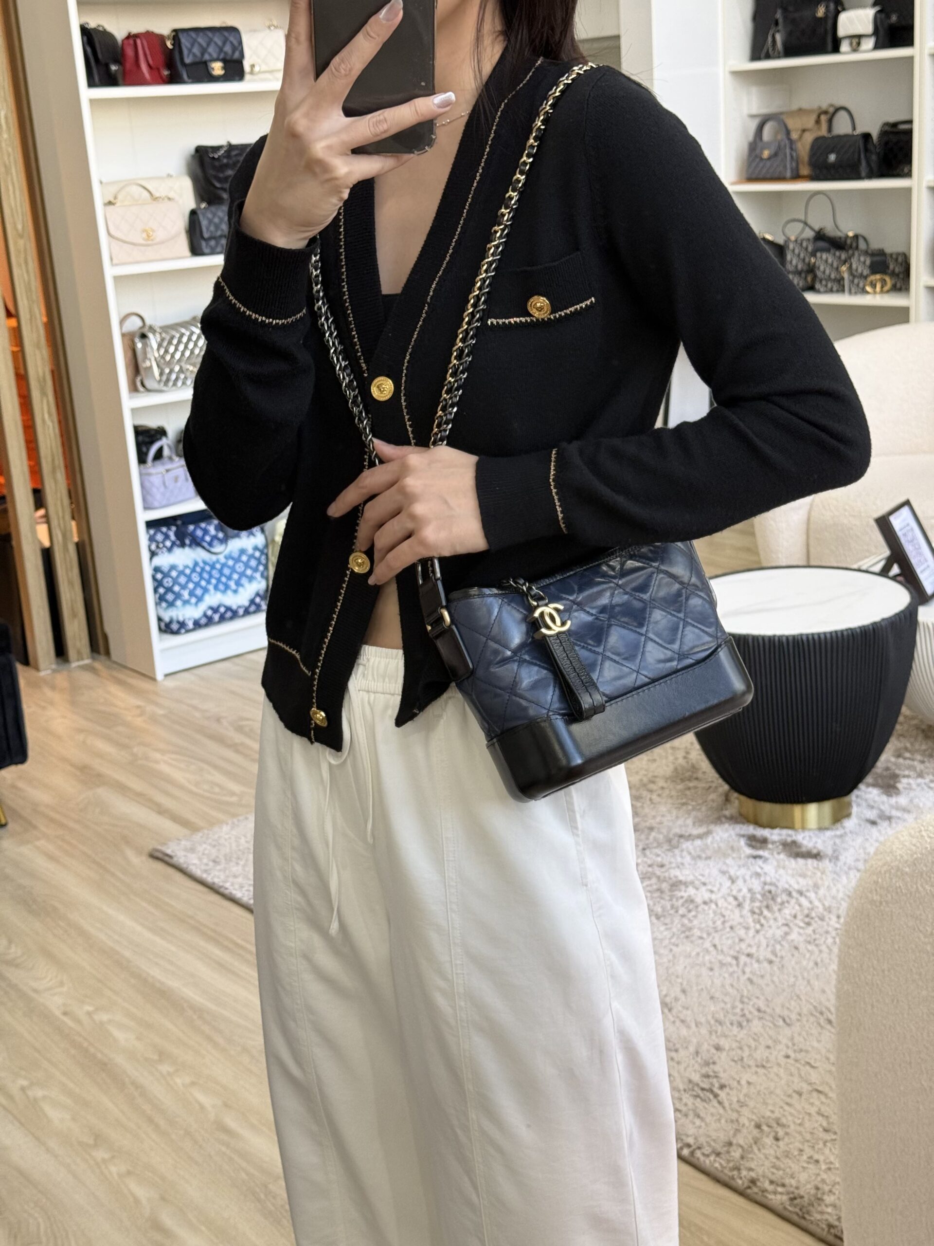 Chanel Small Gabrielle Navy Blue Aged Calfskin GHW