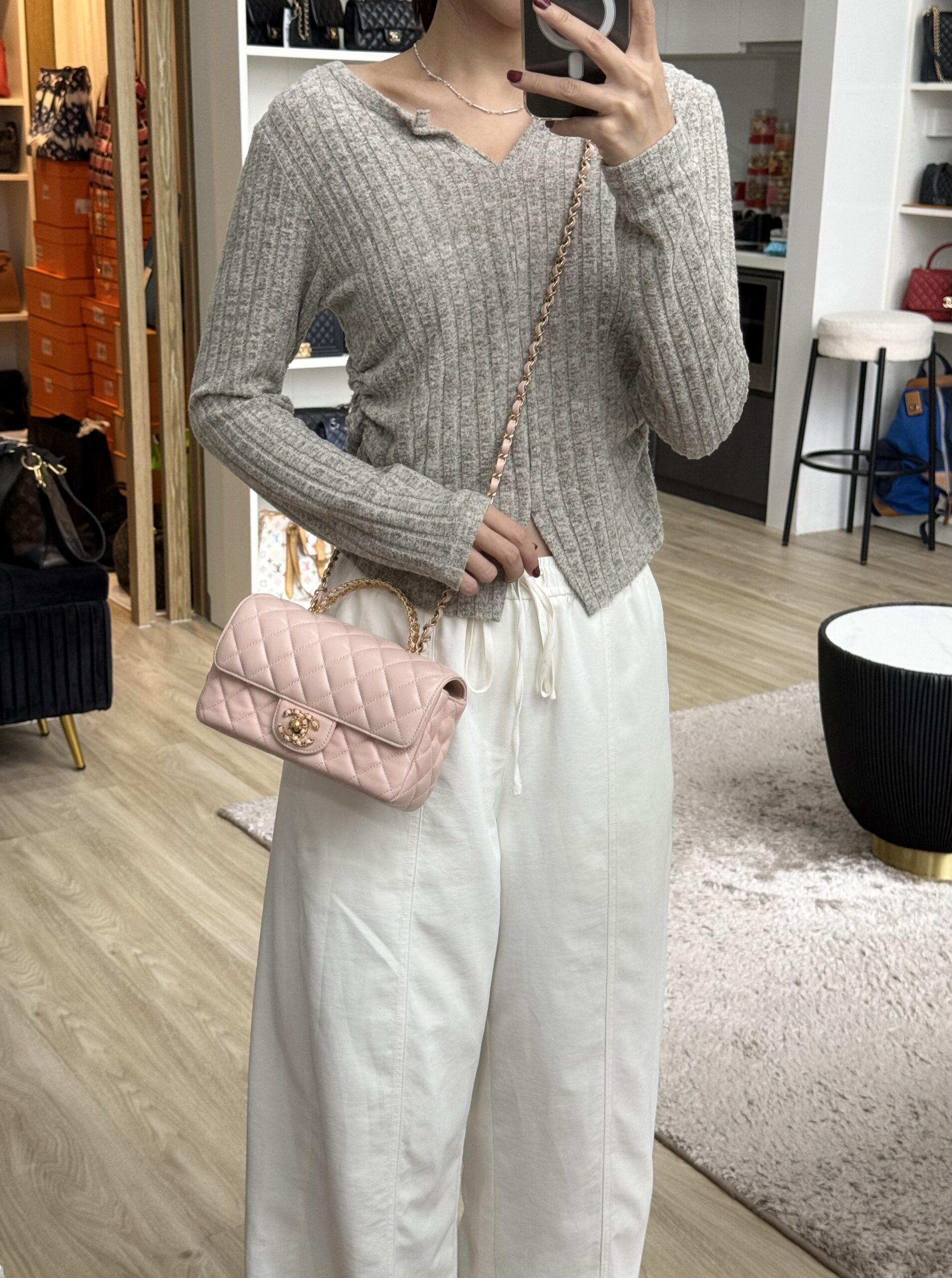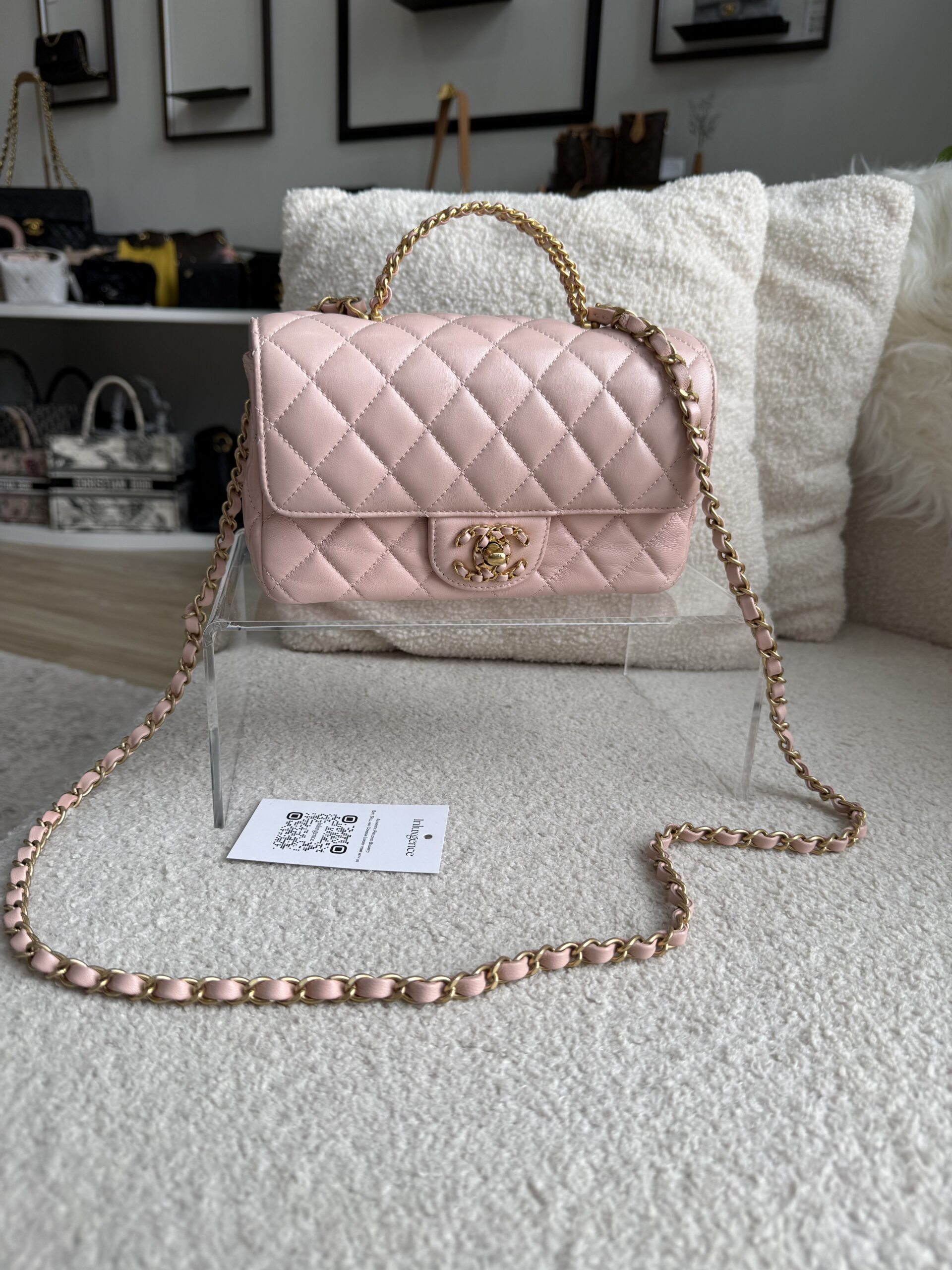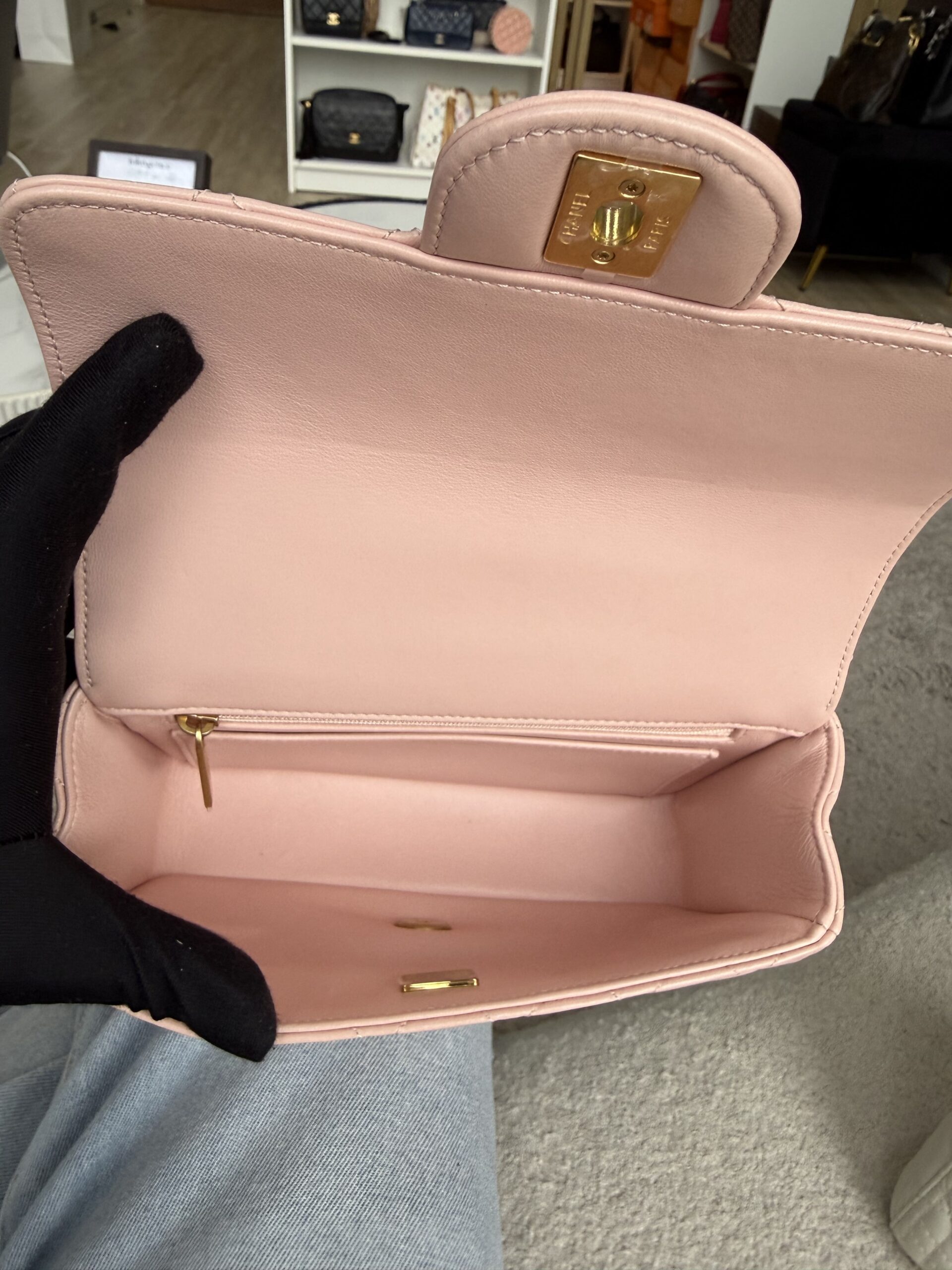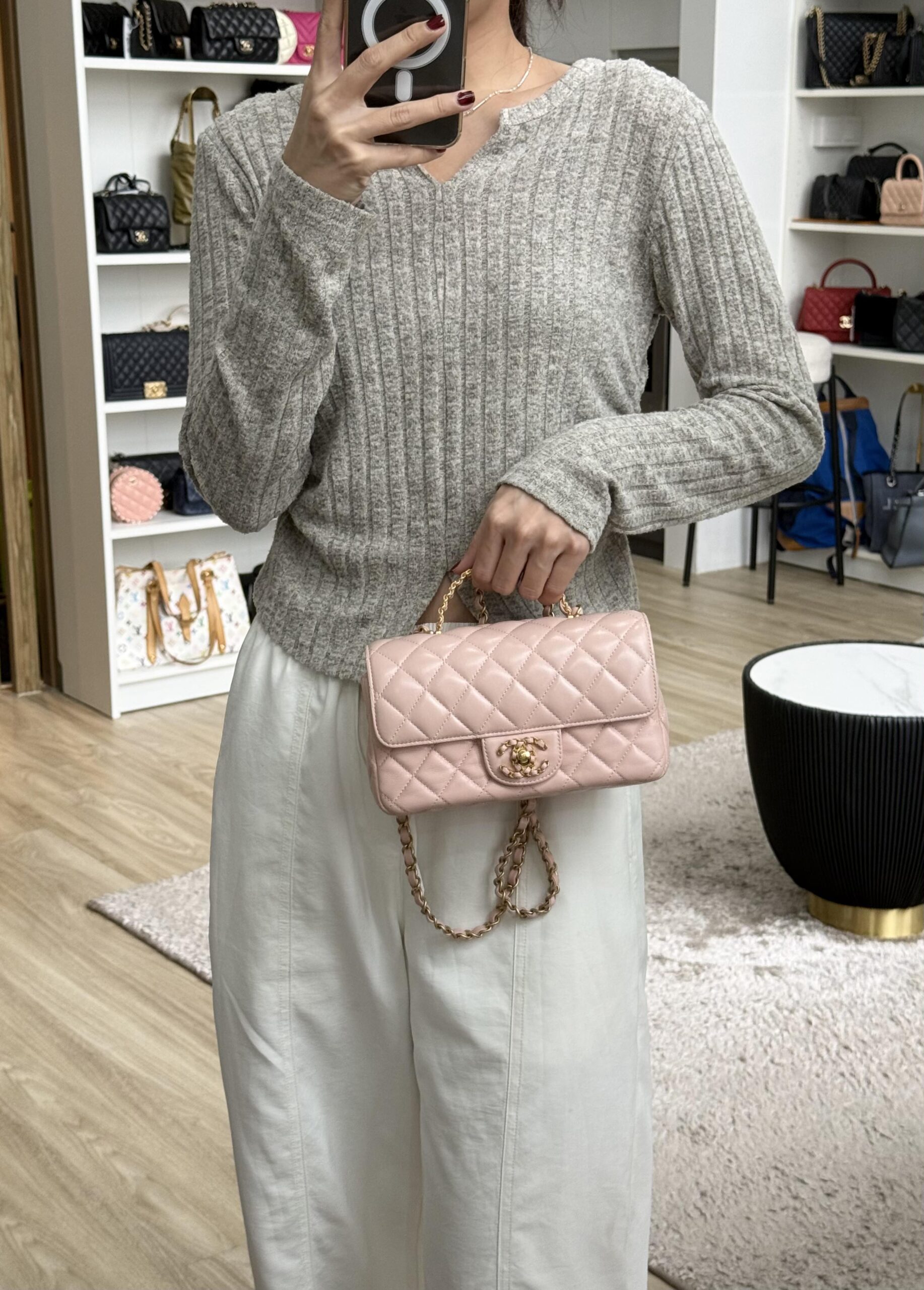 Chanel Top Handle Embellished Logo Pink Lambskin Aged GHW