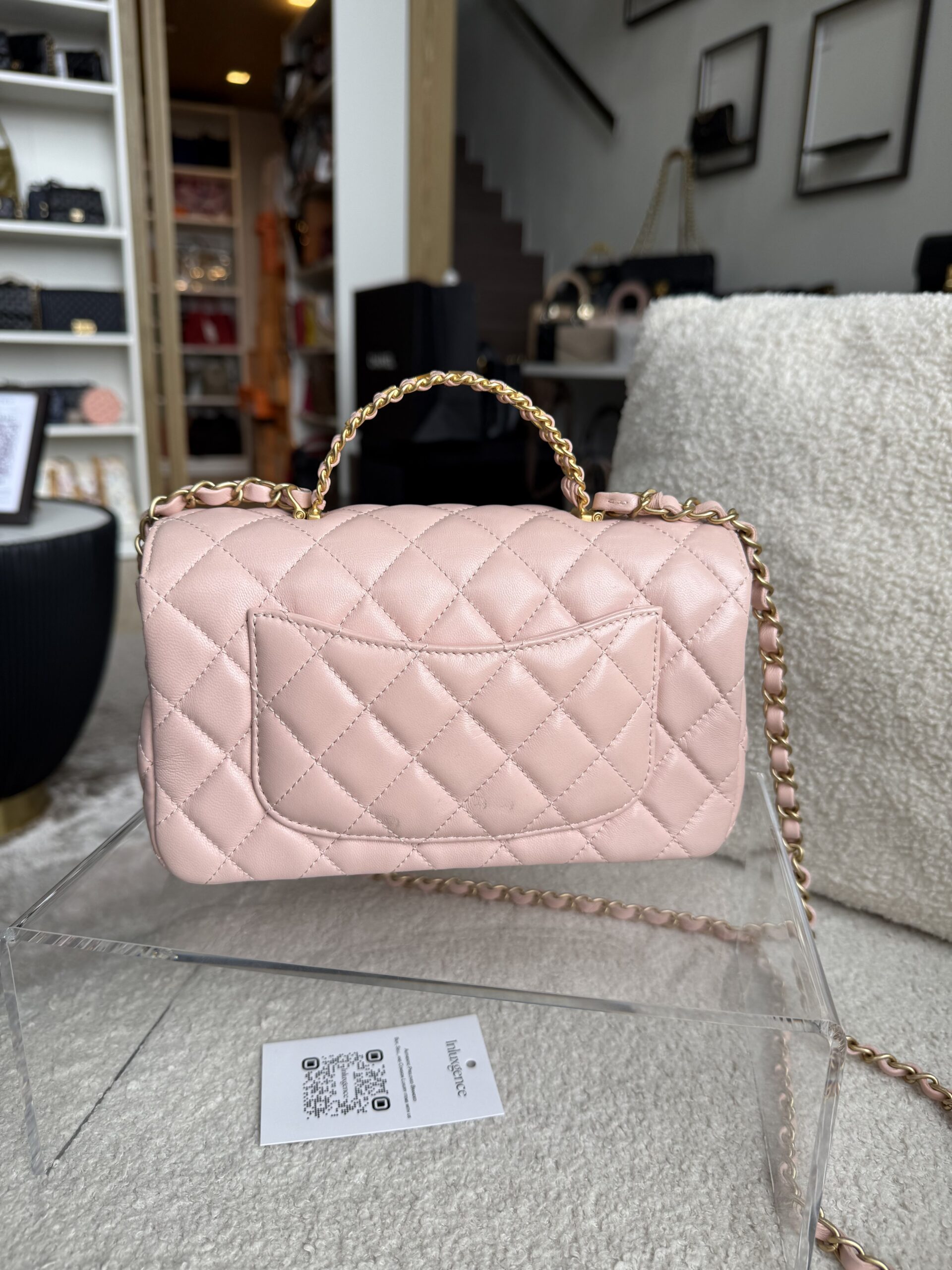 Chanel Top Handle Embellished Logo Pink Lambskin Aged GHW | ILG5167