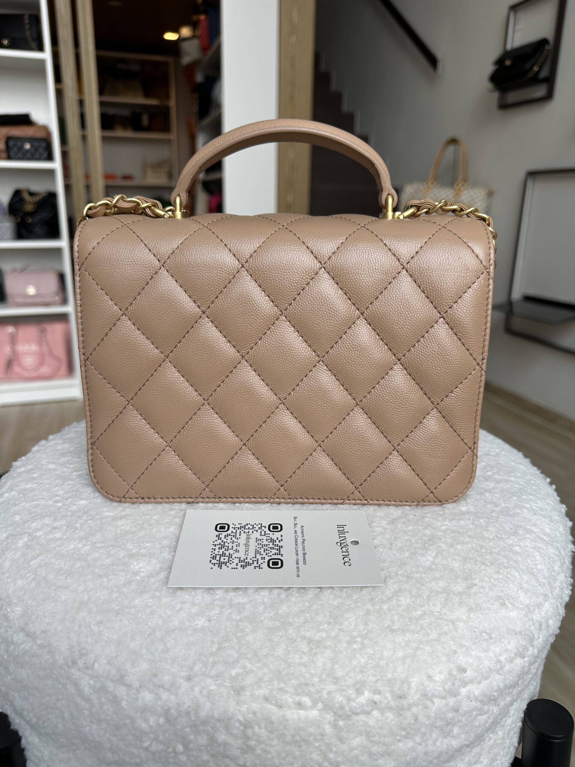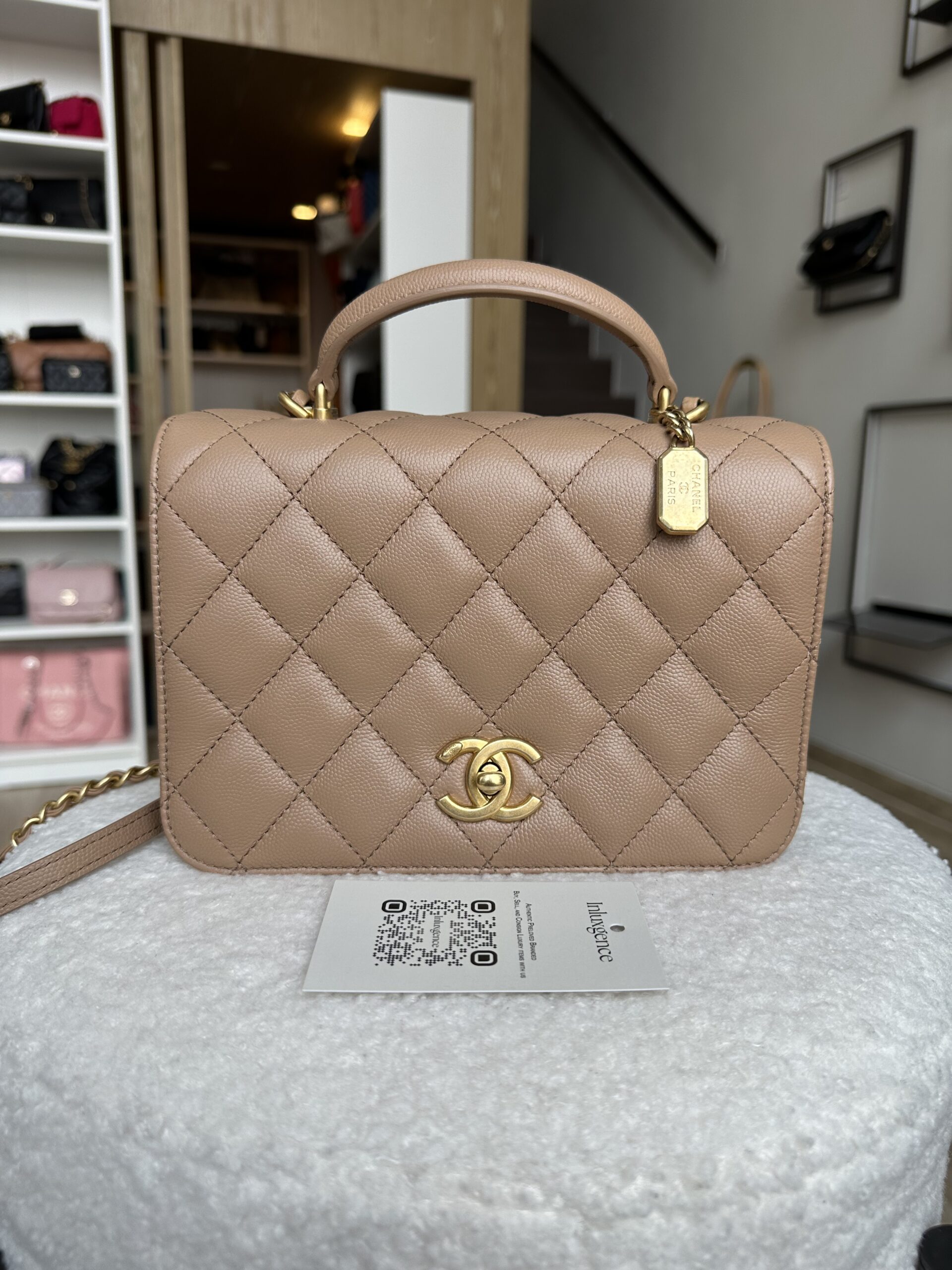 Chanel Top Handle Flap Beige Caviar GHW | ILG3392