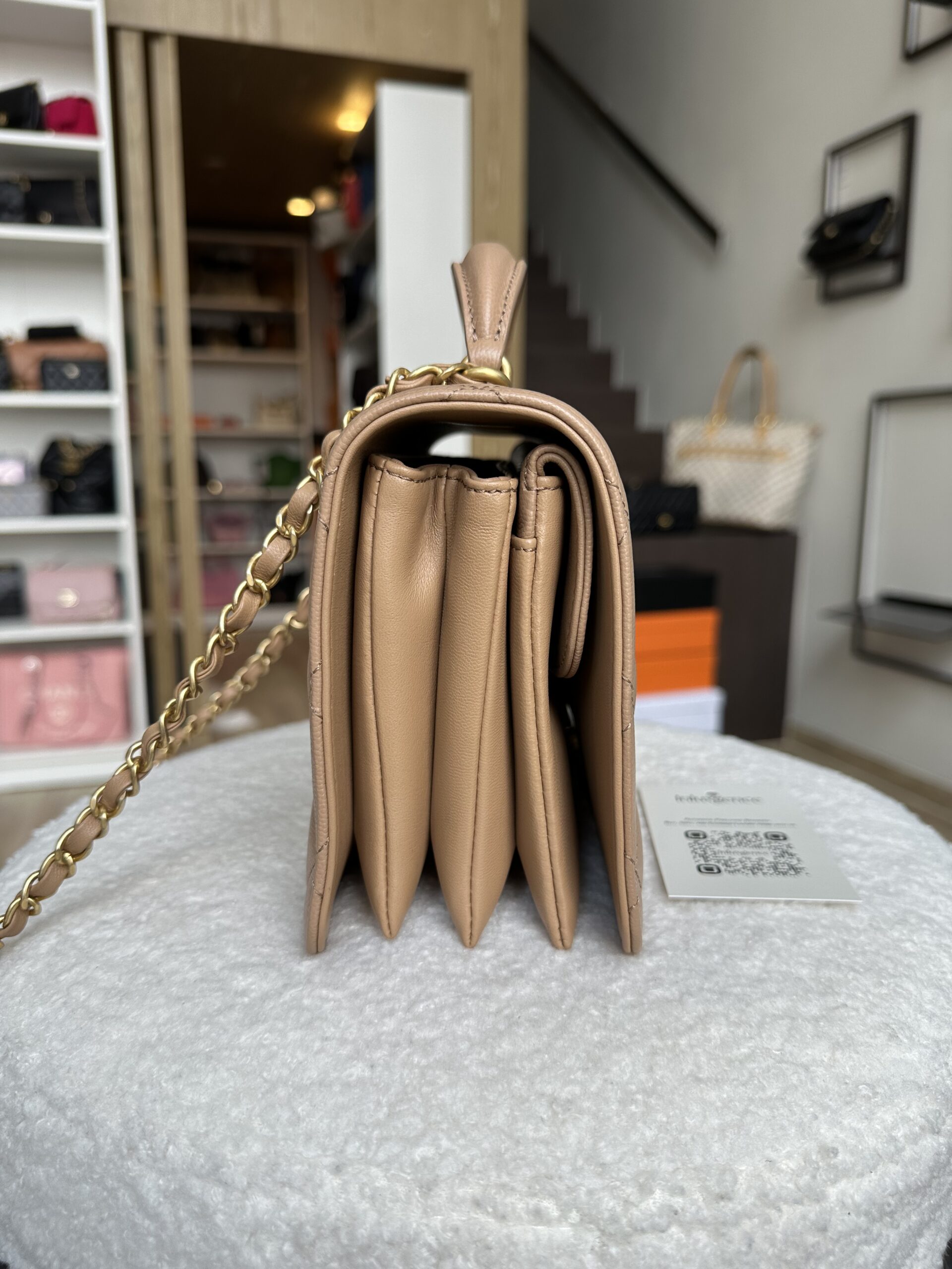 Love this pretty beige top handle flap ☺️ Nice color, multiple ways of carrying, decent capacity, gorgeous looking 🥳 For casual, for event, for dates! A feeling good piece for everyday too 😍