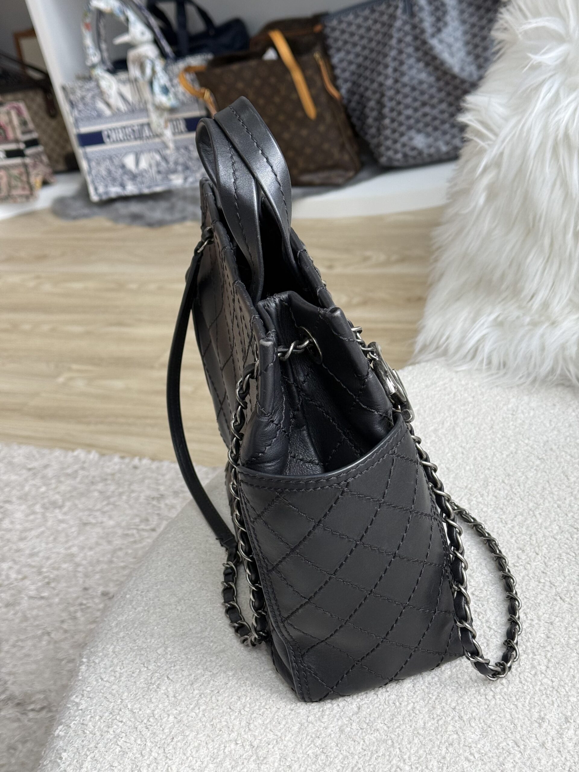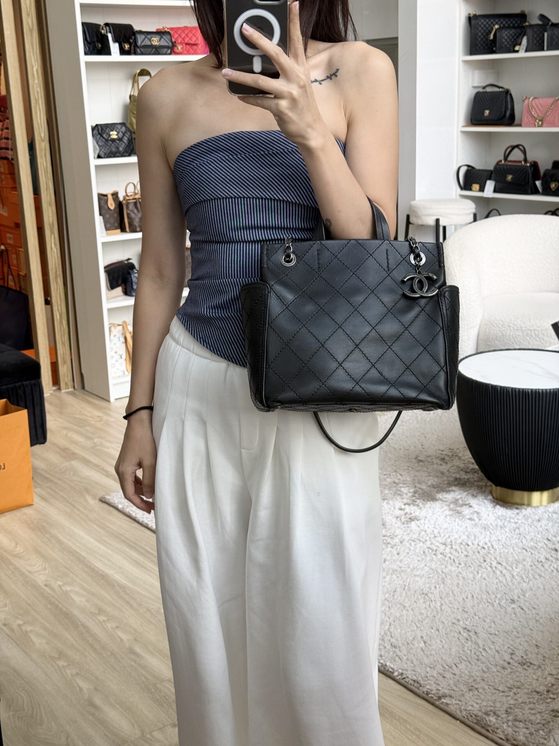 Chanel Top Handle Tote Black Calfskin RHW