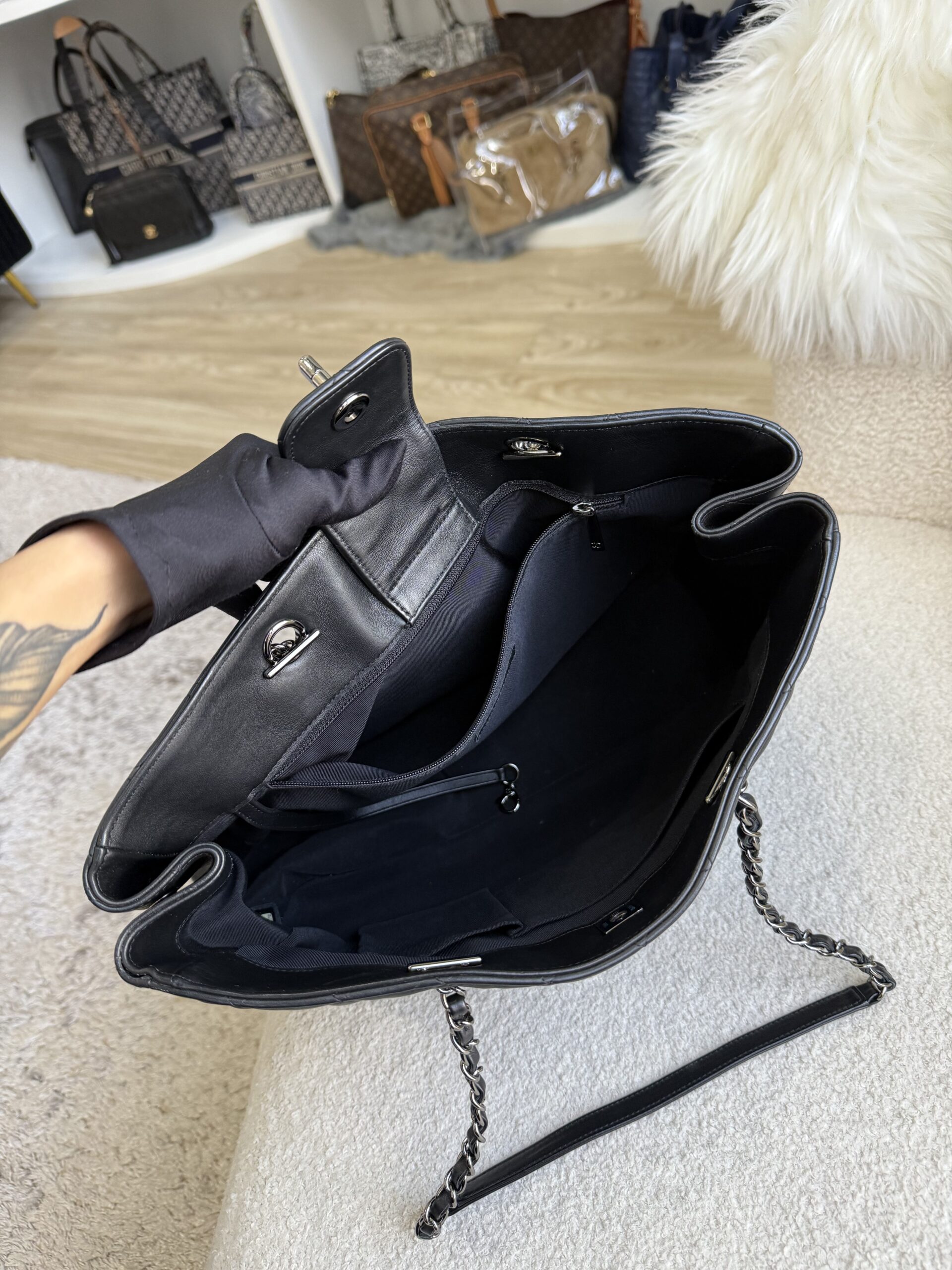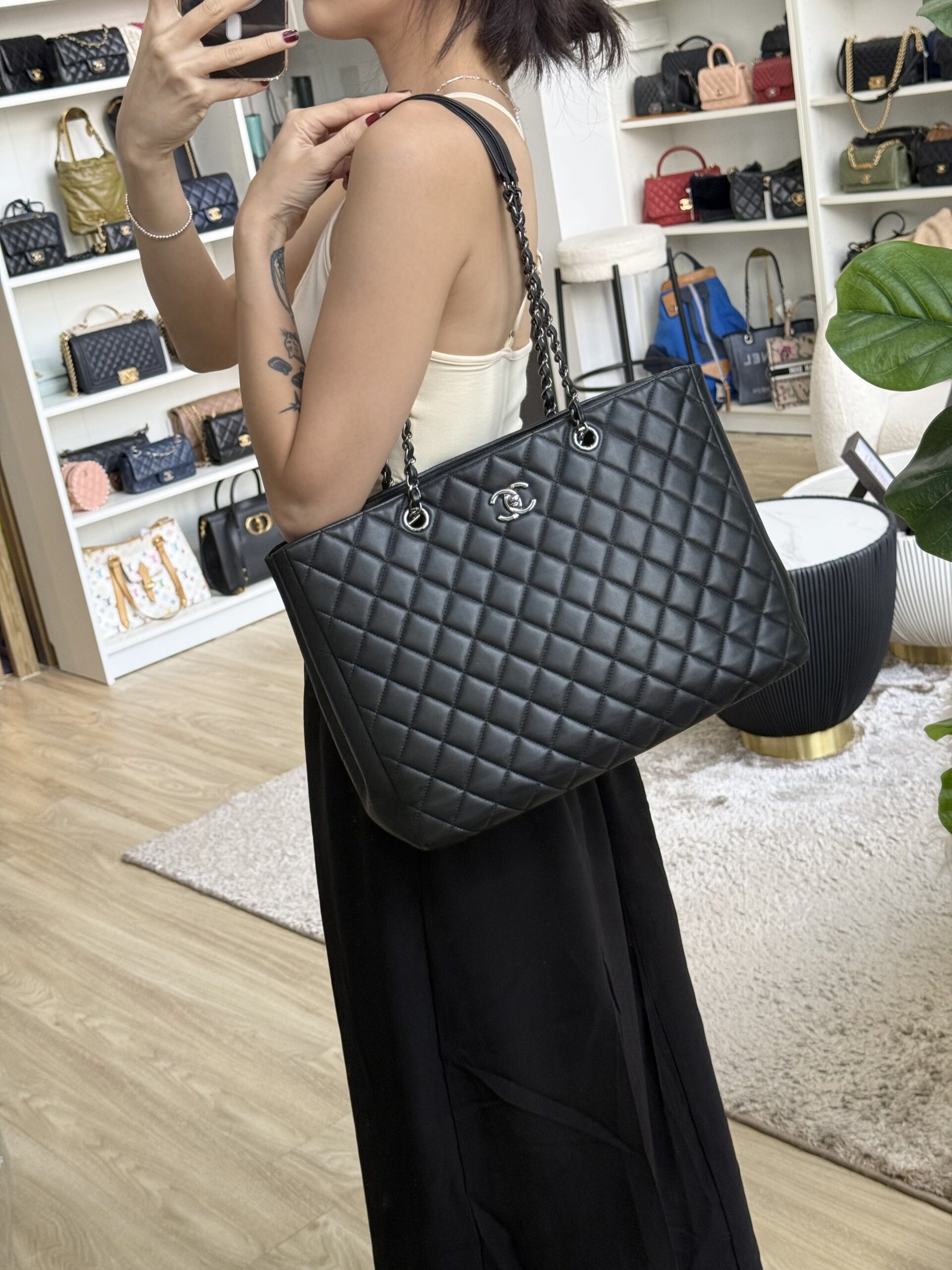 Chanel Turnlock Shoulder Tote Black Lambskin SHW