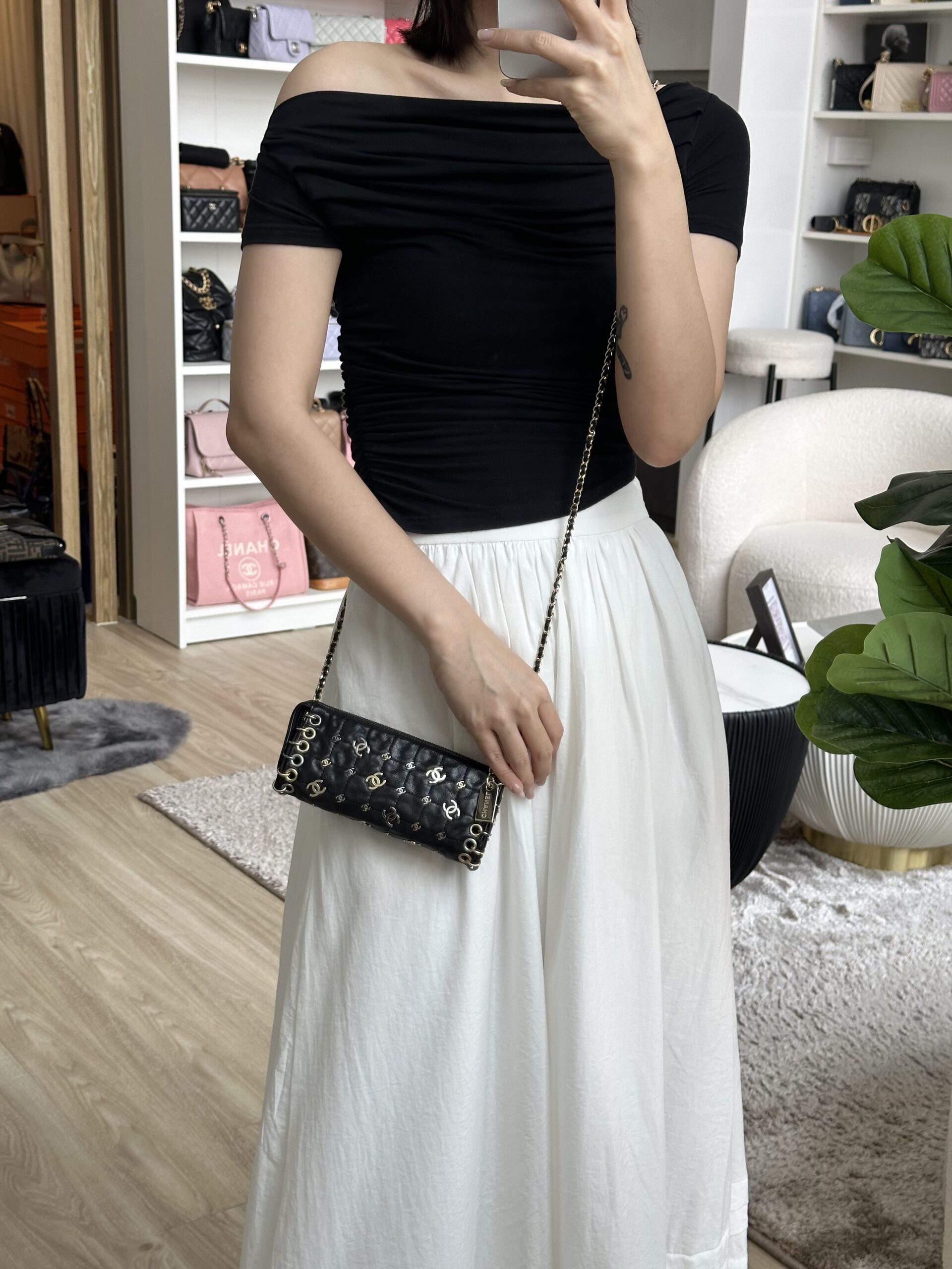 Chanel Vintage Limited Edition Mini Pouch on Chain Black Calfskin LGHW | ILG3397