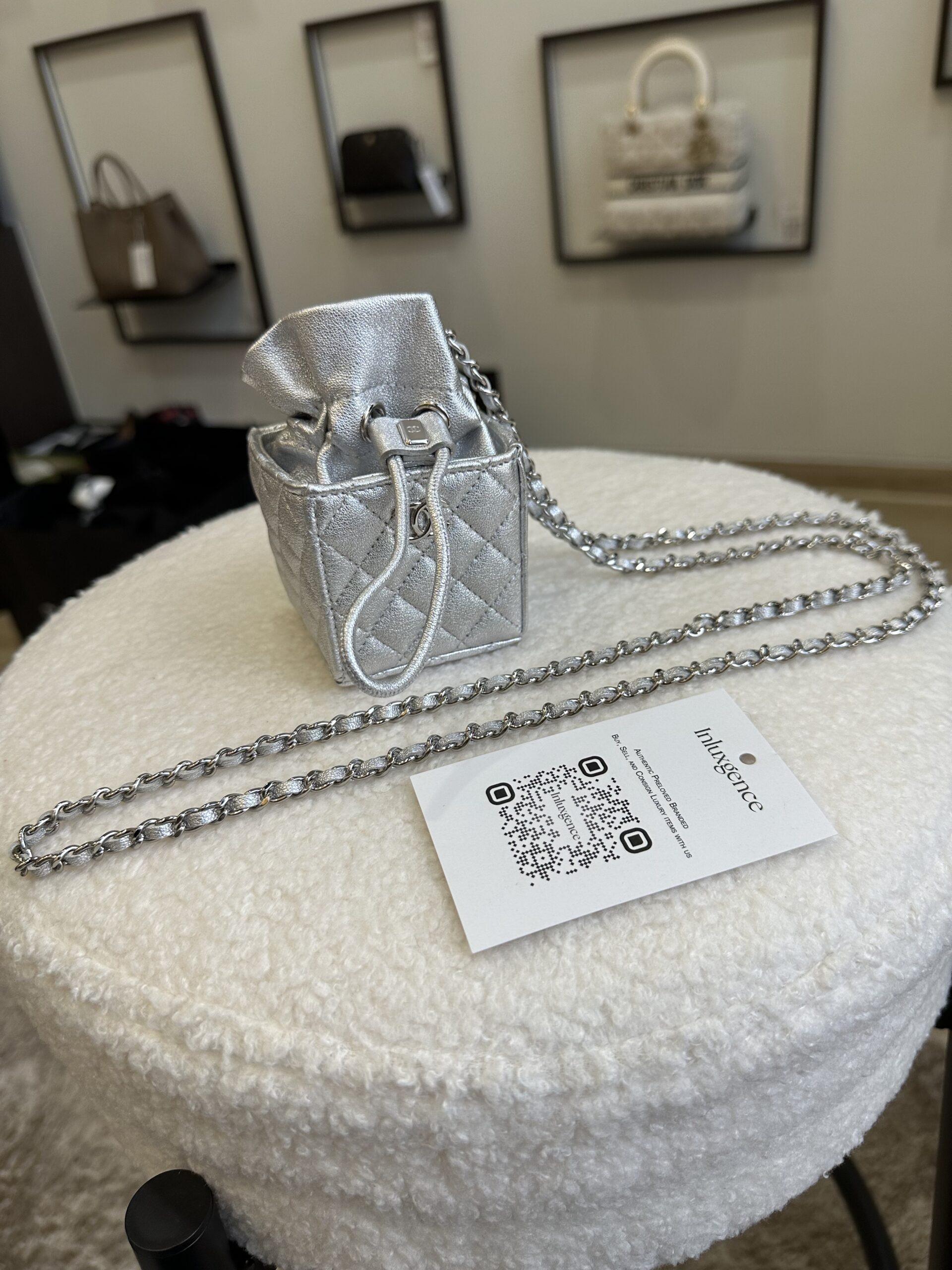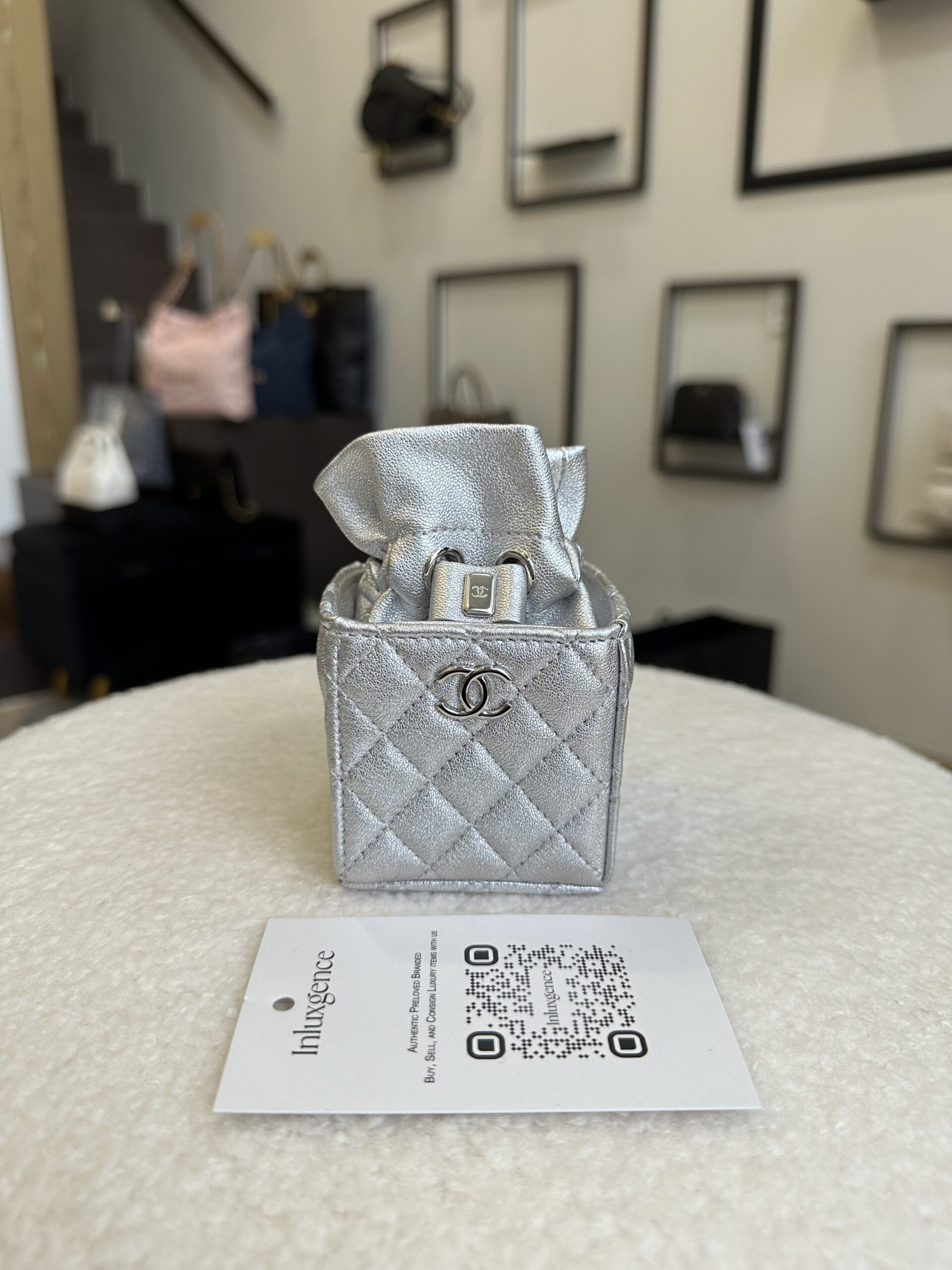 Chanel VIP Mini Metallic Silver Cube Chain Bag SHW