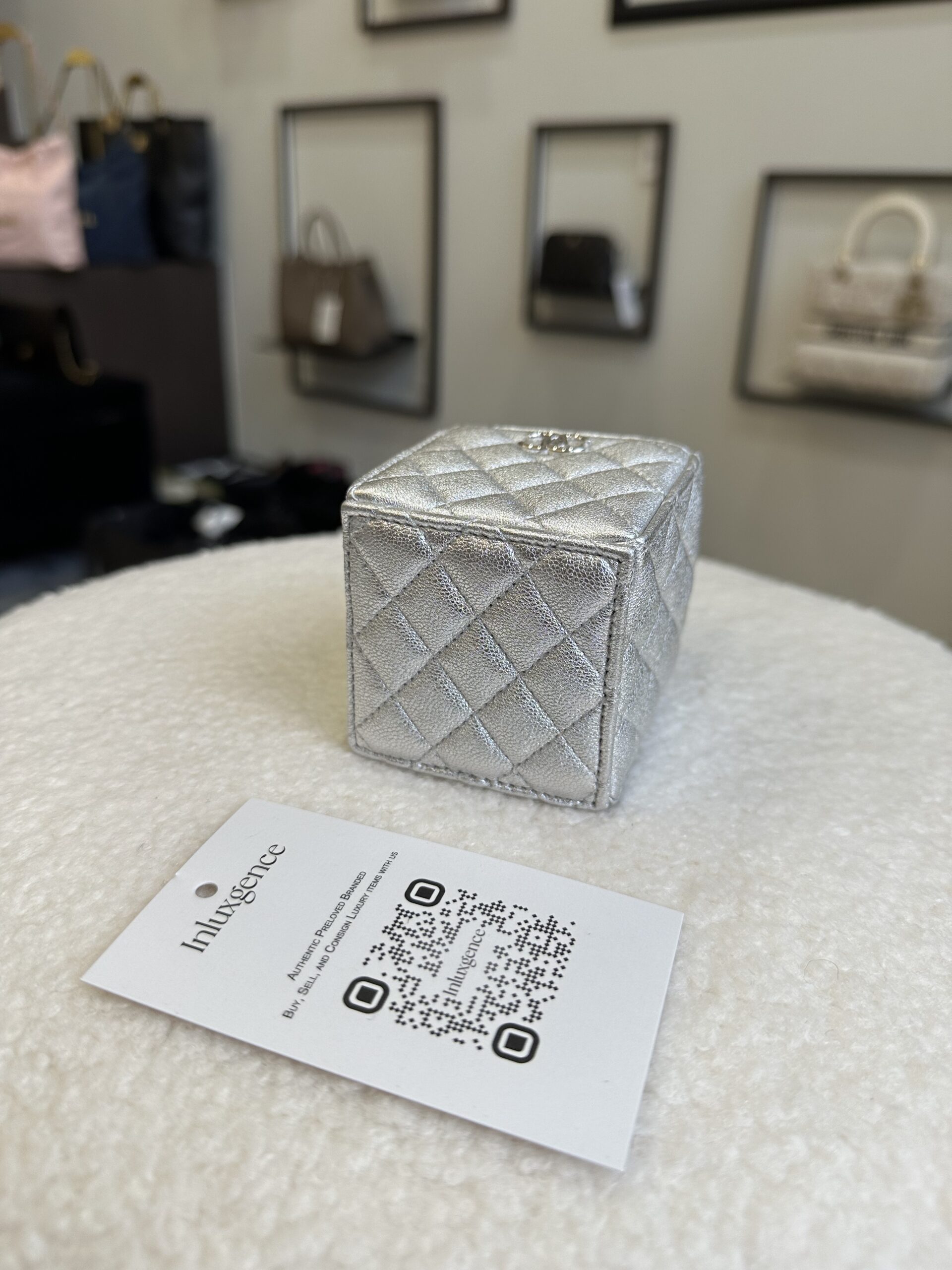 Chanel VIP Mini Metallic Silver Cube Chain Bag SHW | ILG2835