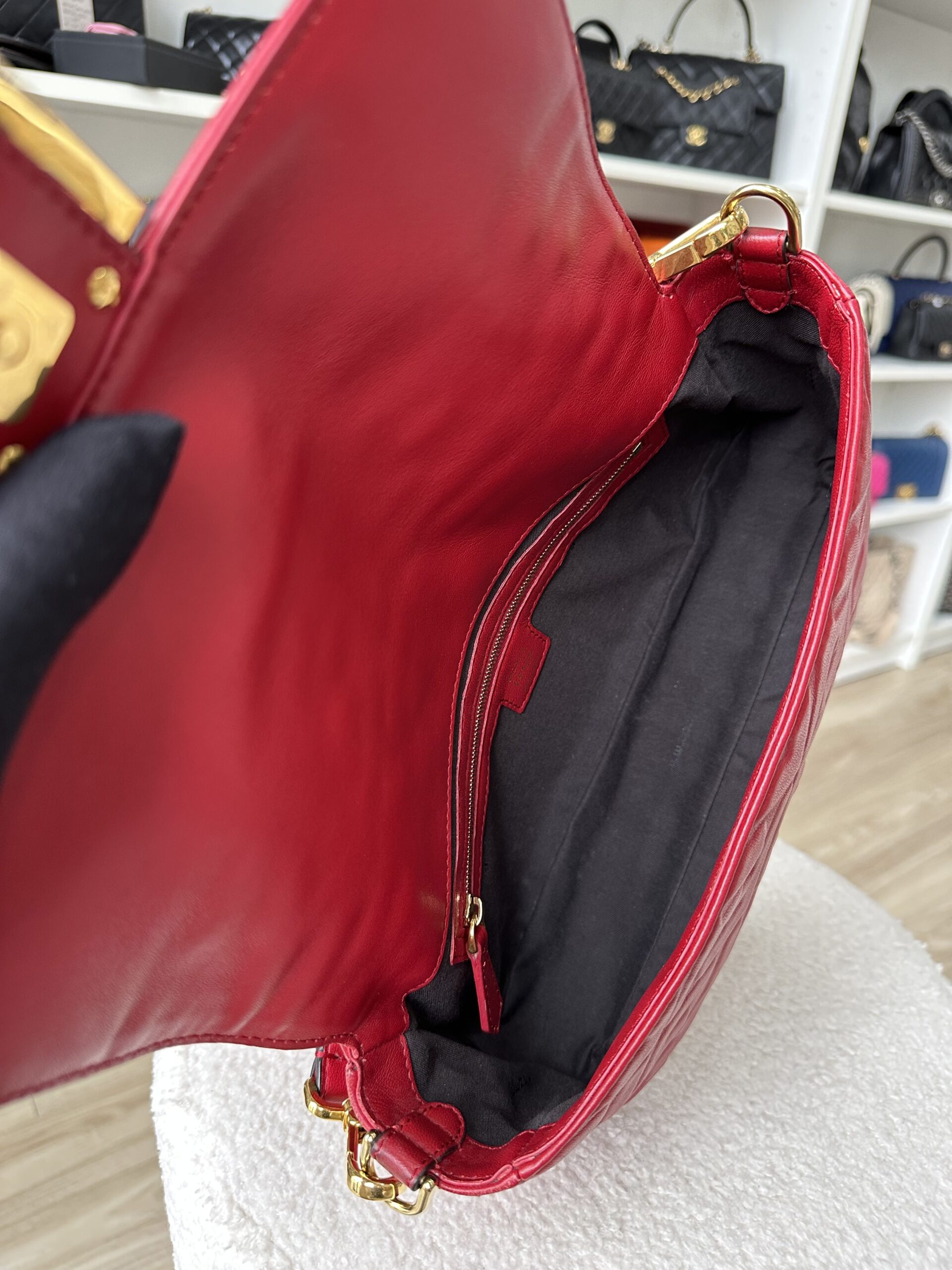 Fendi Baguette 2way FF Embossed Red Lambskin GHW | ILG4468
