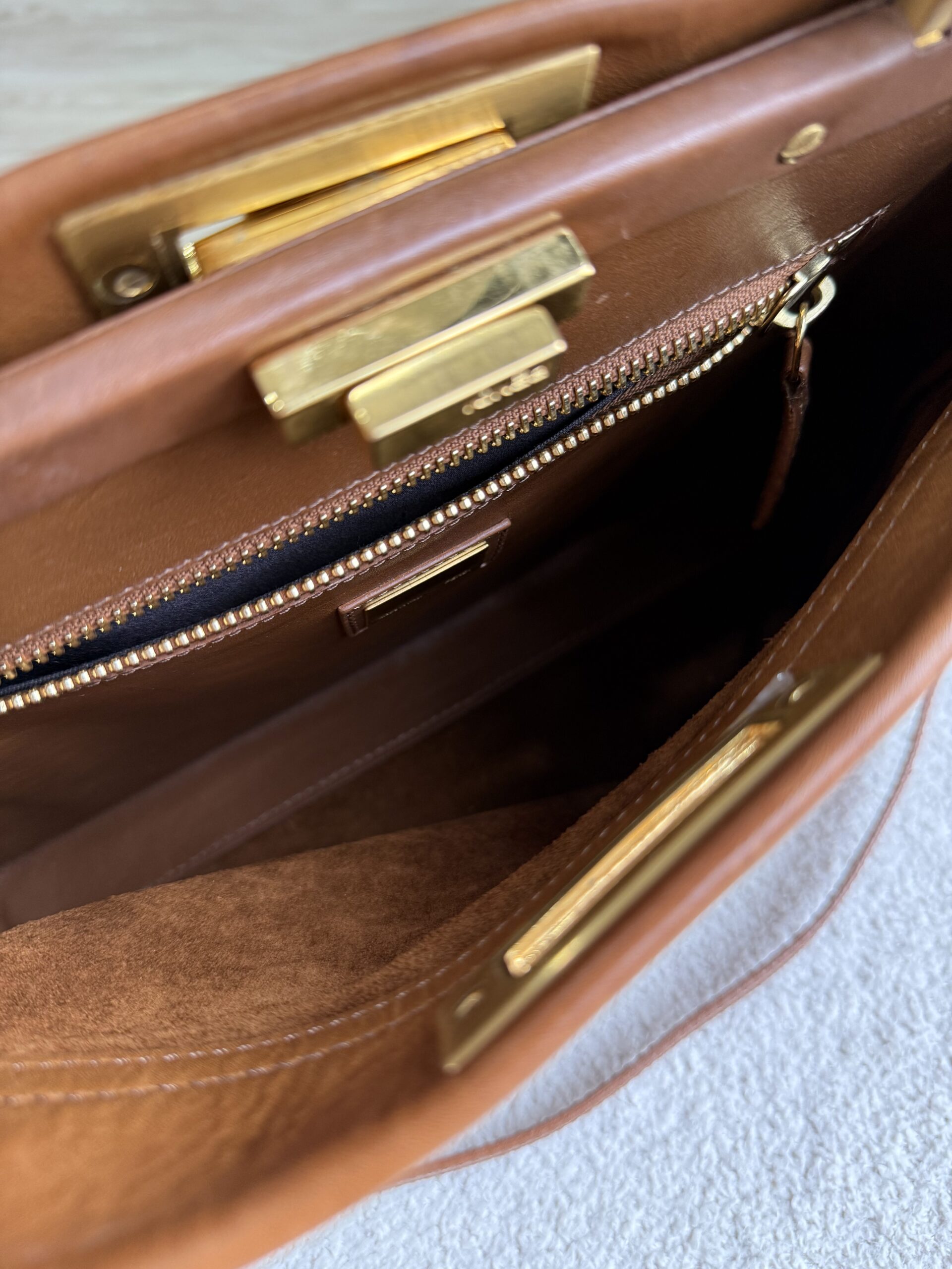 Fendi Peekaboo Medium Top Handle Camel GHW