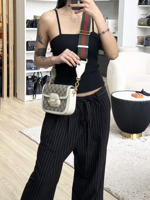 Gucci Mini Horsebit 1955 White Supreme Canvas GHW
