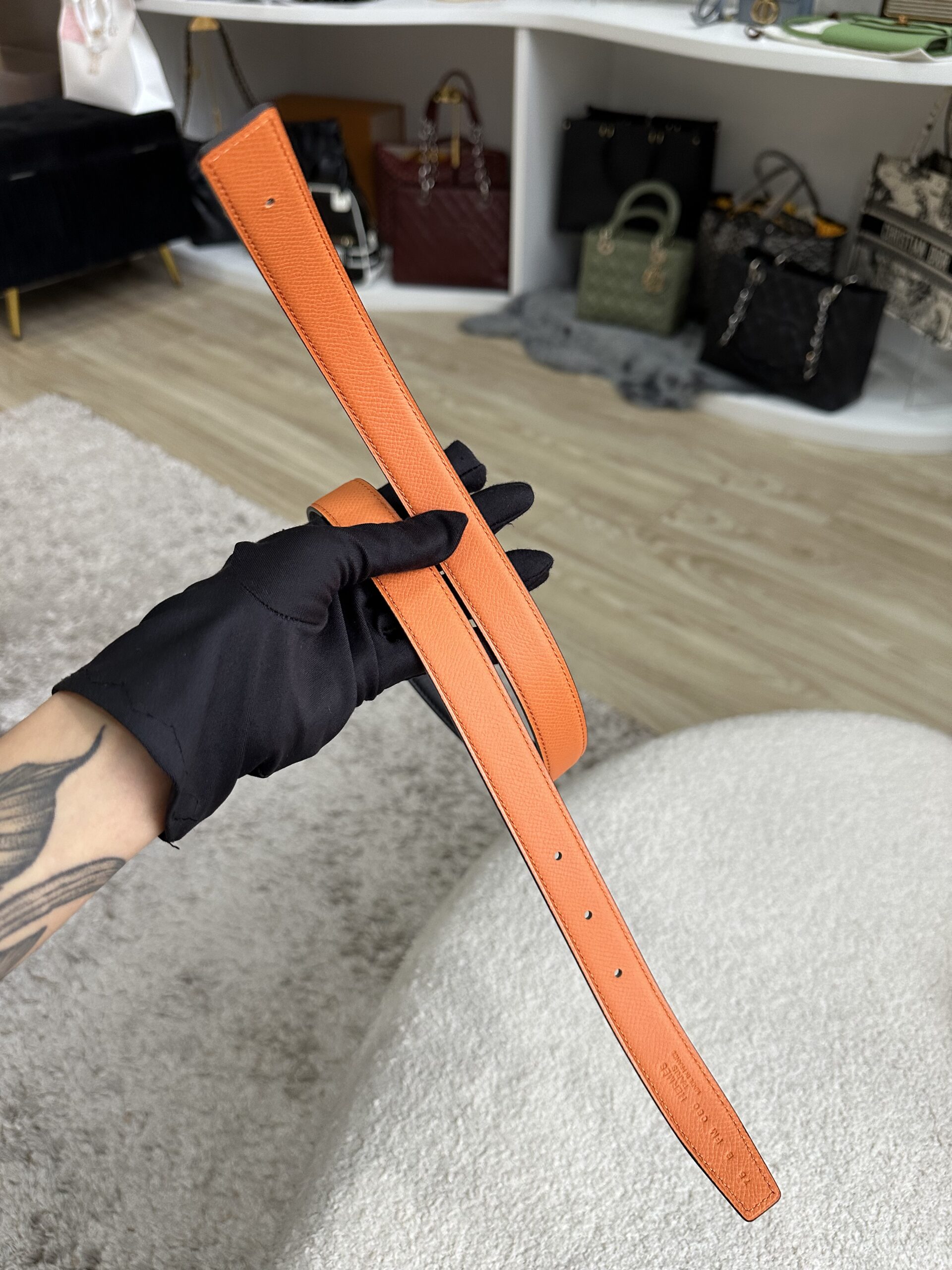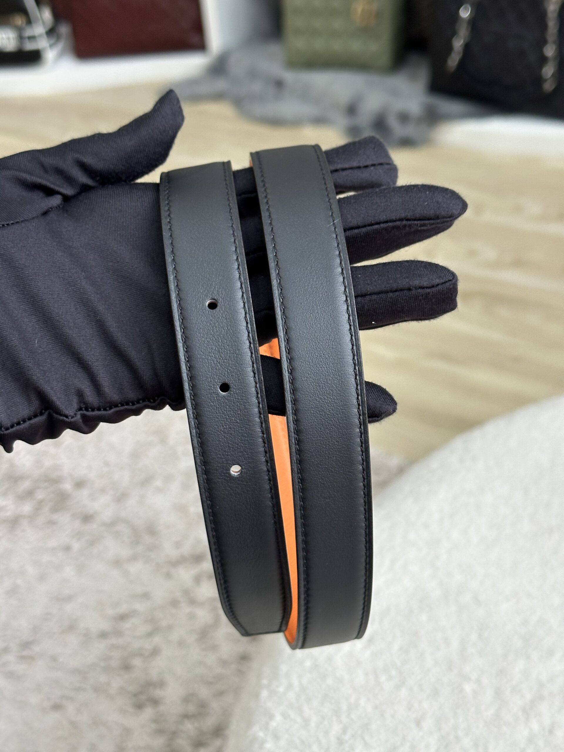 Hermes Mini H Belt Buckle 24mm Reversible Black Swift/Orange Epsom Size 75