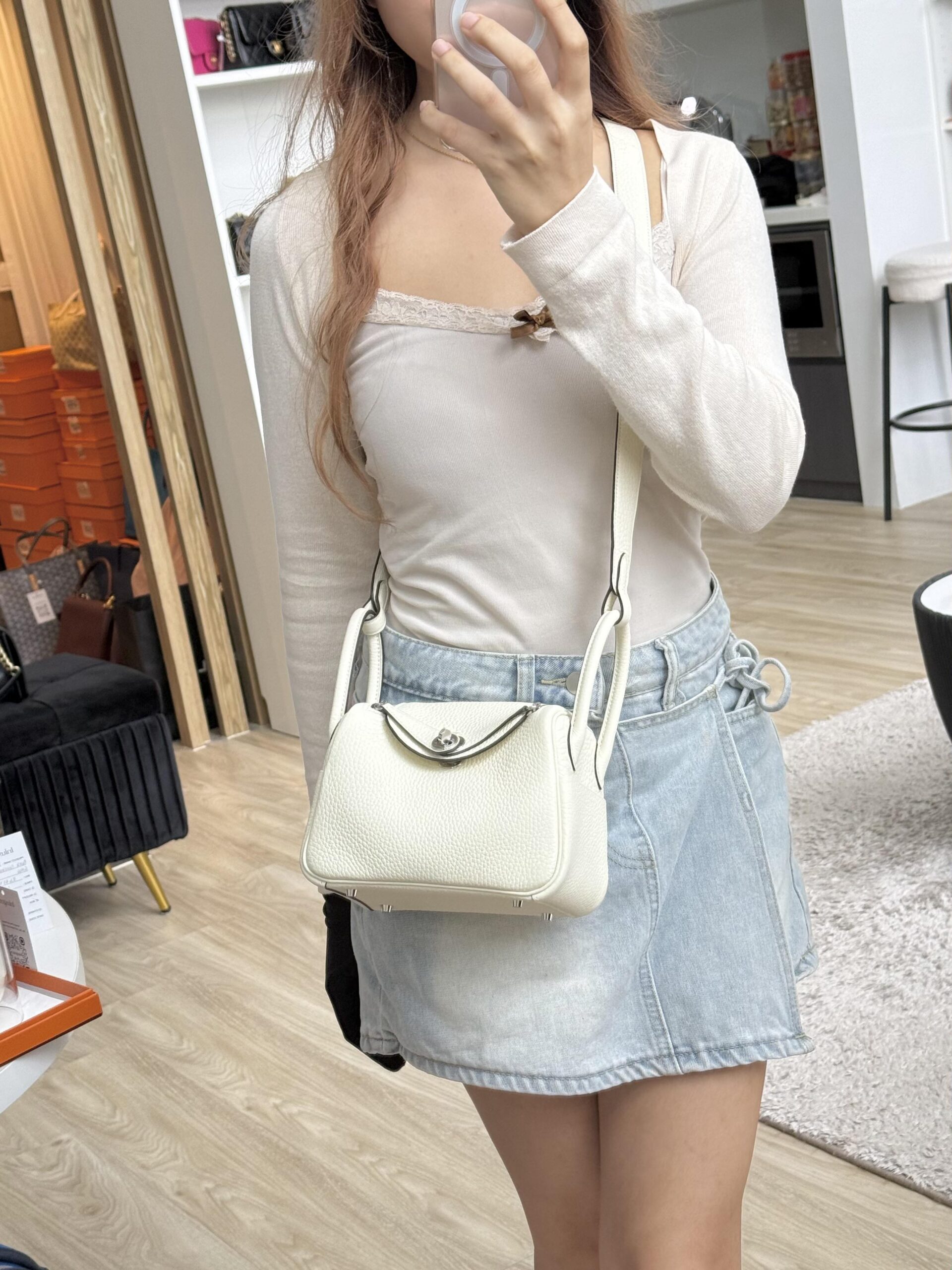Hermes Mini Lindy II Cream Clemence PHW | ILG4984