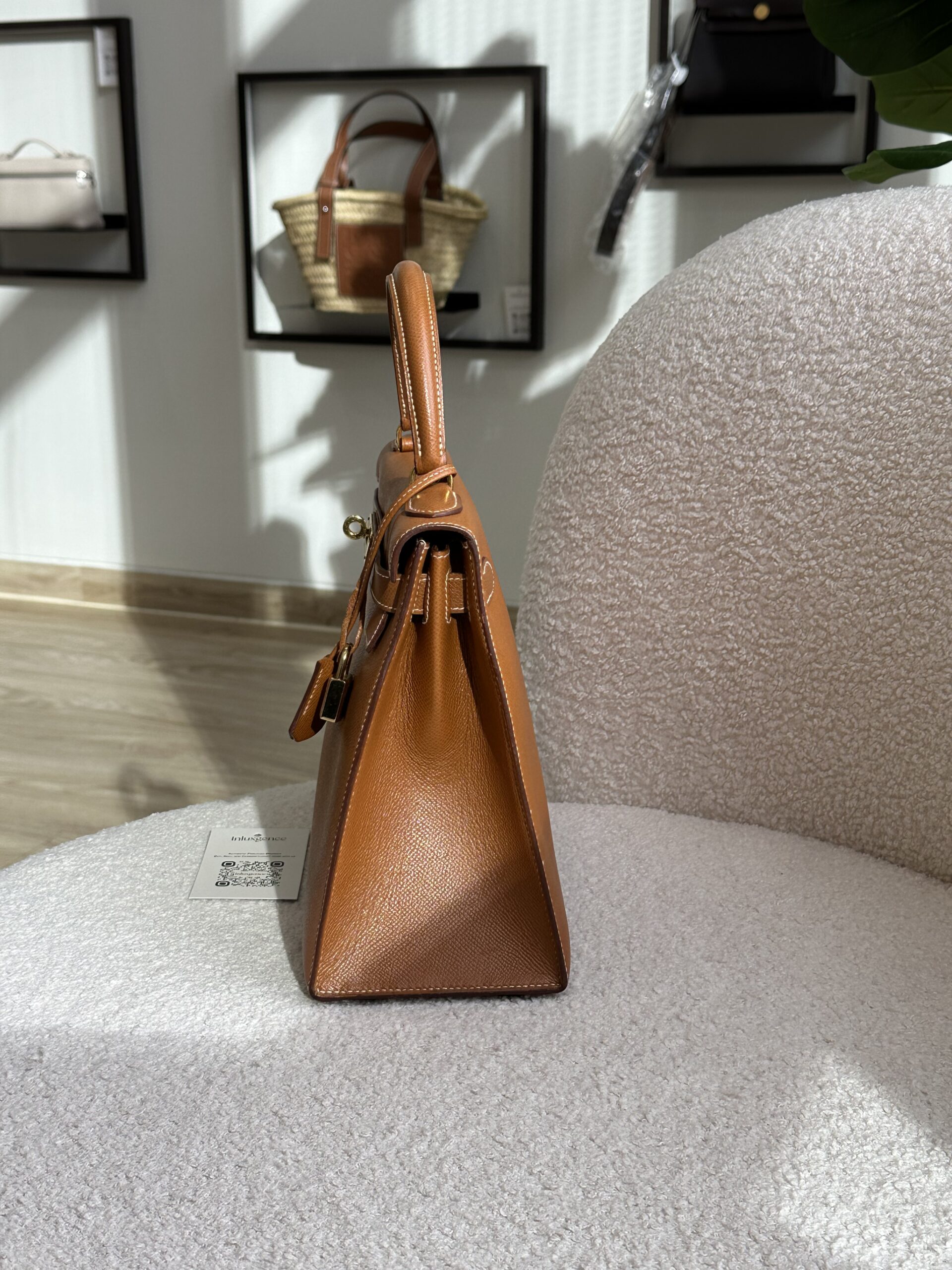 Hermes Vintage Kelly 28 Gold Courchevel Leather GHW