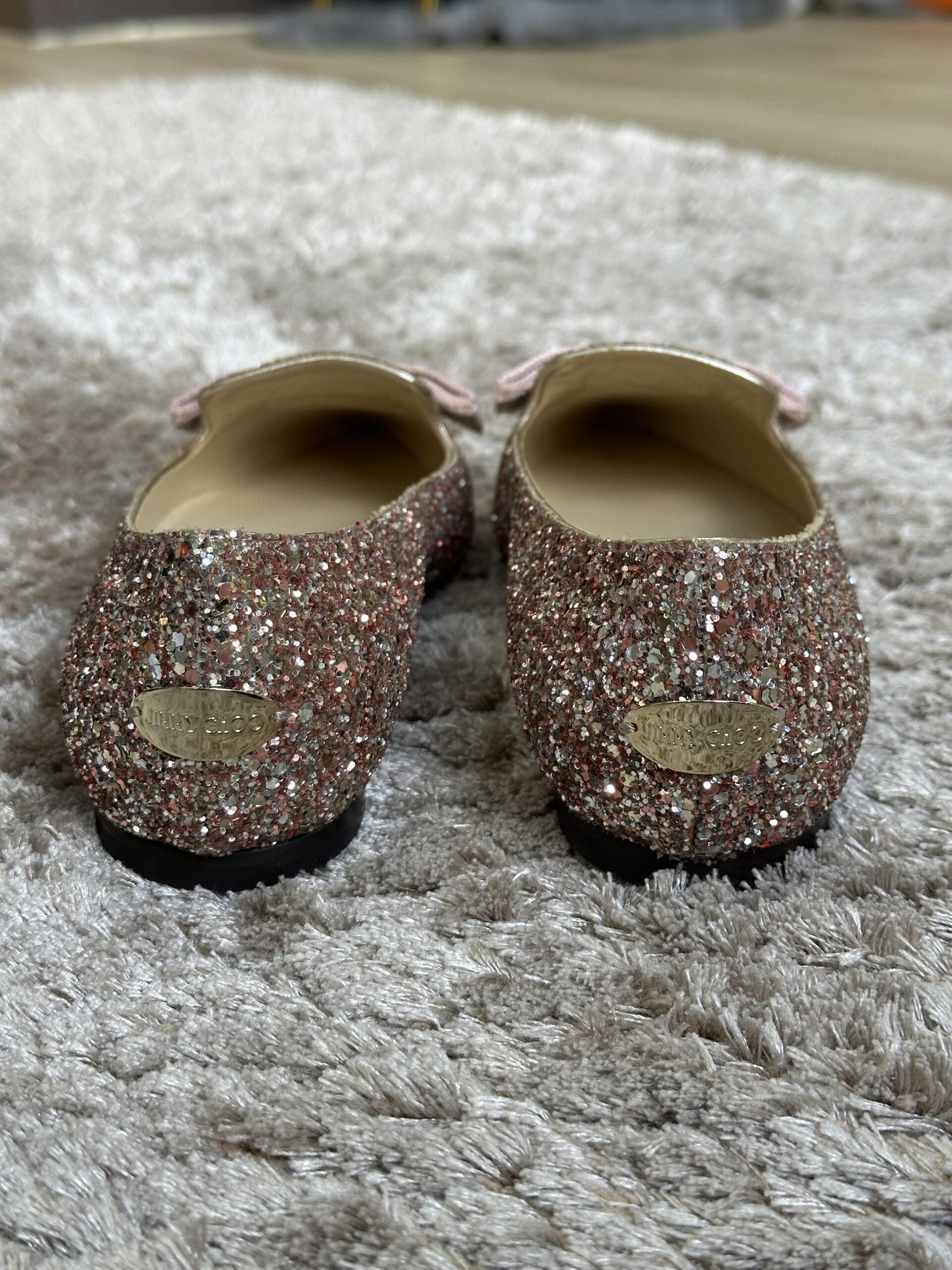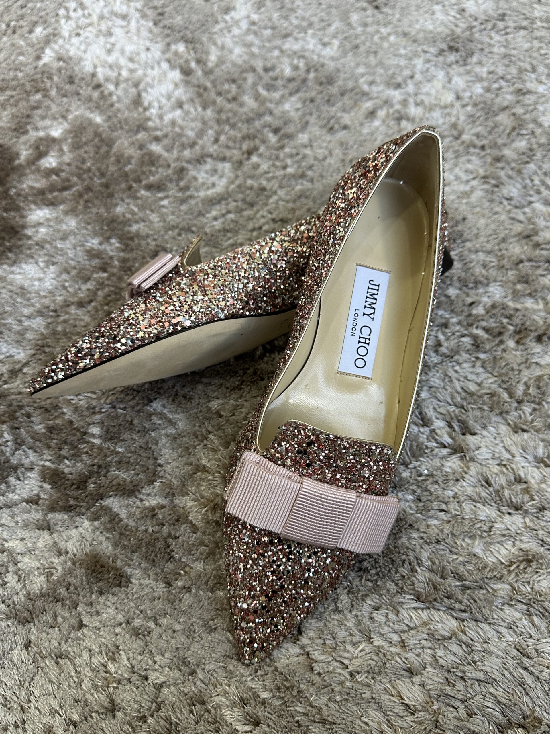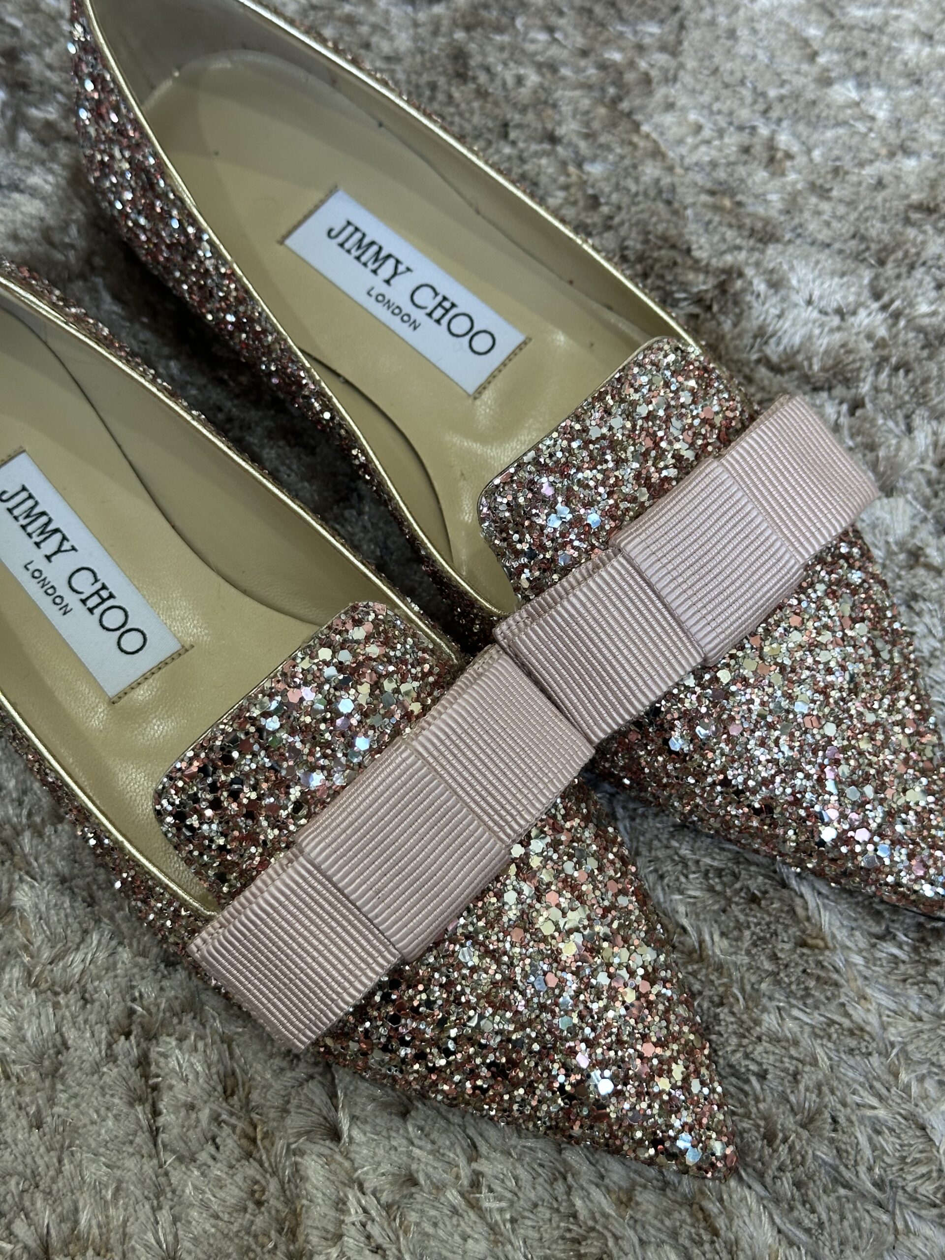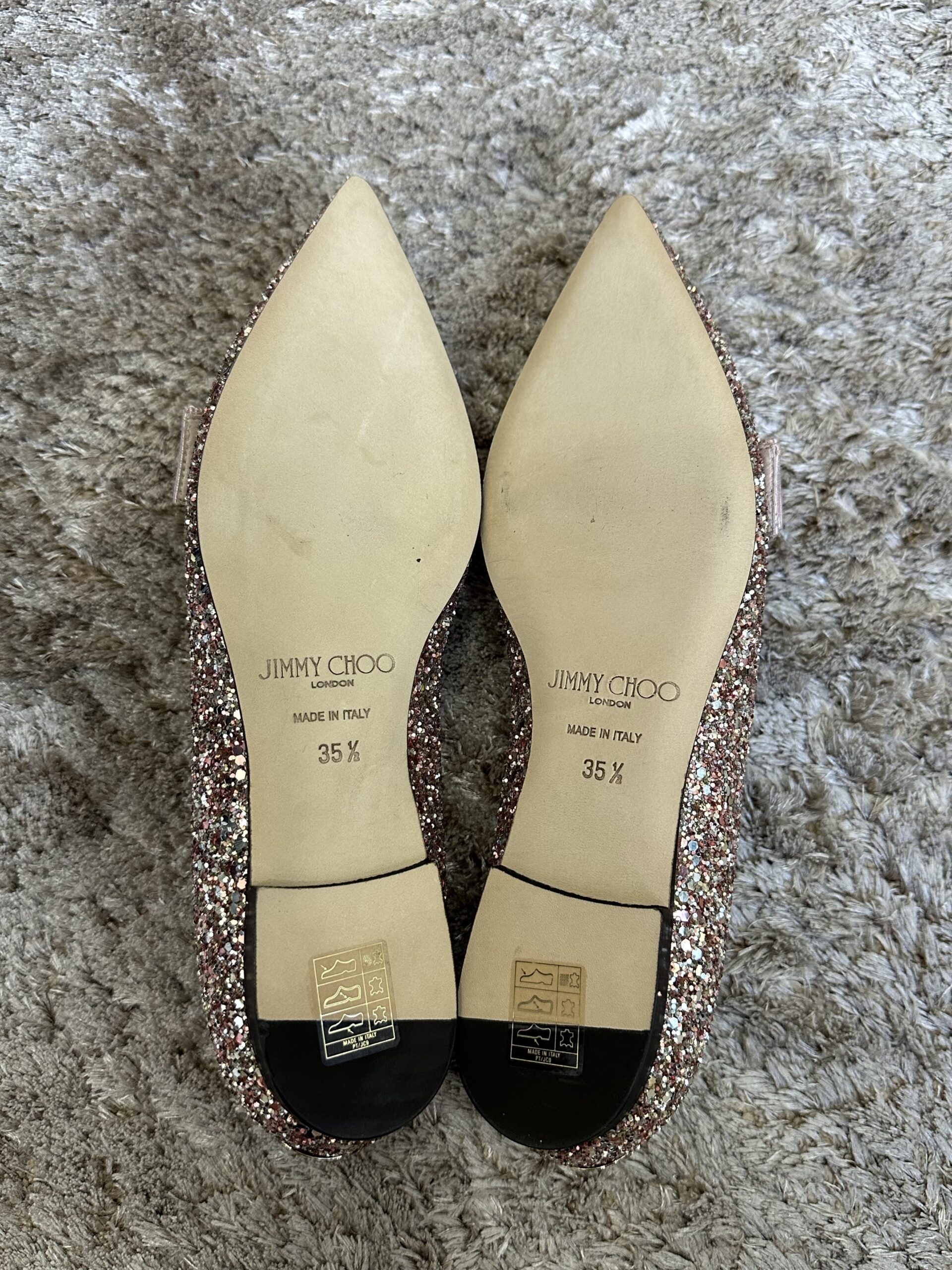 Jimmy Choo Pink Ribbon Glitter Flats Size 35.5 Sharp Toe