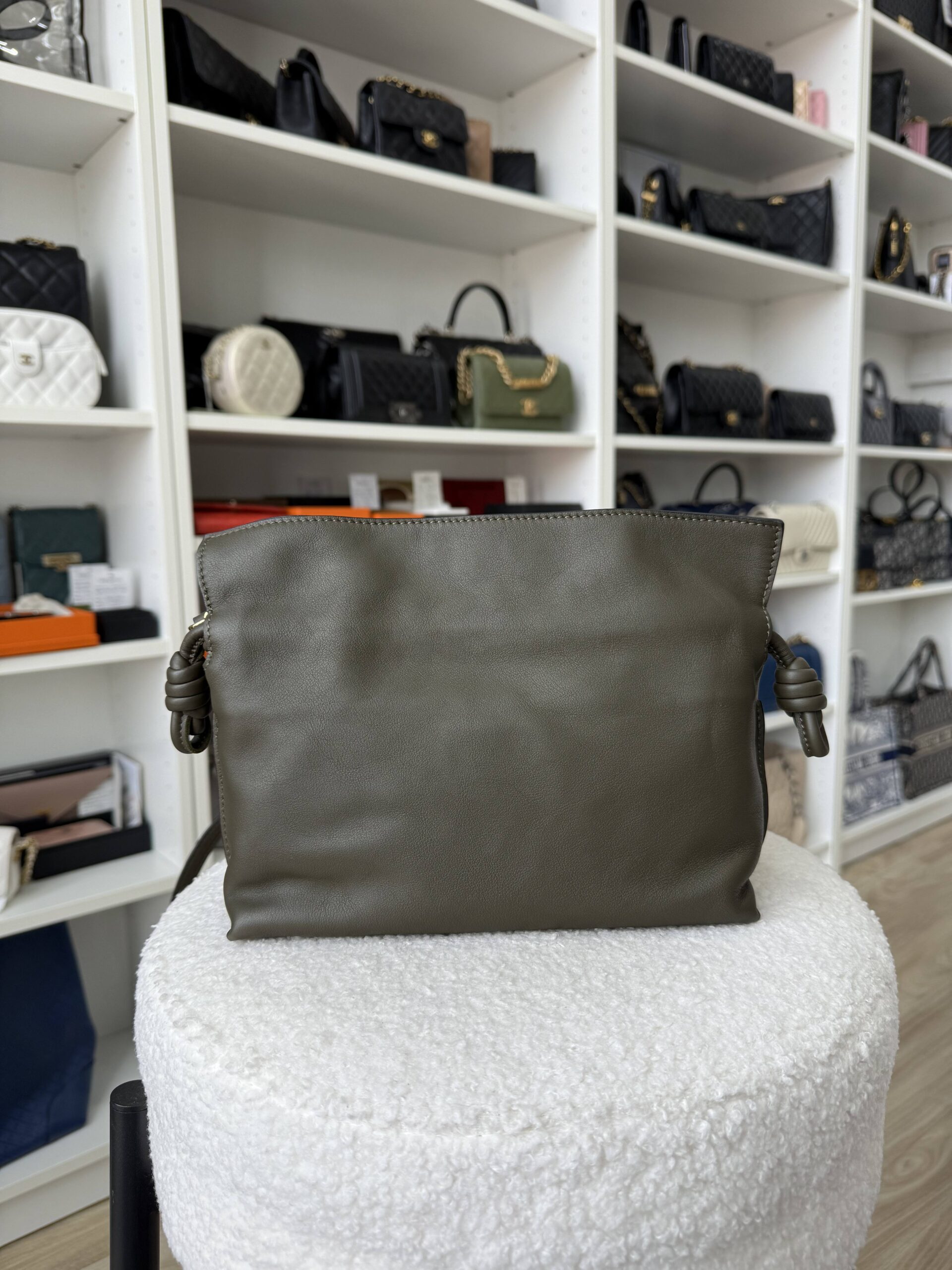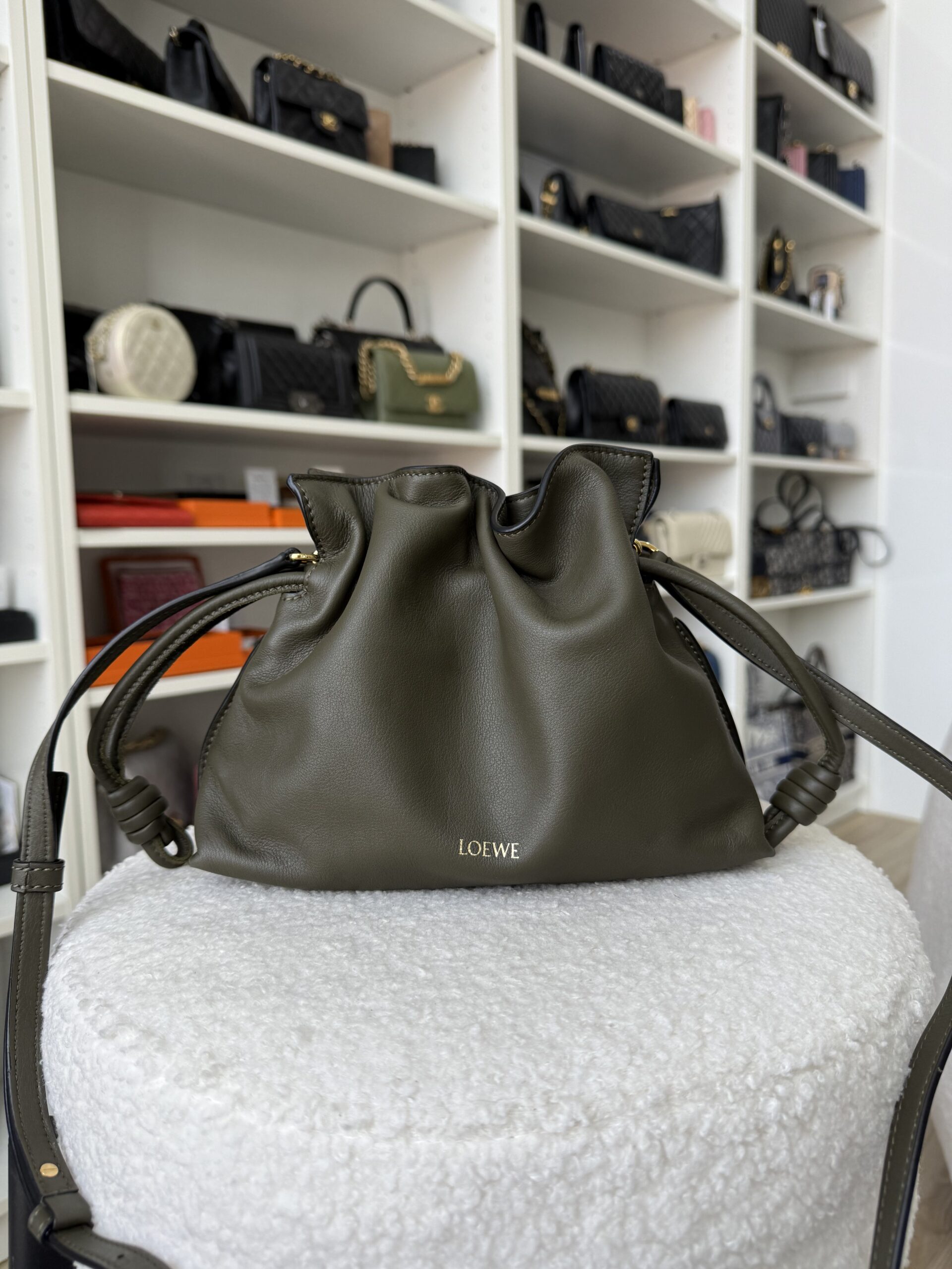 Loewe Mini Flamenco 23cm Clutch/Shoulder Bag Green Nappa Calfskin GHW | ILG4370