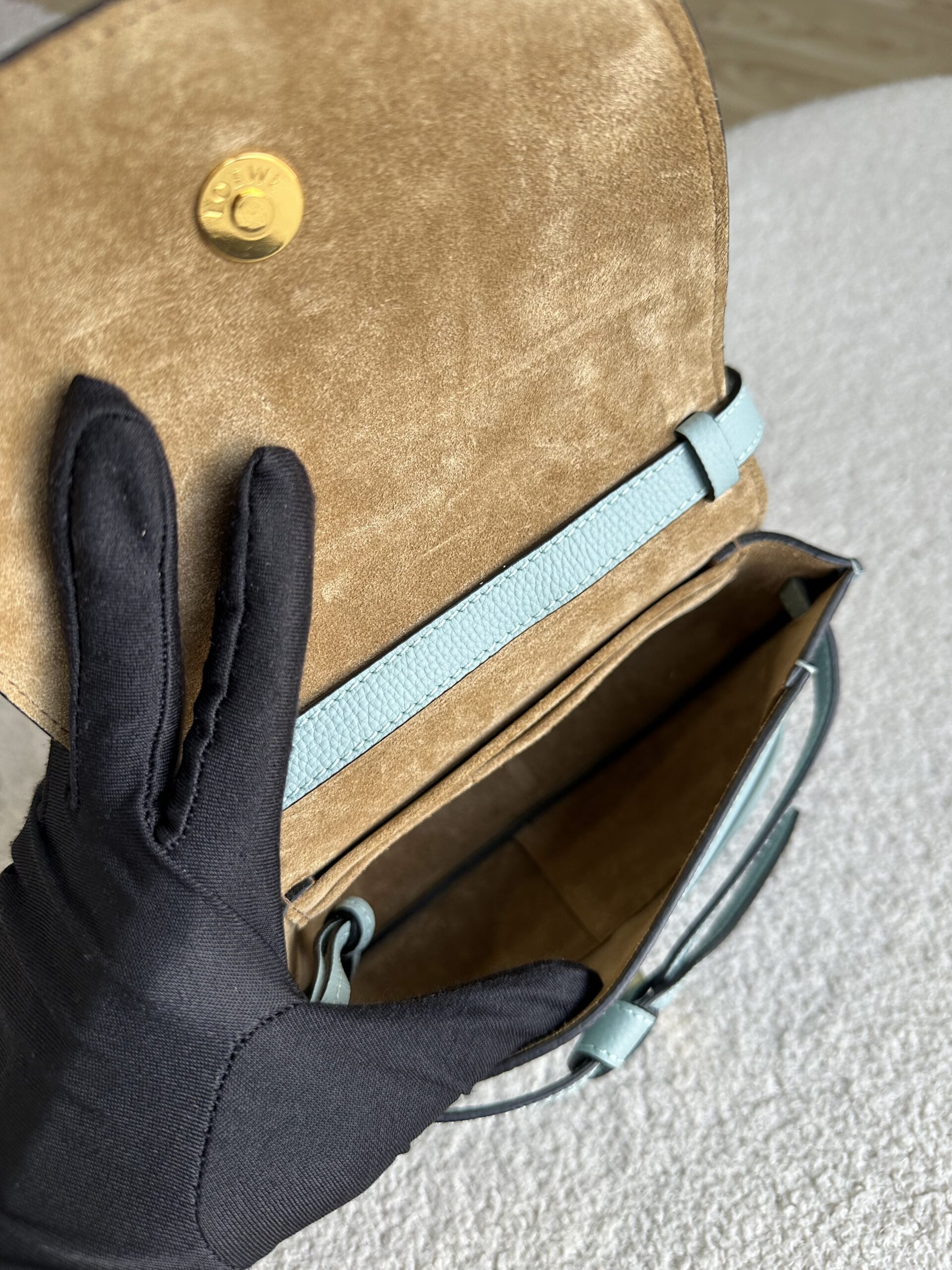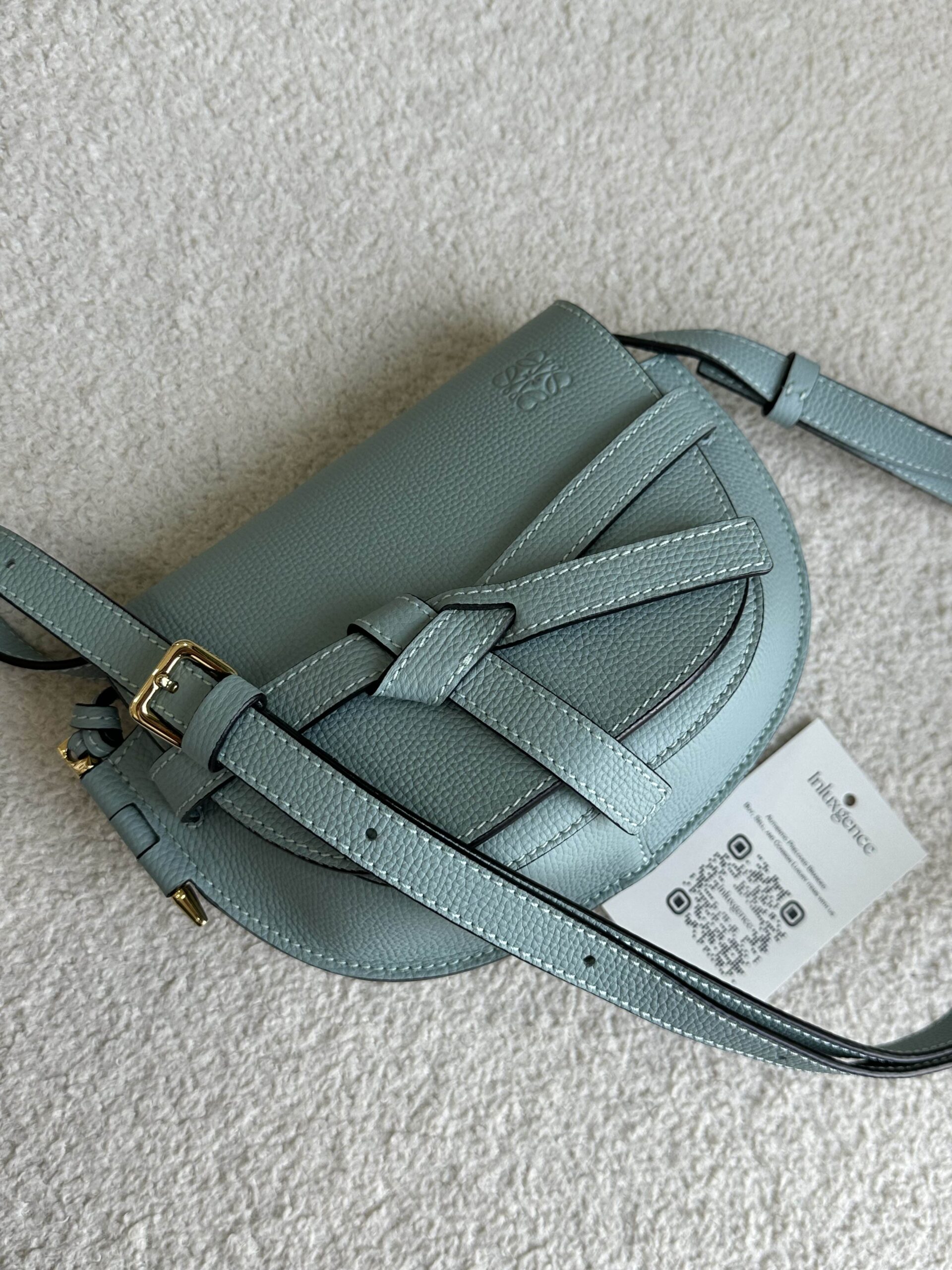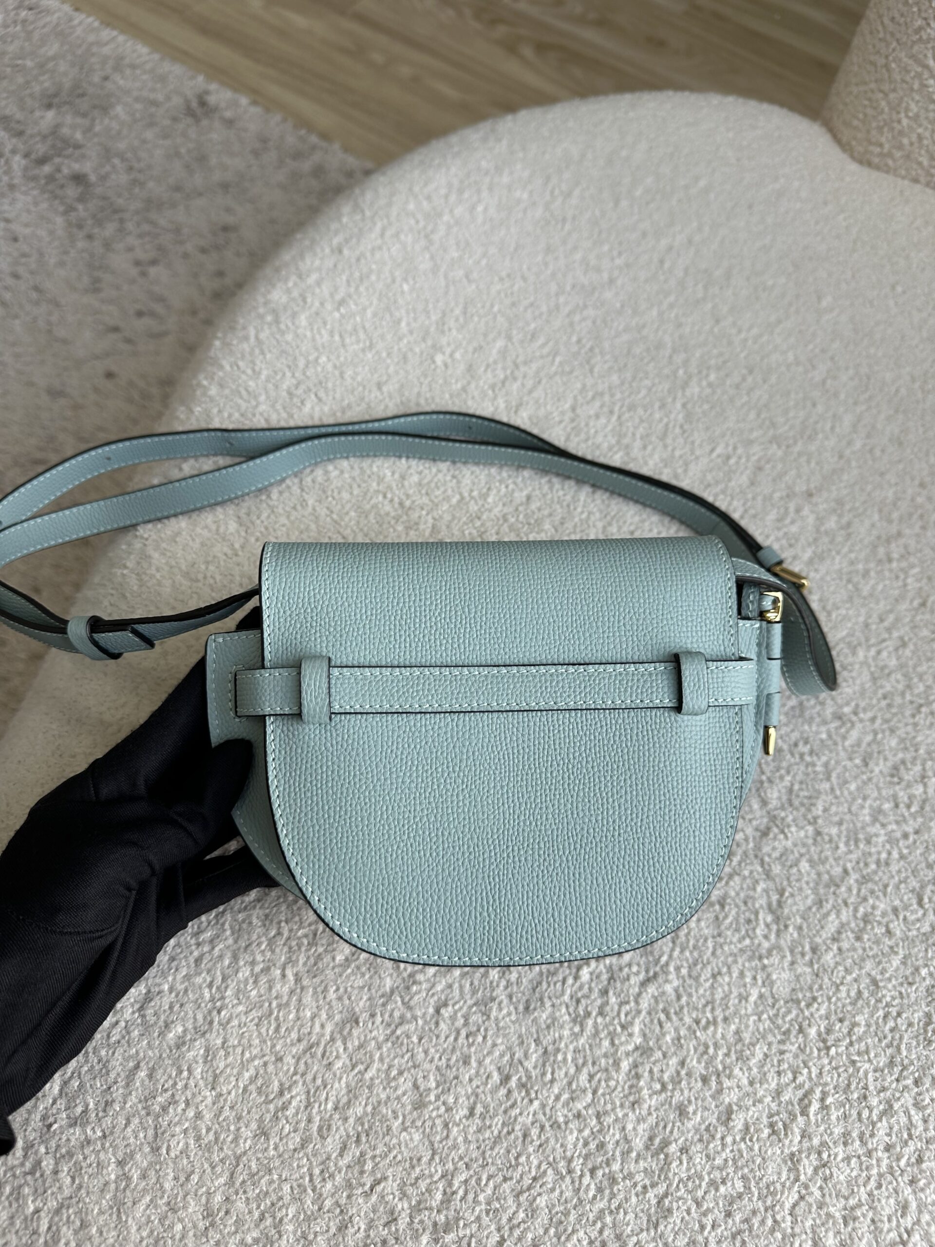 Loewe Mini Gate Dual Crossbody Bag Aqua Blue Pebbled Leather GHW