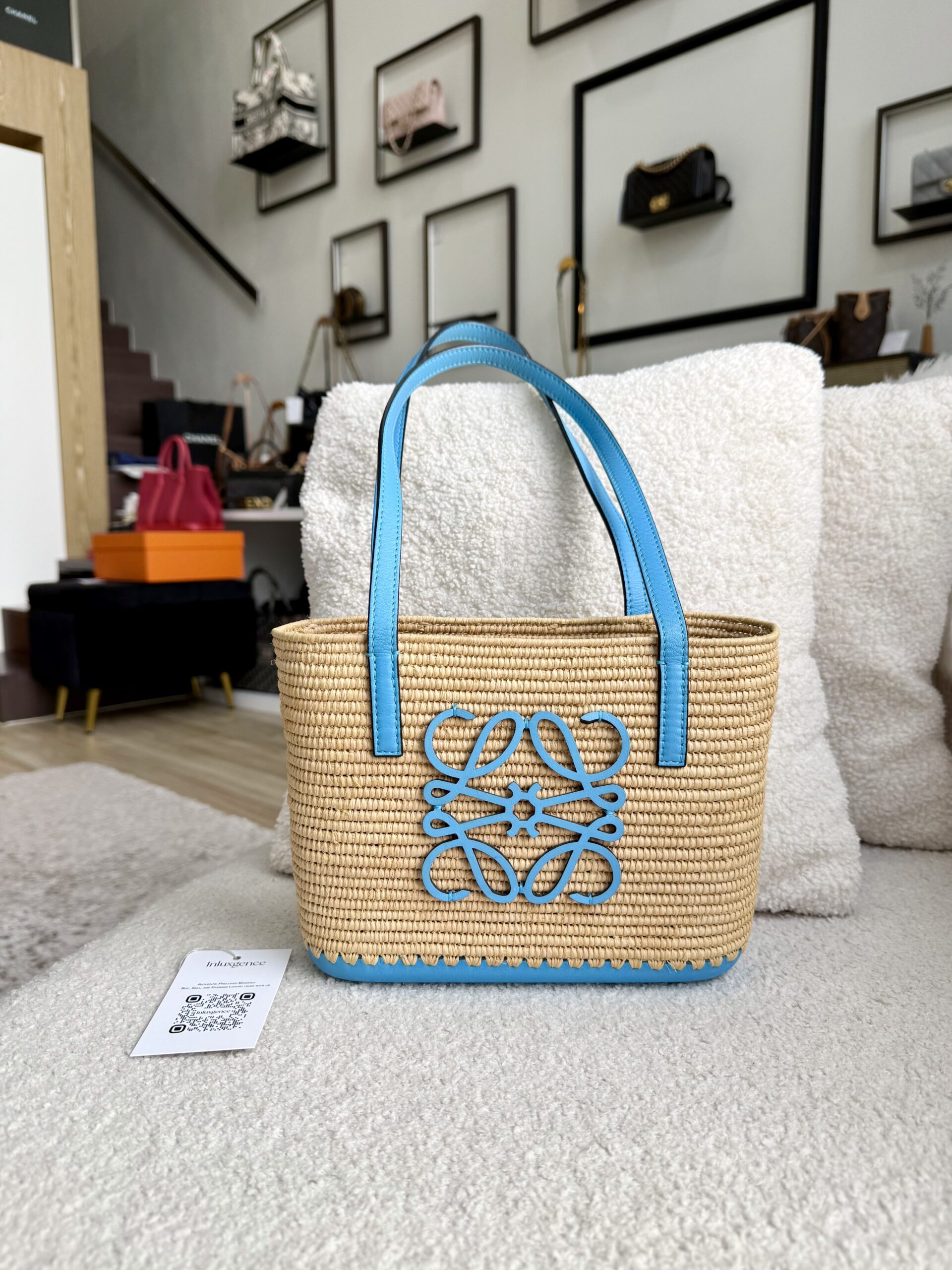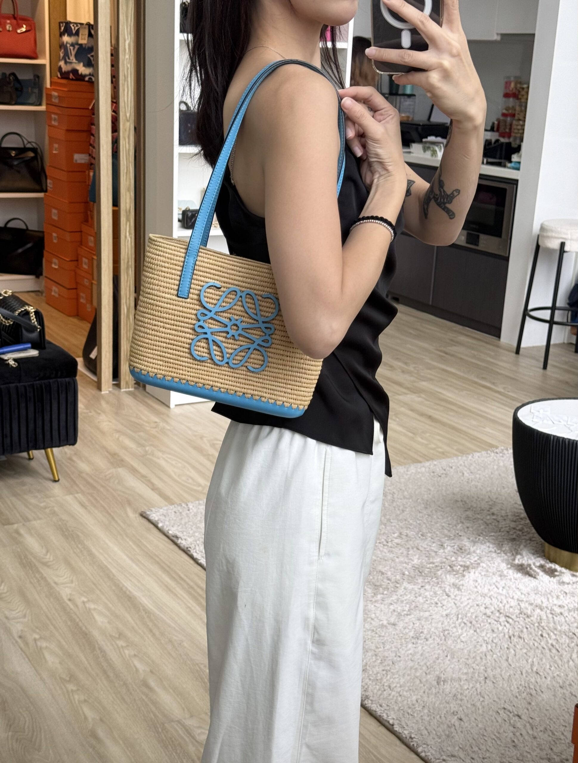 Loewe Mini Tote Topaz Blue Raffia | ILG5115