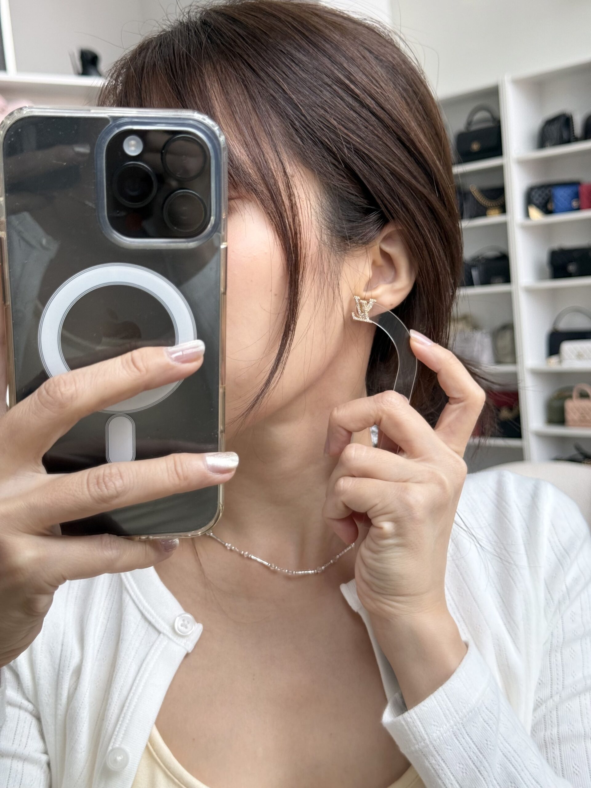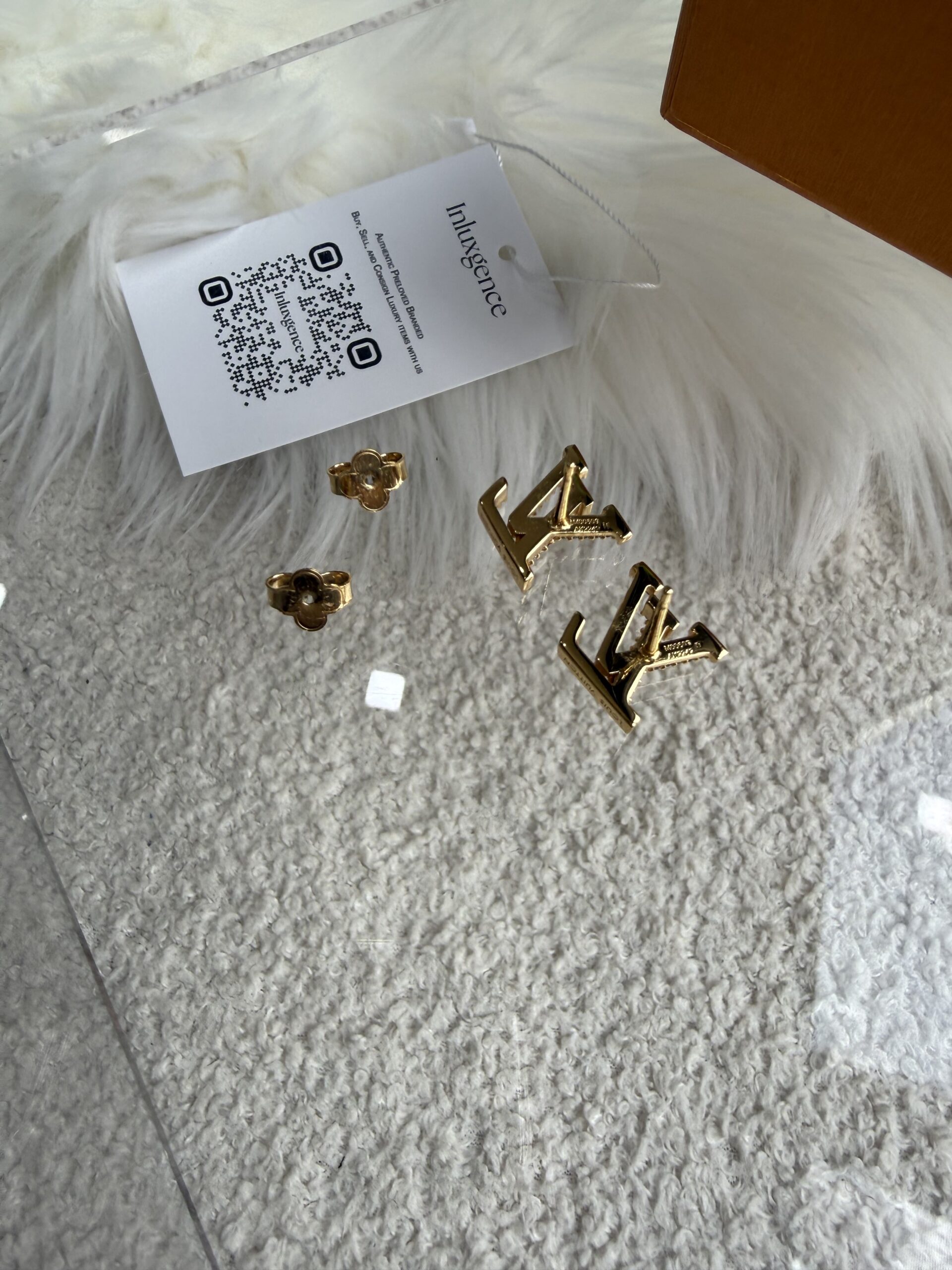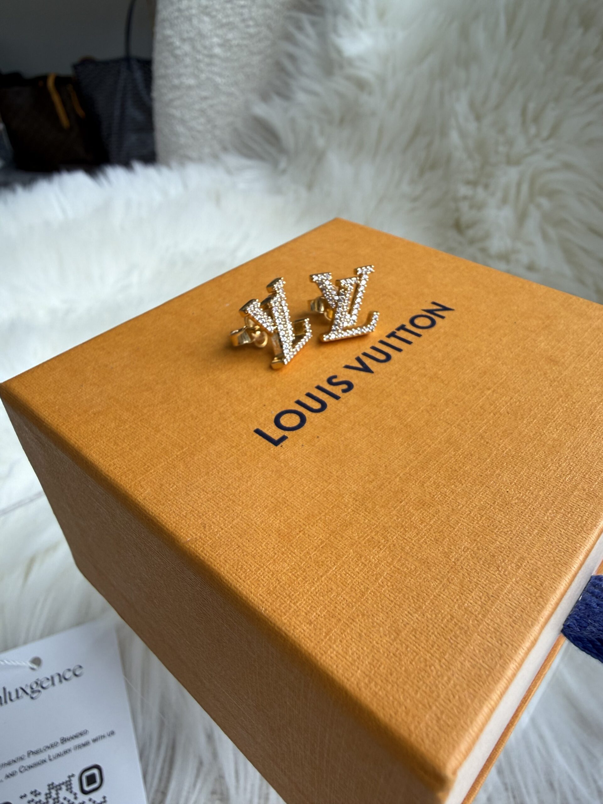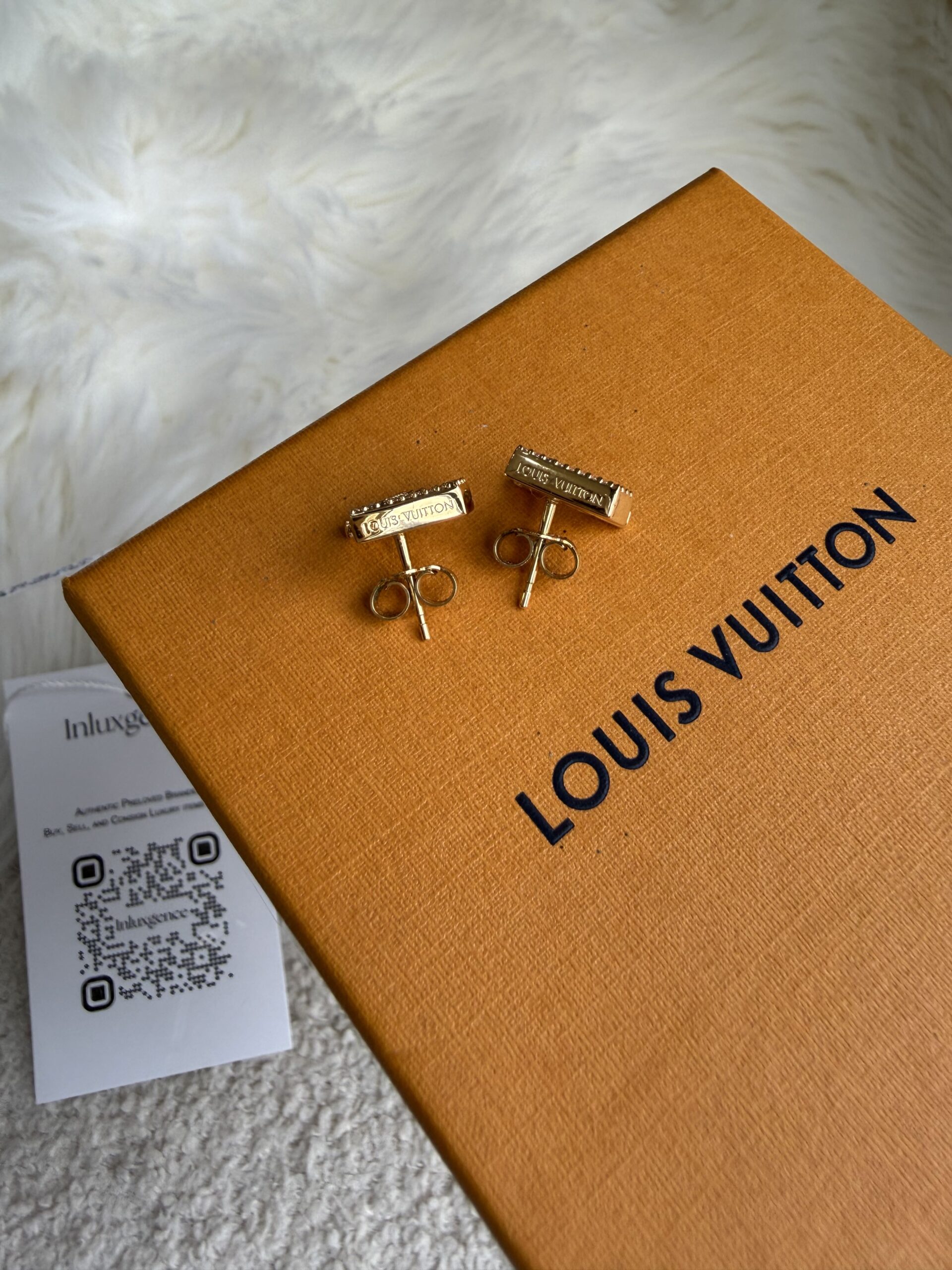 LV Iconic Logo Embellished Stud Earrings GHW (1 stone missing) | ILG5264