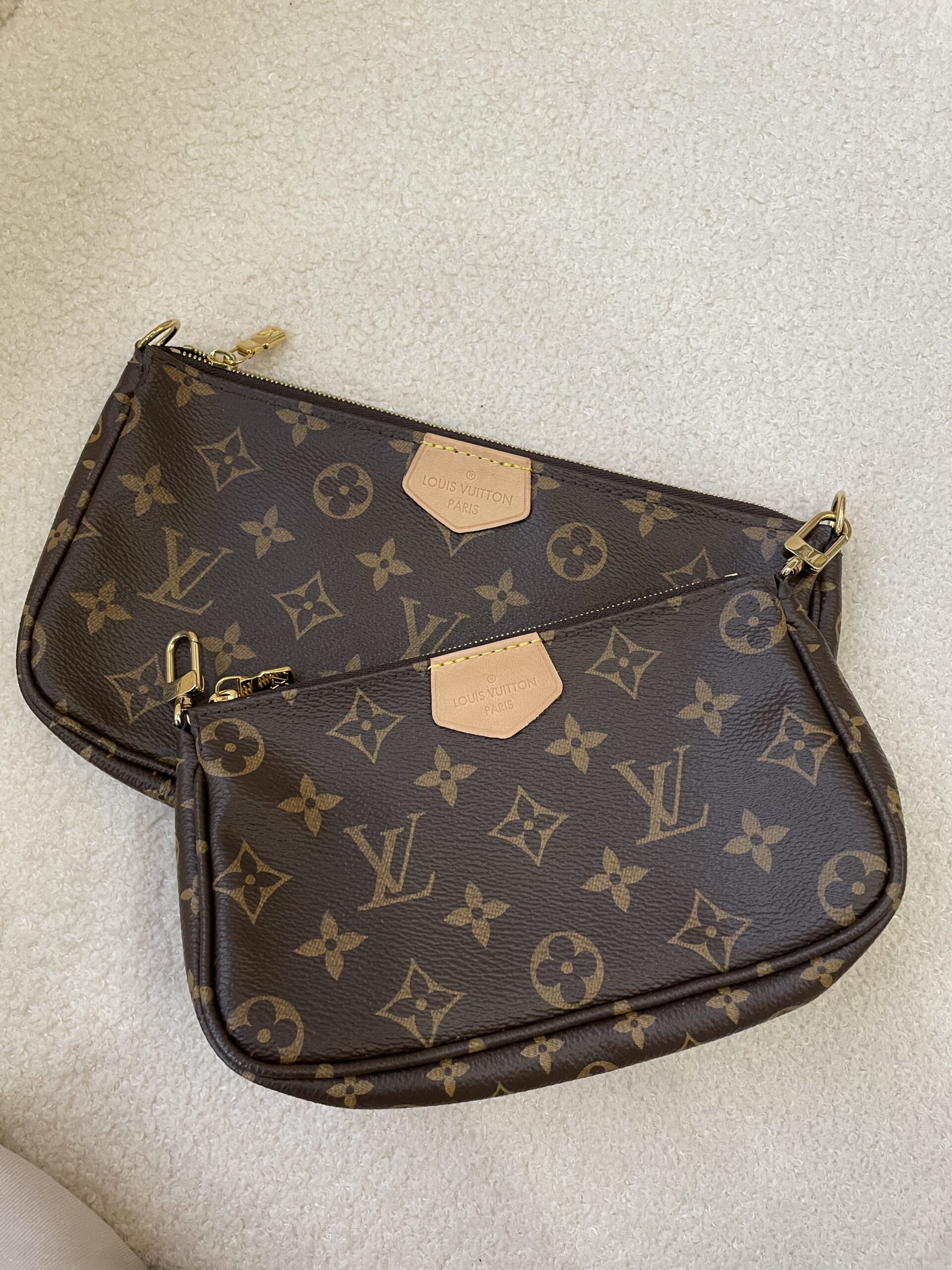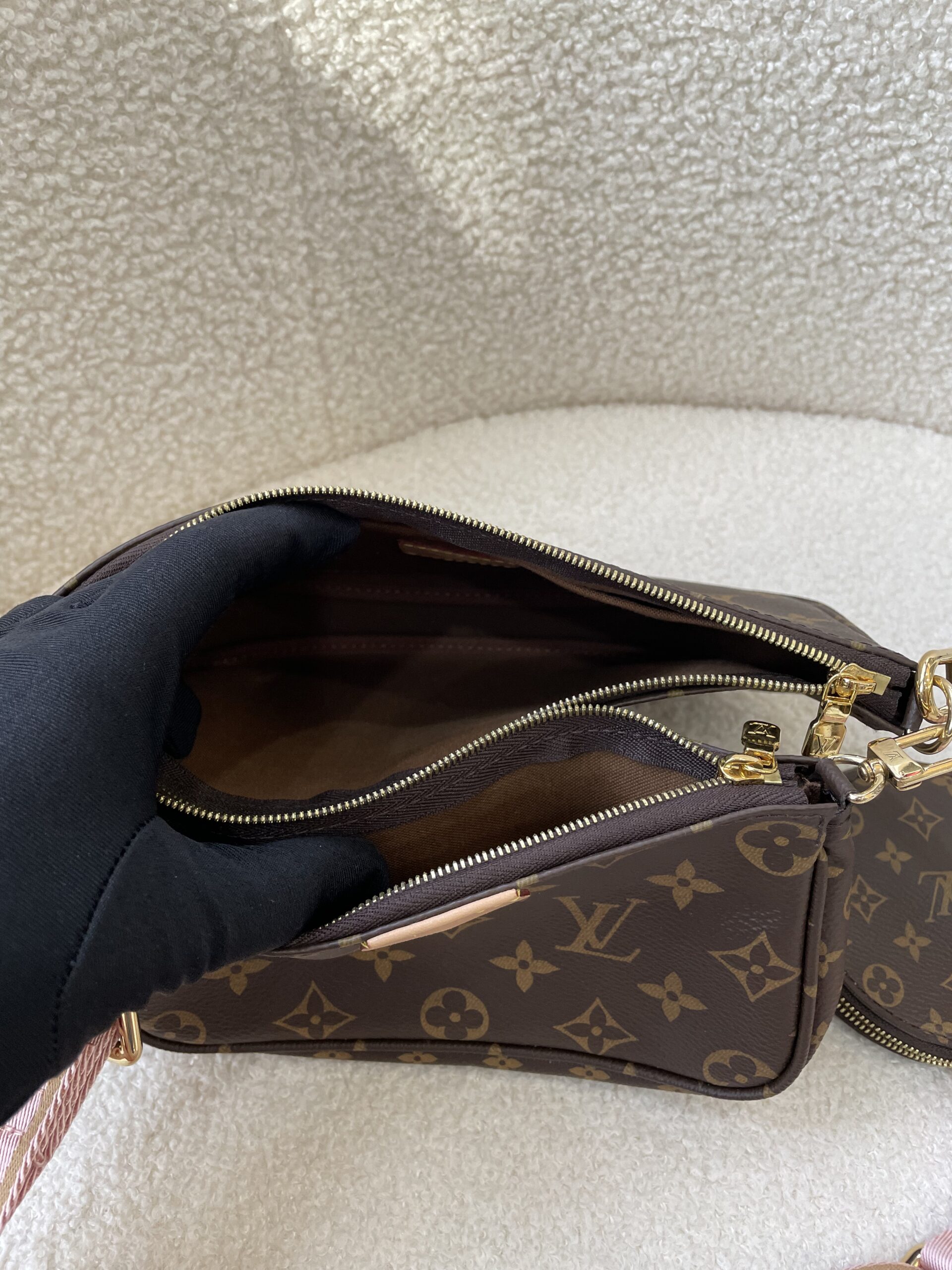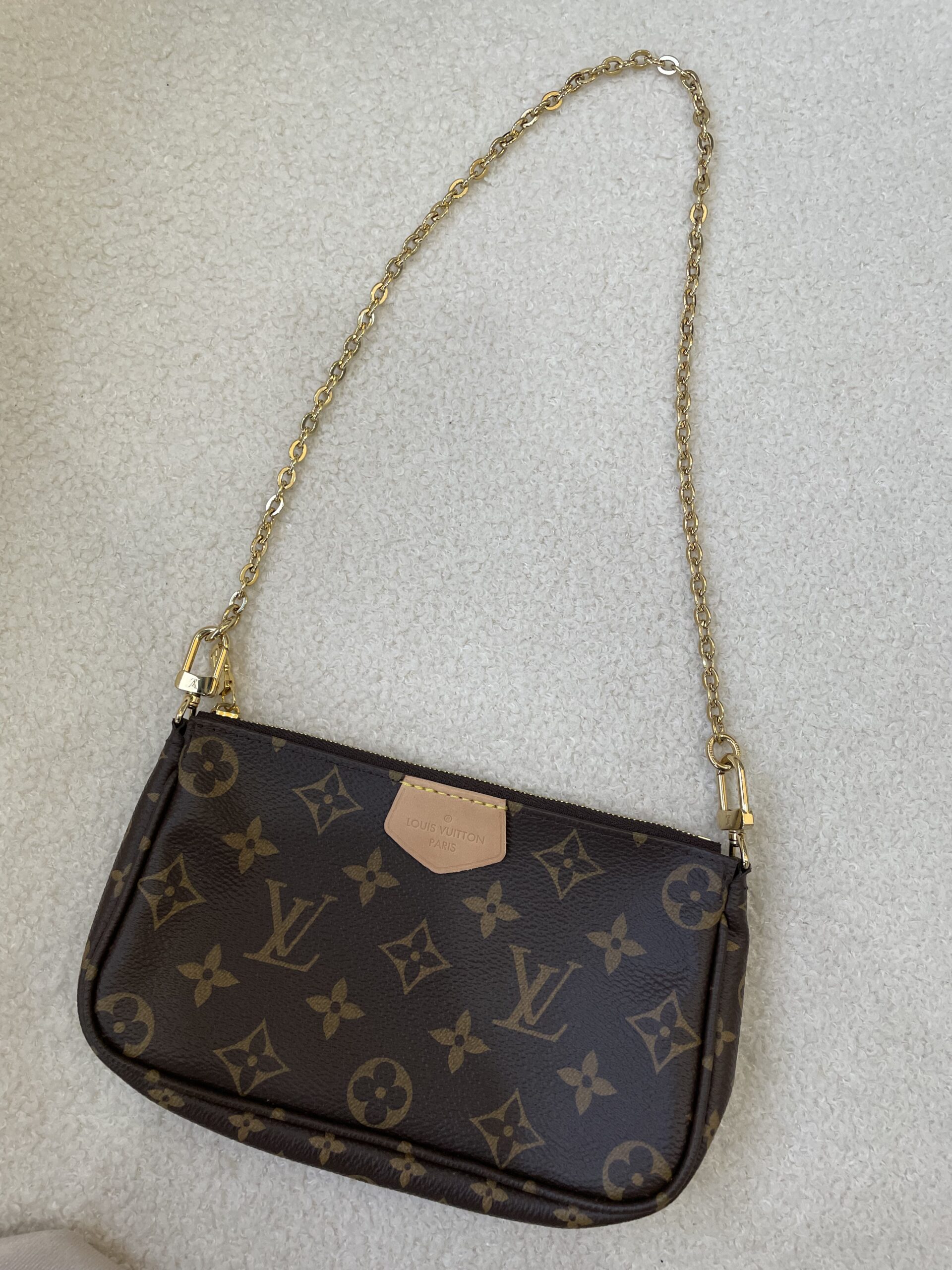 Buy one get 3 pochettes + 1 pink strap + 1 gold chain. Beauty of the chic and iconic multipochettes accessories ☺️ Here comes the excellent condition piece that’s used once! 😍